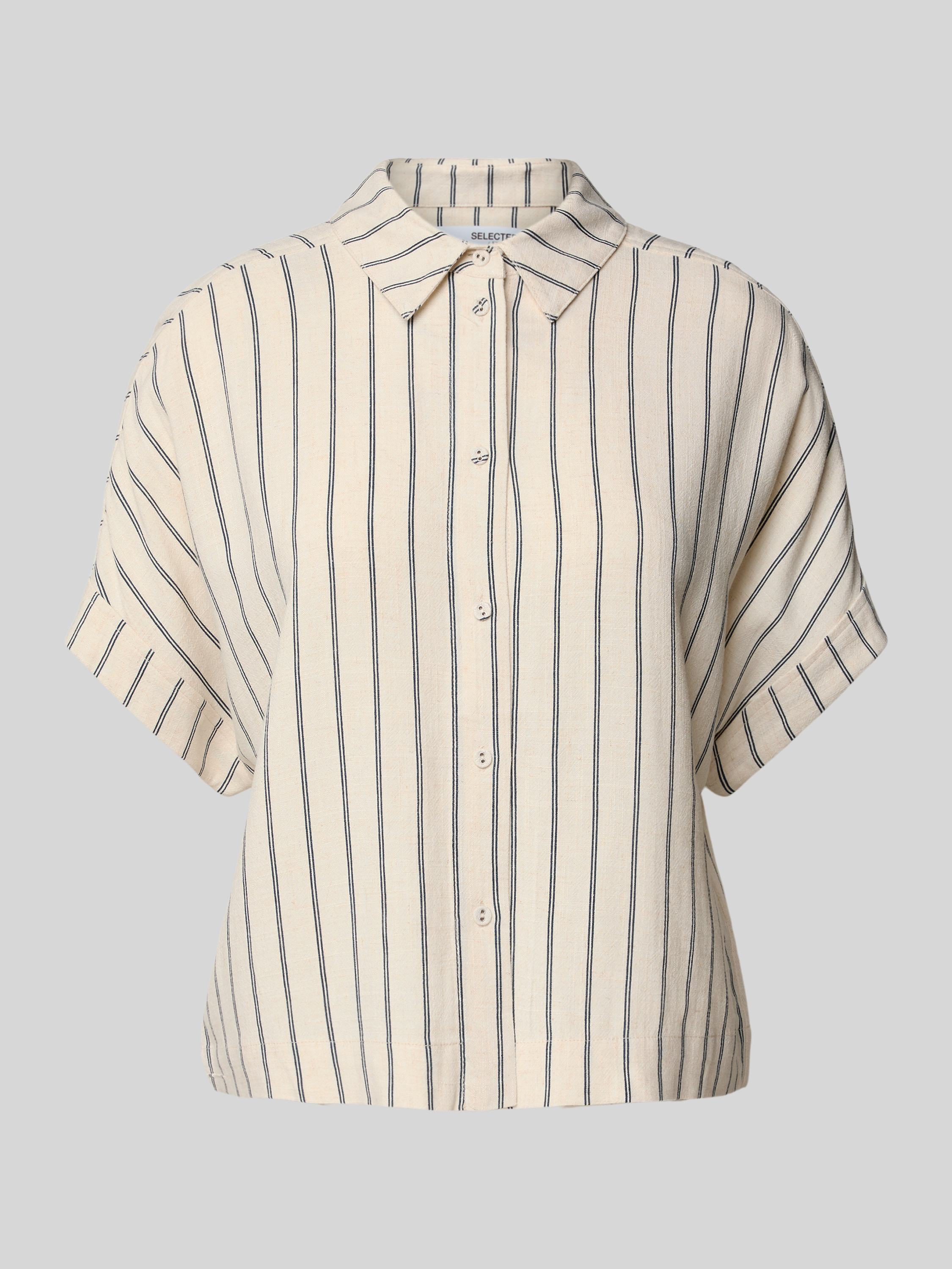 Selected FemmeCropped Bluse aus Viskose-Leinen-Mix Modell 'VIVA' in beige