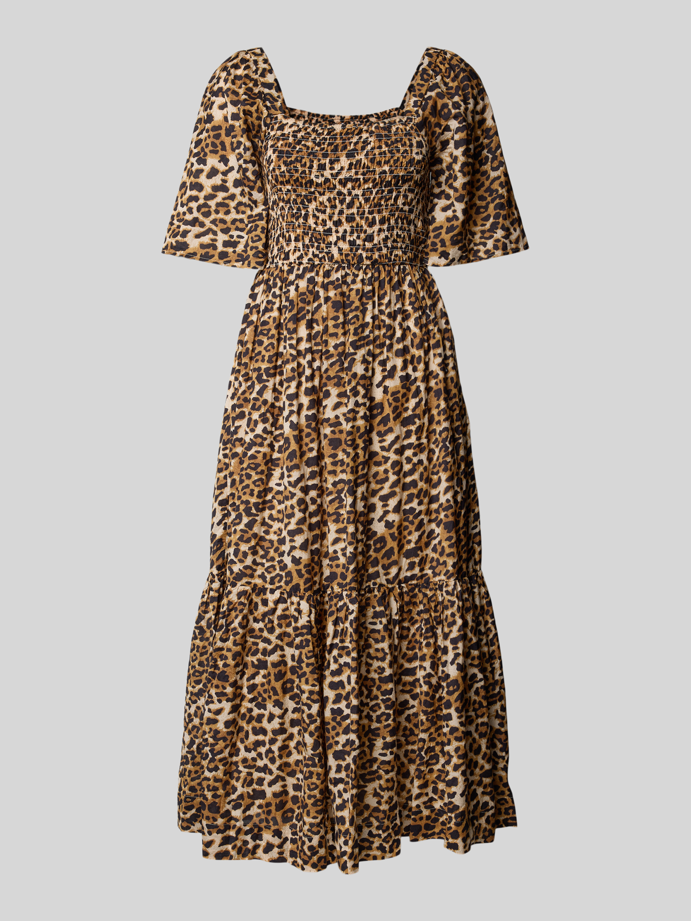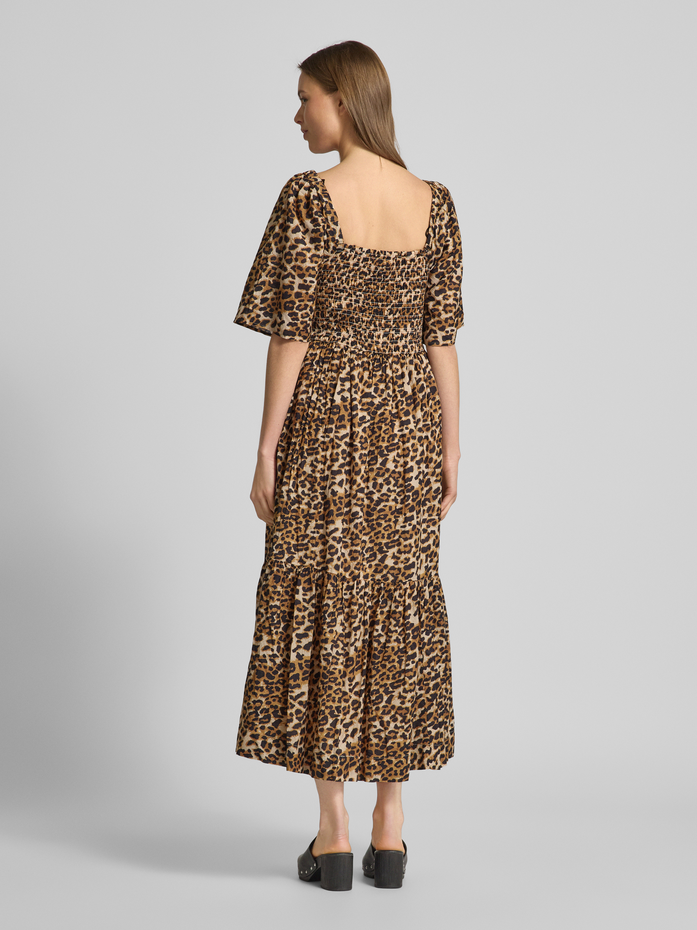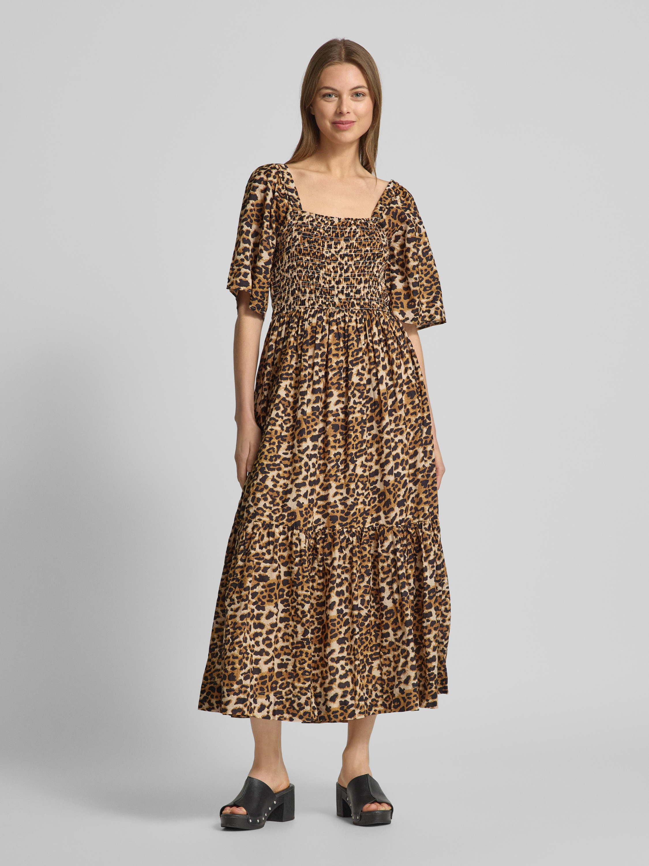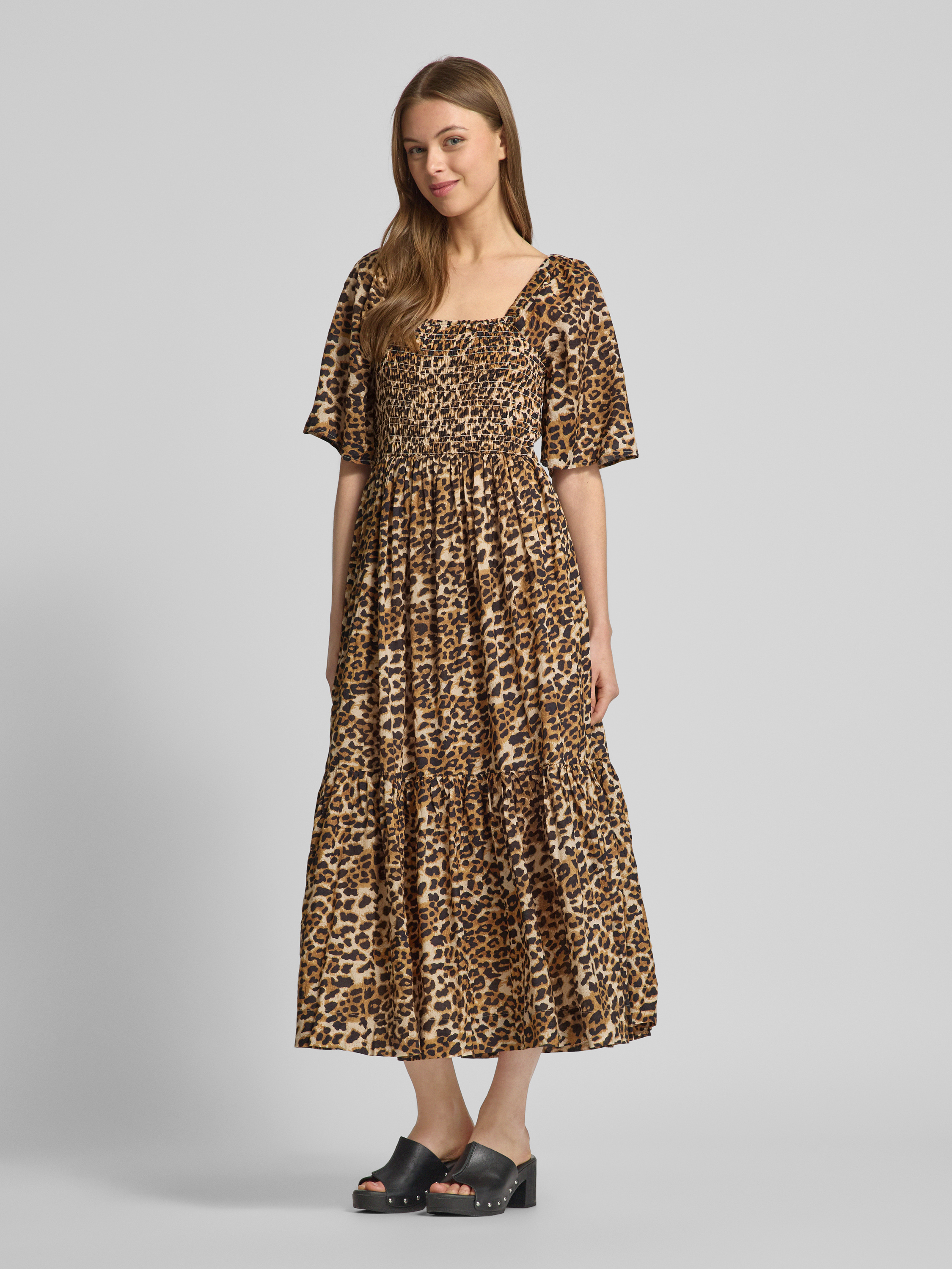 Das Damen Midikleid von SELECTED FEMME, Modell 'DORA', fällt durch seinen leicht ausgestellten Schnitt angenehm locker. Der Baumwoll-Viskose-Mix fühlt sich weich auf der Haut an, während Smok-Details und Karree-Ausschnitt dem Design eine moderne Note verleihen. Der Stufen-Look ergänzt den entspannten Charakter.