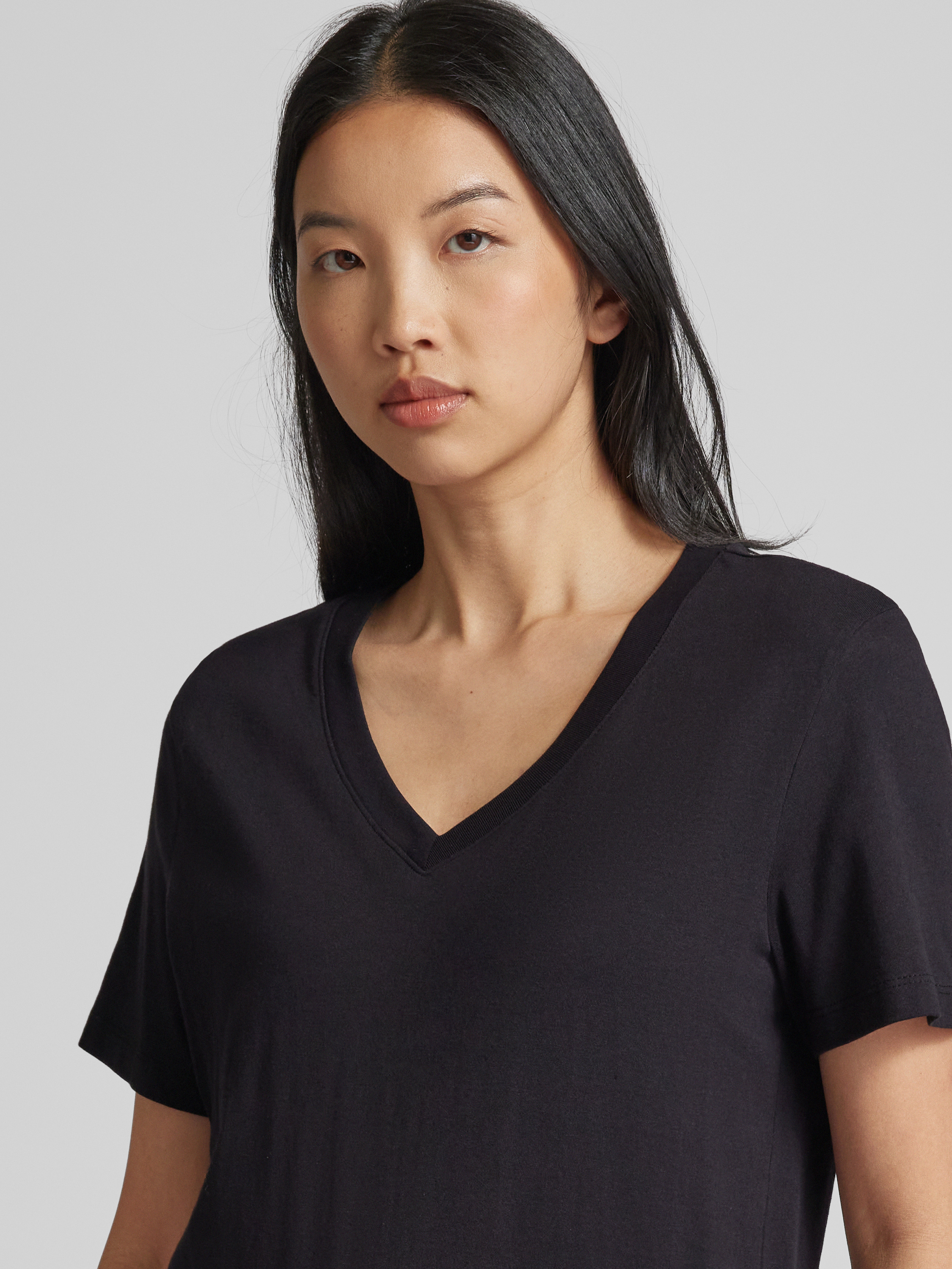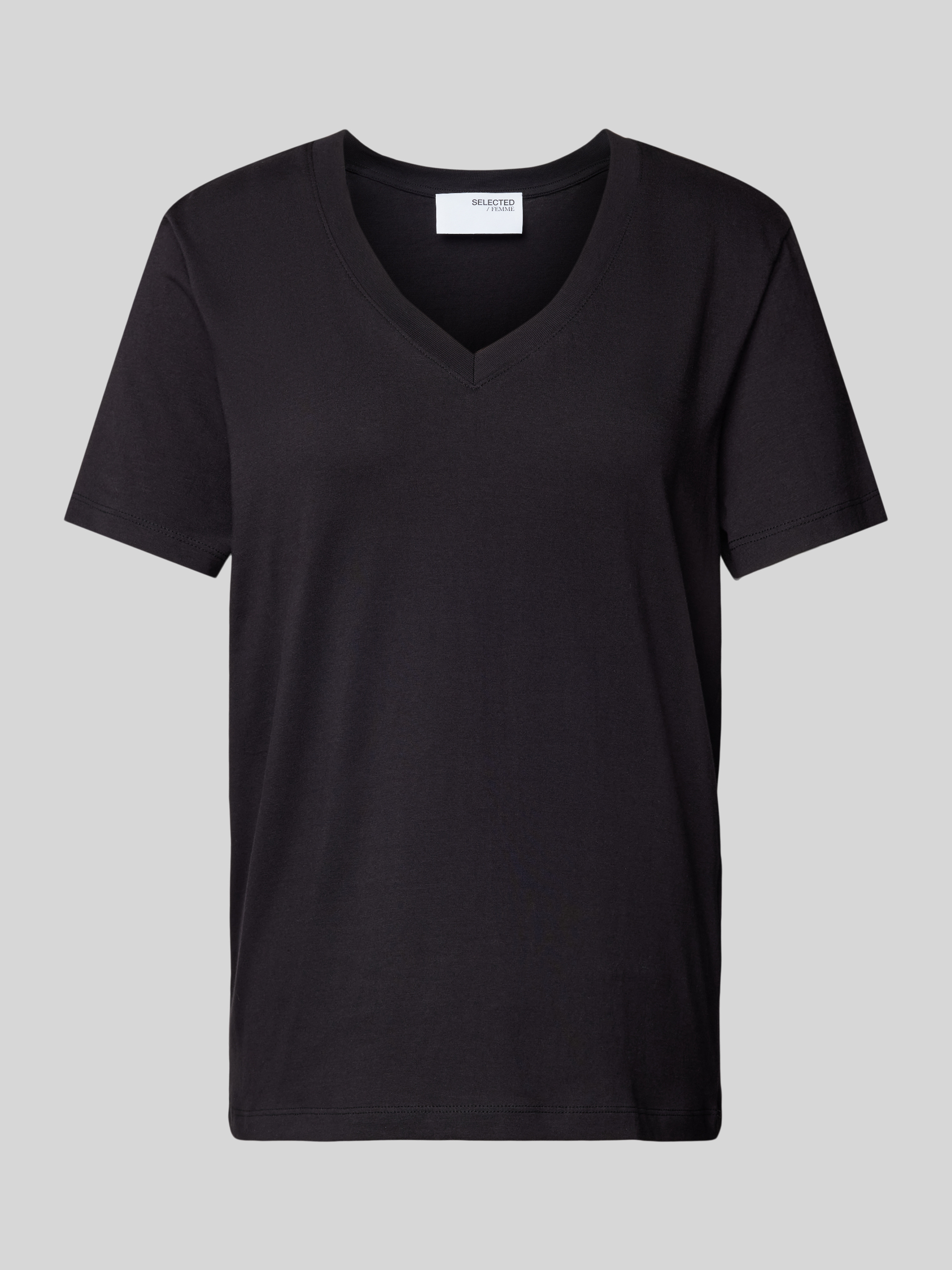 Selected FemmeT-Shirt mit V-Ausschnitt Modell 'ESSENTIAL' in black