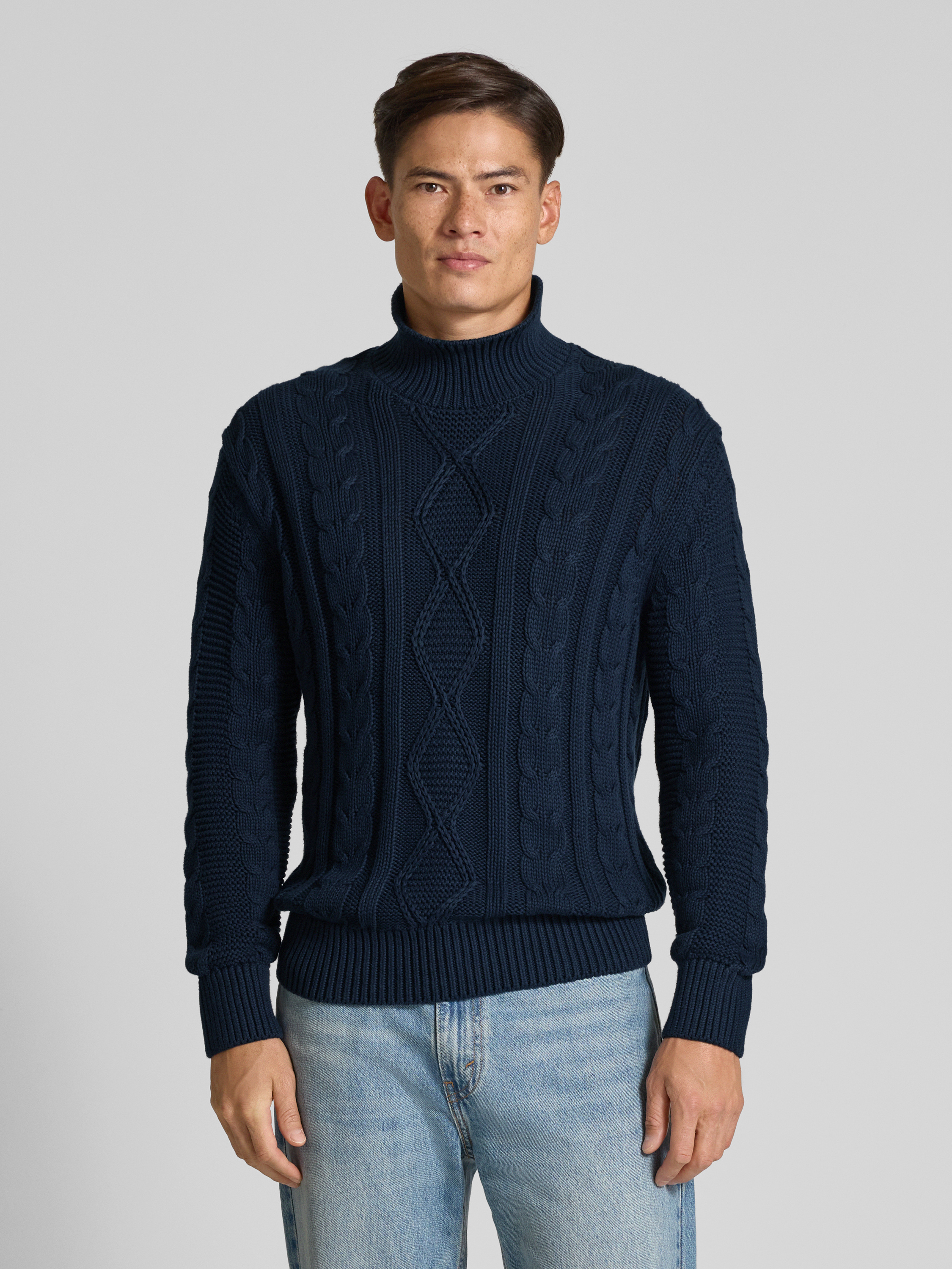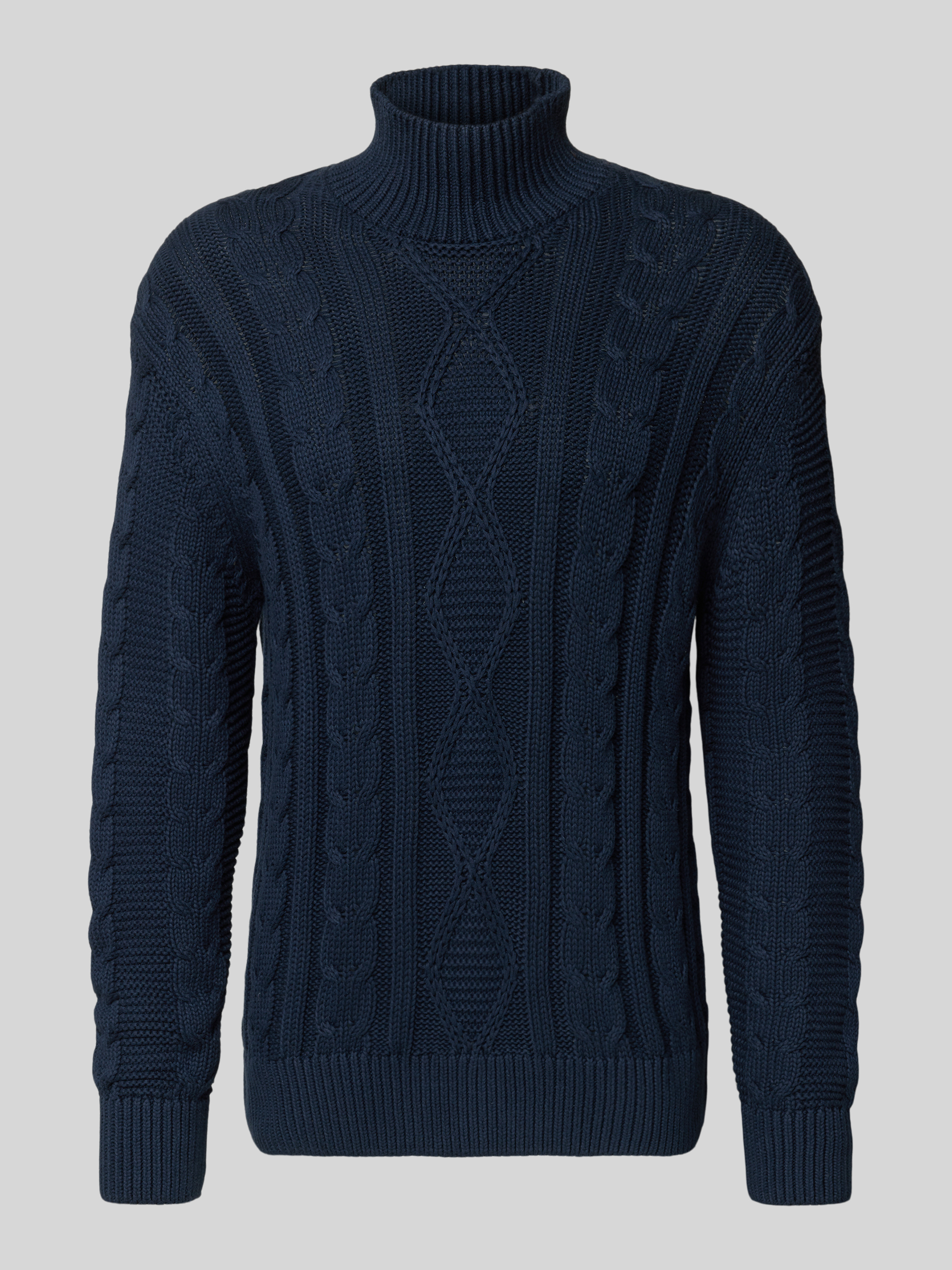 Der Herren-Rollkragenpullover von SELECTED HOMME, Modell Uffe, präsentiert sich in einem klassischen Regular Fit und zeigt ein feines Zopfmuster auf reiner Baumwolle. Die Strickstruktur wirkt angenehm auf der Haut, während der Rollkragen an kühleren Tagen wohltuende Wärme spendet. Dezente Details runden das einfarbige Design ab.