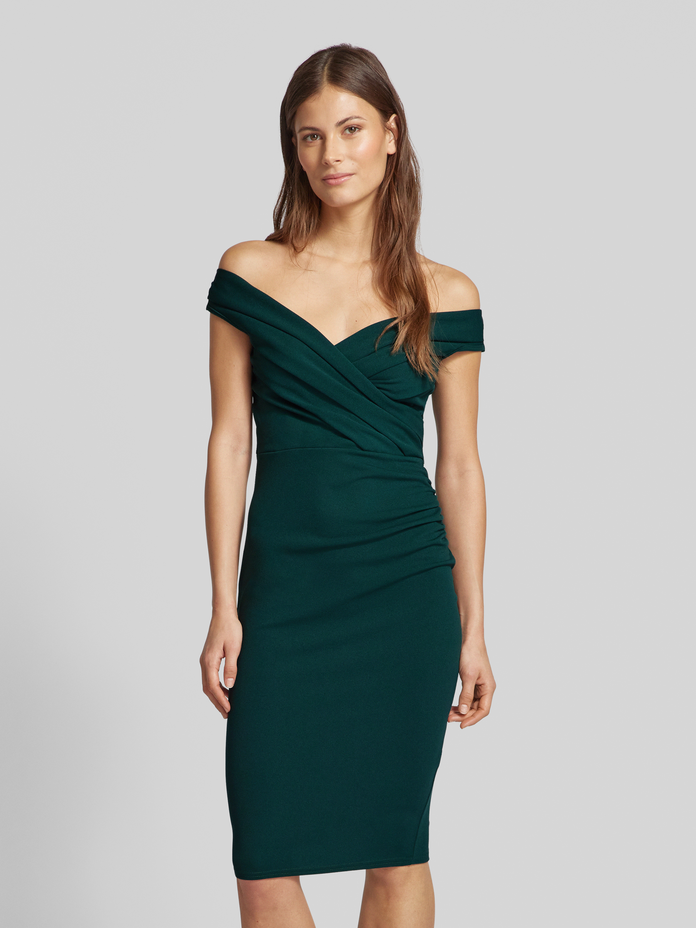 SISTAGLAMKnielanges Cocktailkleid mit Raffungen Modell 'Dania' in dunkelgruen