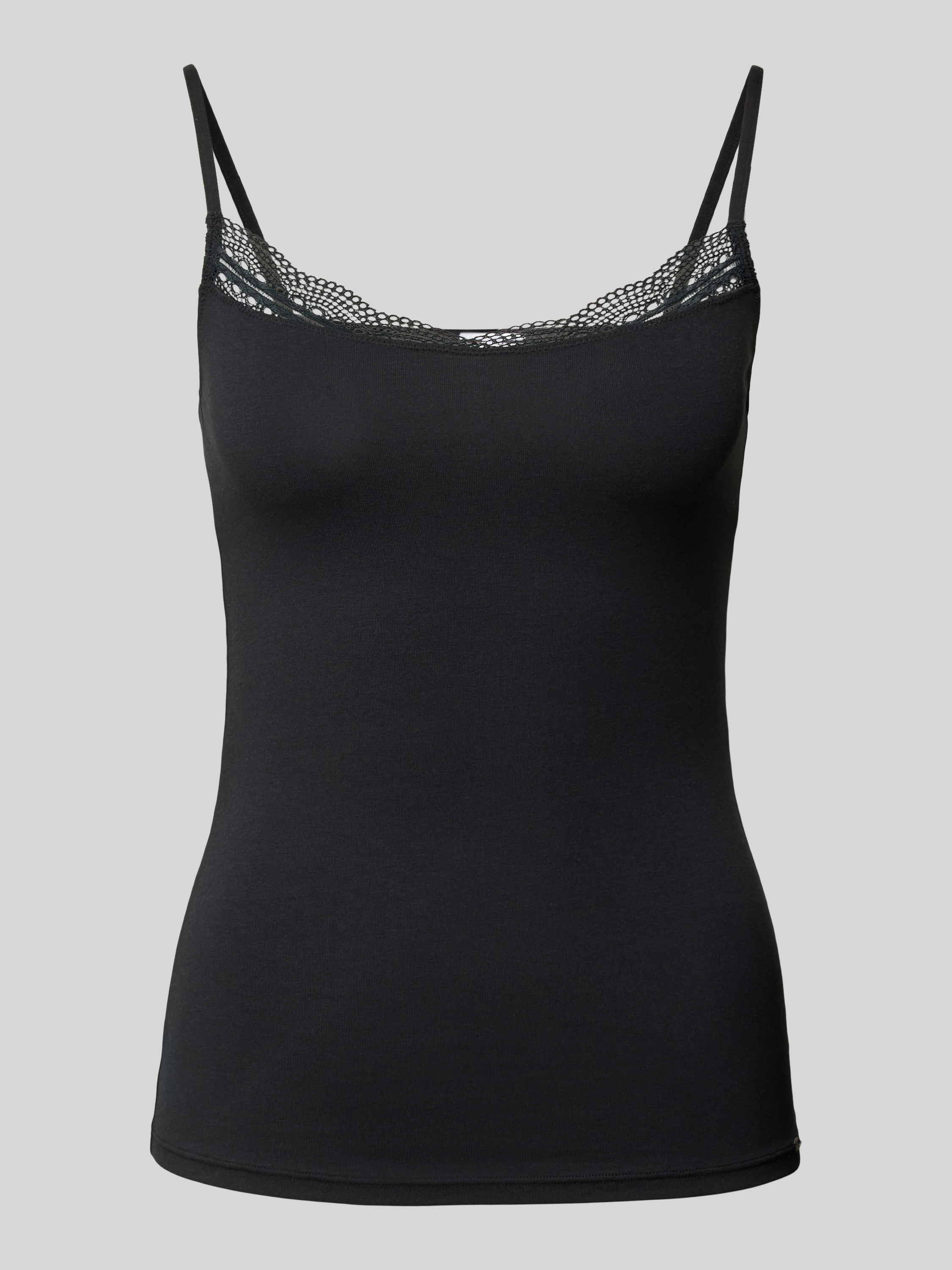 • Skiny Slim Fit Trägertop mit Spitzenbesatz Black