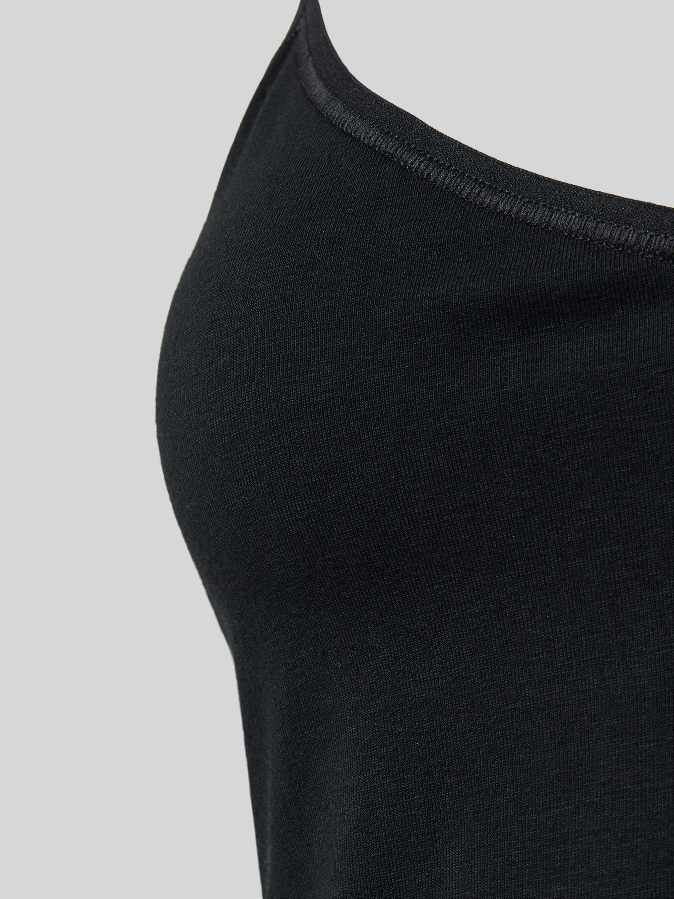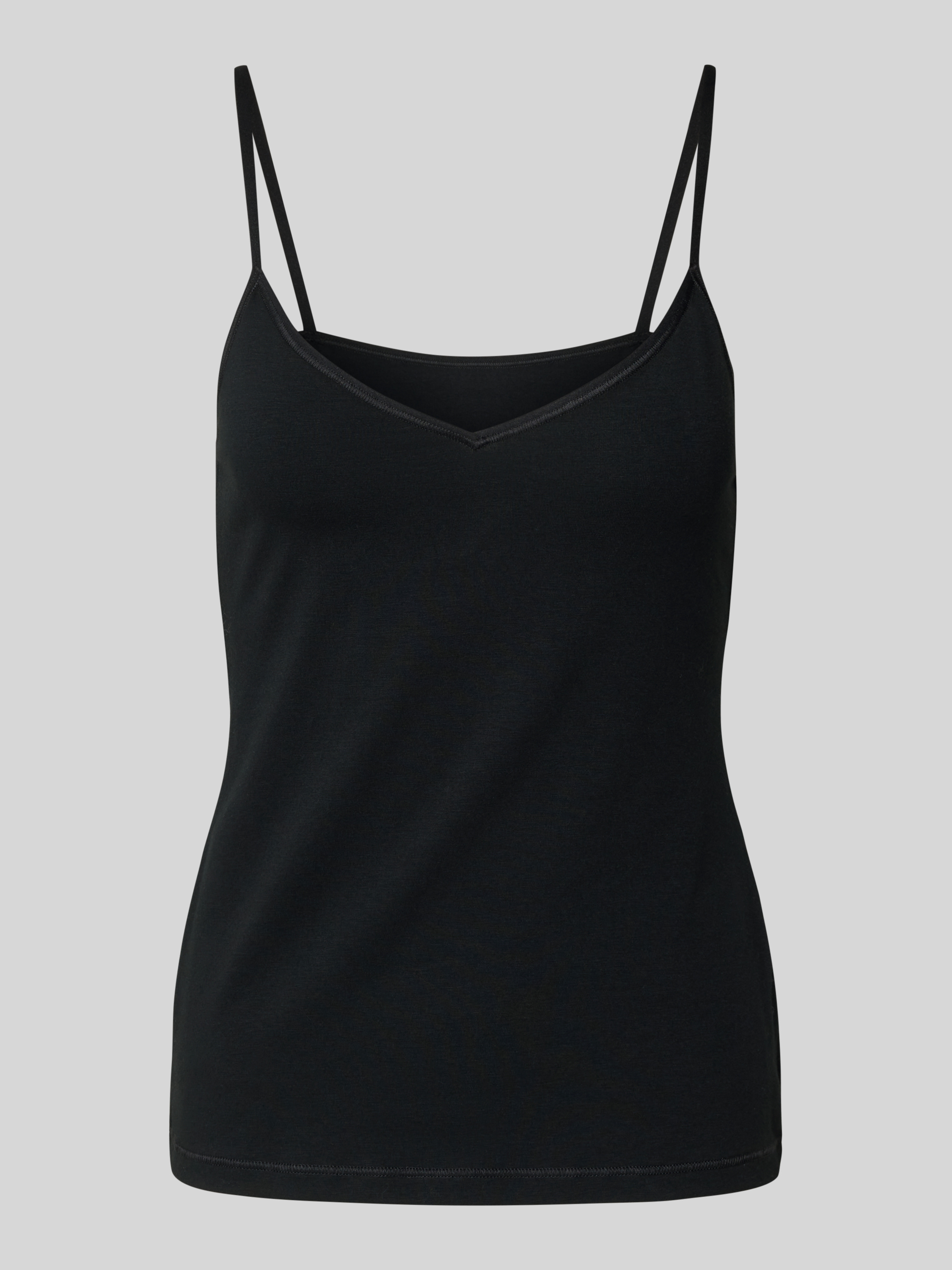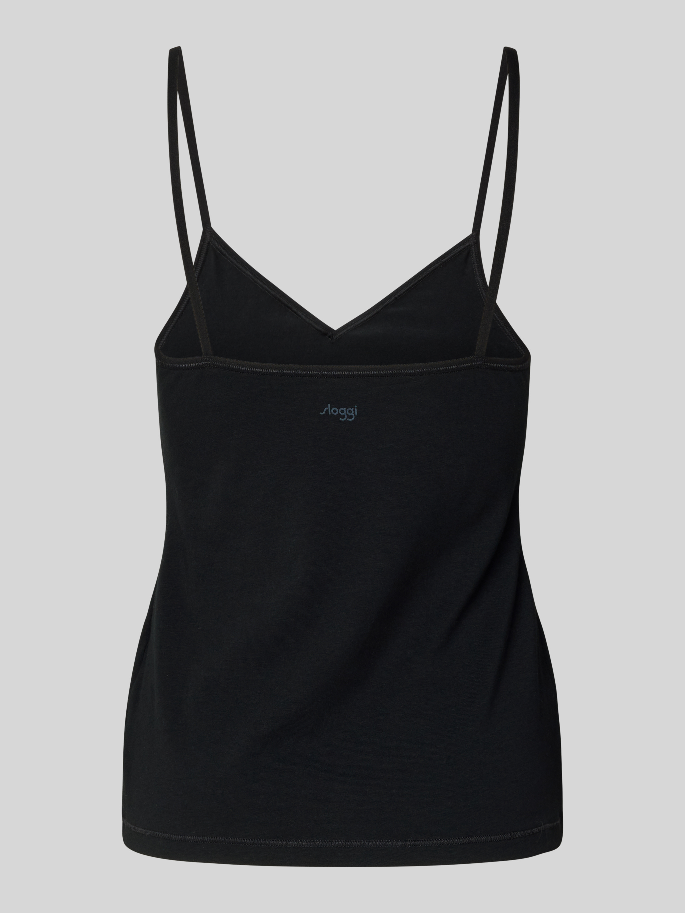 Das Damen Top von Sloggi schmiegt sich dank seines eng anliegenden Schnitts angenehm an die Silhouette an. Durch den Baumwoll-Elasthan-Mix fühlt es sich besonders weich auf der Haut an, während der abgerundete V-Ausschnitt und die schmalen Spaghettiträger für eine dezente Optik sorgen. So eignet sich das Top mit abgerundetem V-Ausschnitt vielseitig für unterschiedliche Anlässe.