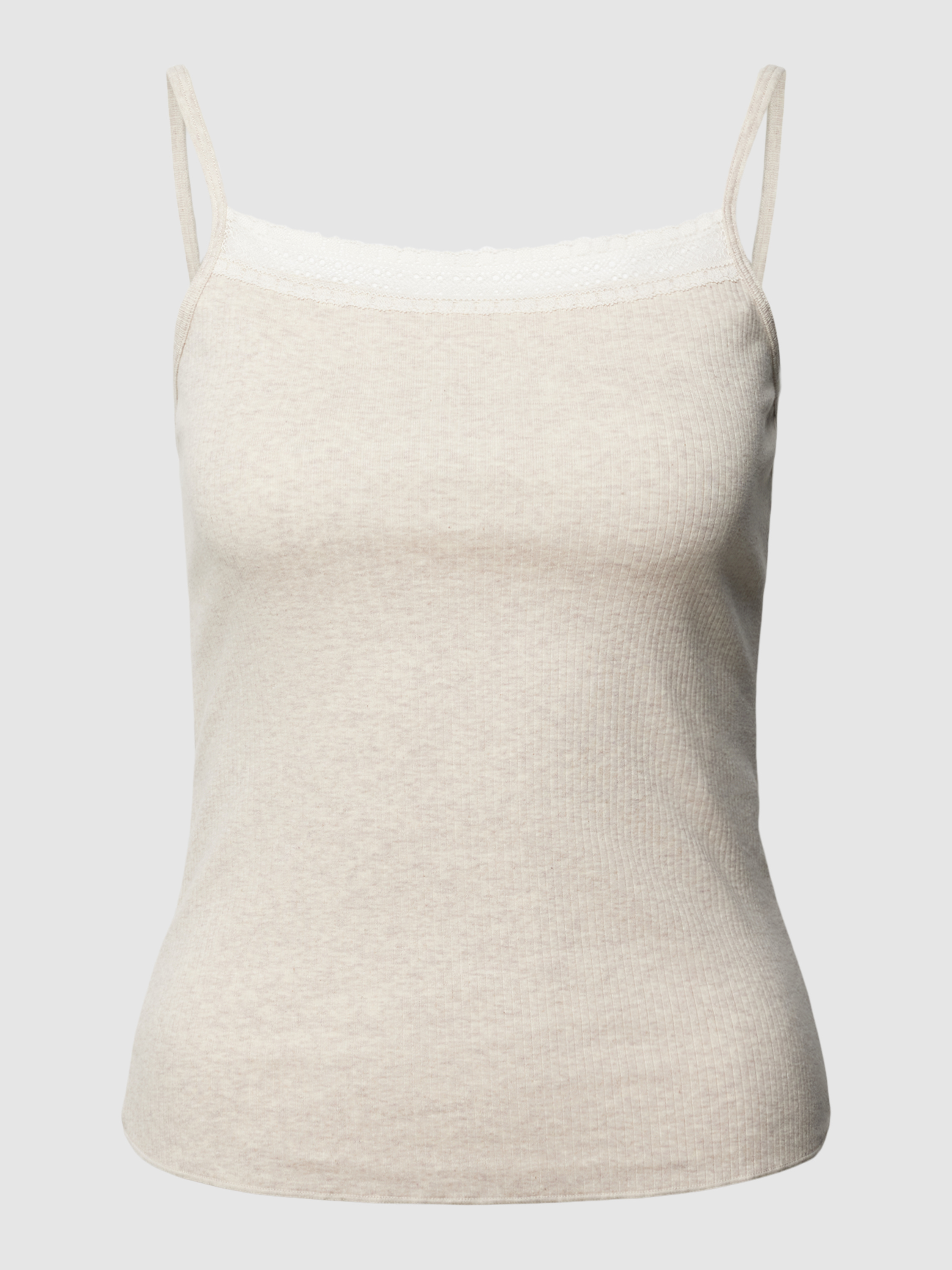 Trägertop mit Spitzenbesatz in hellgrau melange