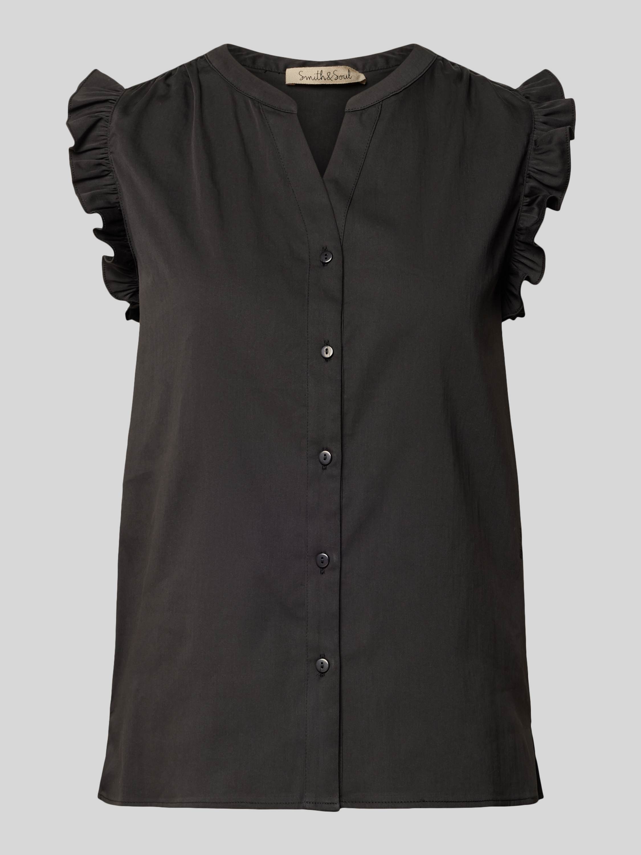Das Blusentop von Smith and Soul vereint einen luftigen Baumwoll-Mix mit einem geraden Schnitt, der Bewegungsfreiheit und Komfort bietet. Der V-Ausschnitt und die zarten Volants fügen eine feminine Note hinzu, während die durchgehende Knopfleiste vielseitige Stylingmöglichkeiten ermöglicht. Ideal für vielseitige Alltagslooks.