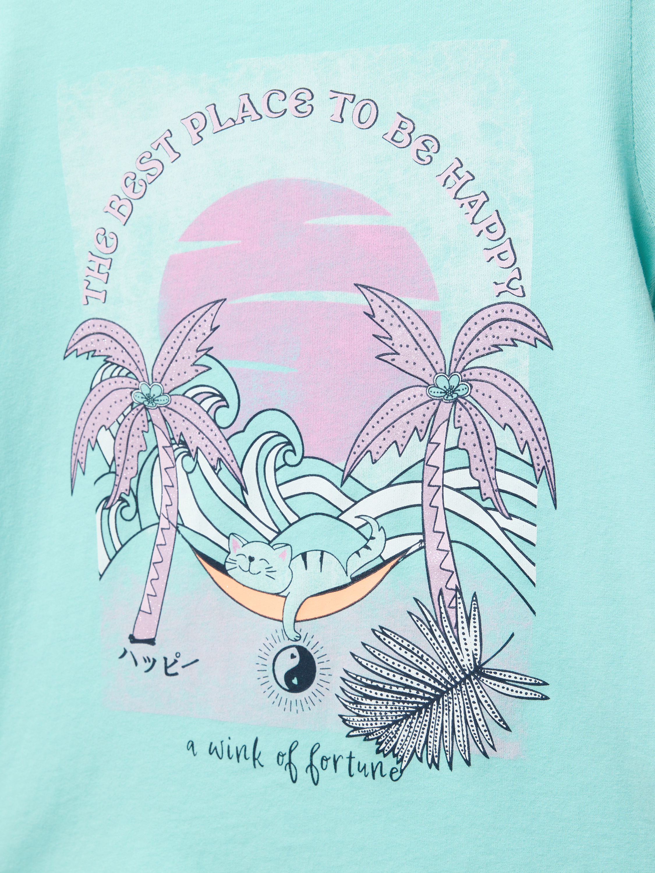 s.Oliver RED LABELAusgestelltes T-Shirt mit Glitzerprint in aqua