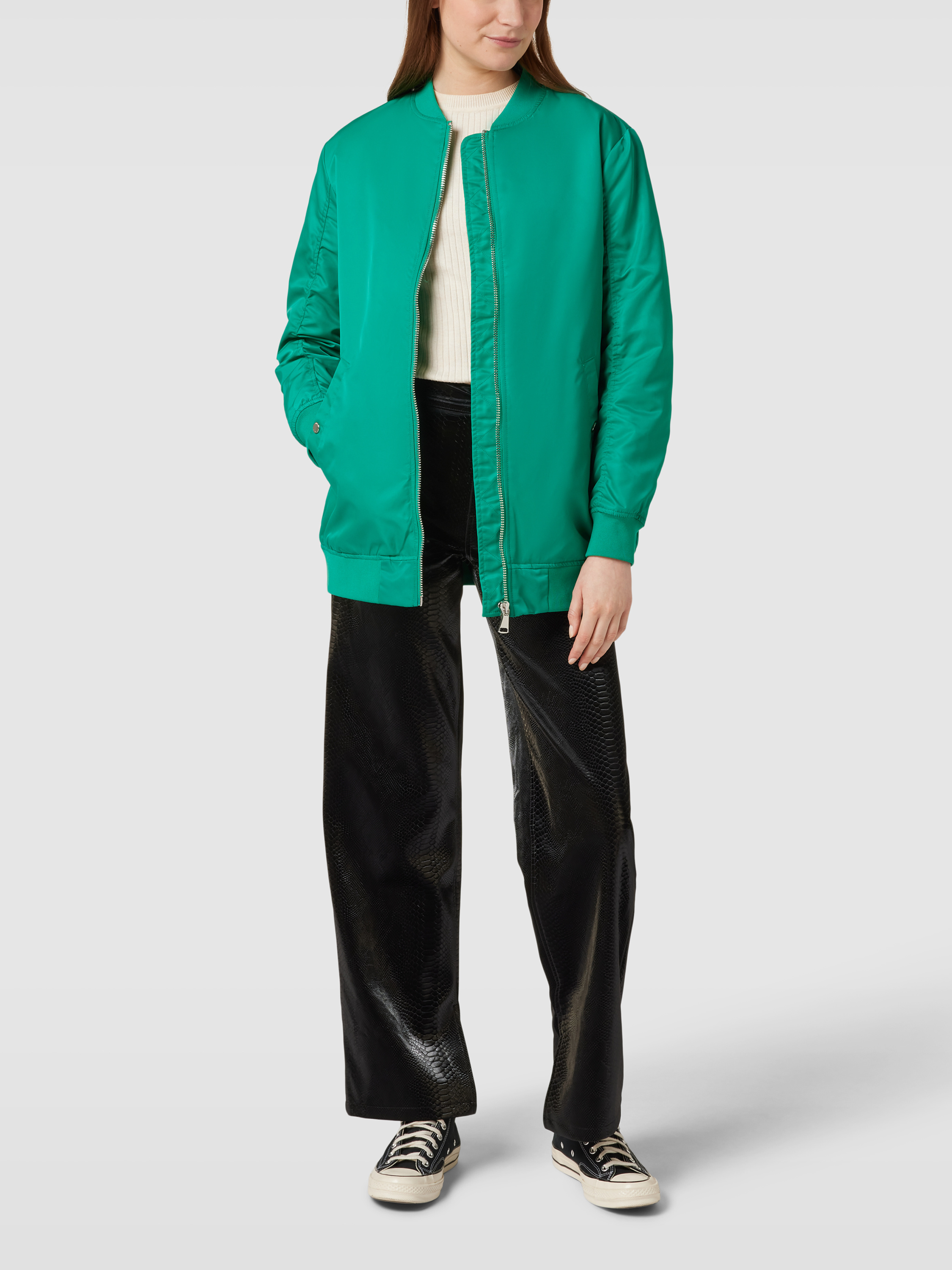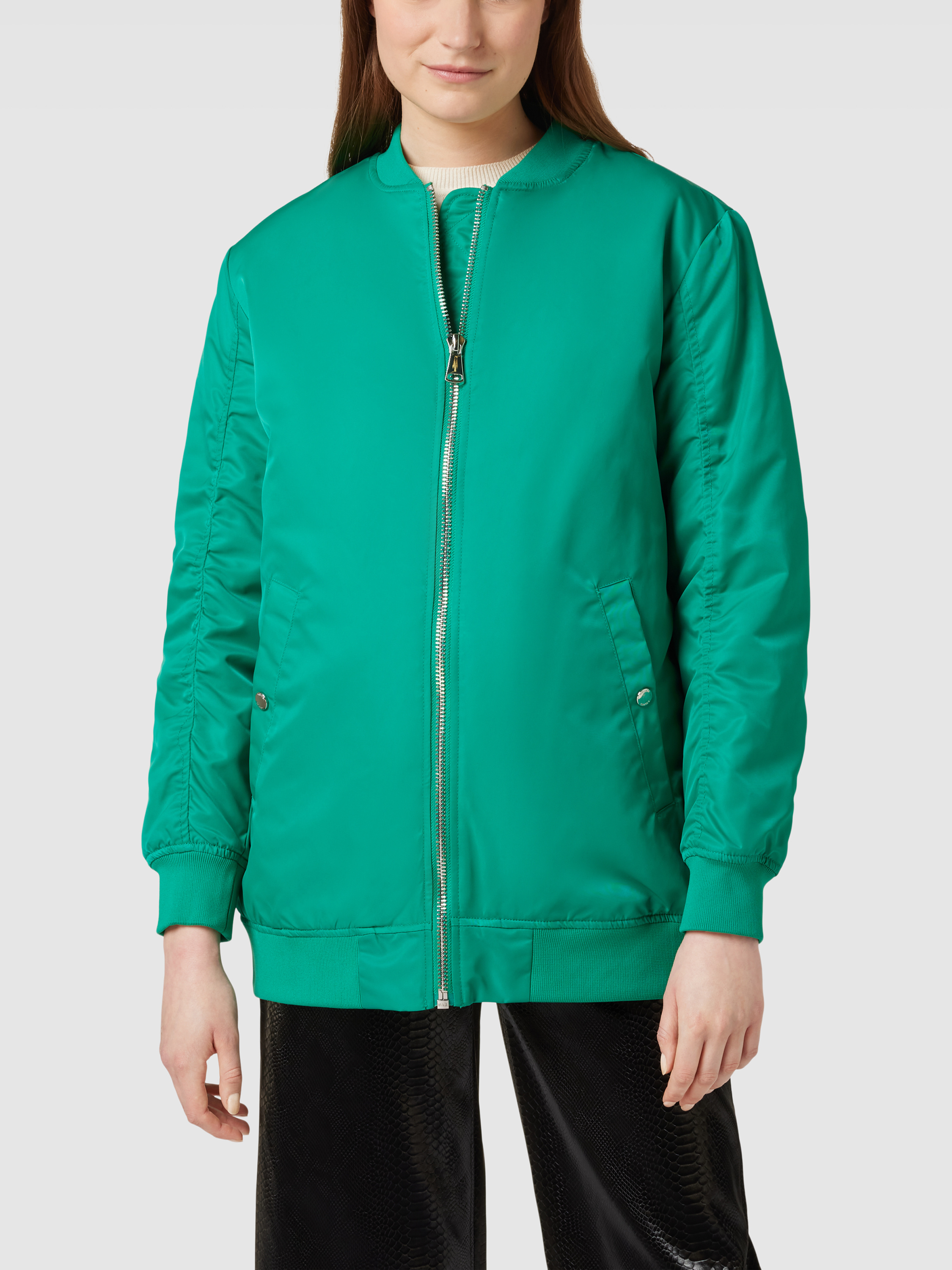 Die Damen Bomberjacke von s.Oliver RED LABEL zeichnet sich durch ihr strapazierfähiges Material aus, das ideal für den Alltag geeignet ist. Der gerade Schnitt sorgt für eine bequeme Passform, während das unifarbene Design vielseitig kombinierbar bleibt. Praktische Eingrifftaschen bieten zusätzlichen Komfort.