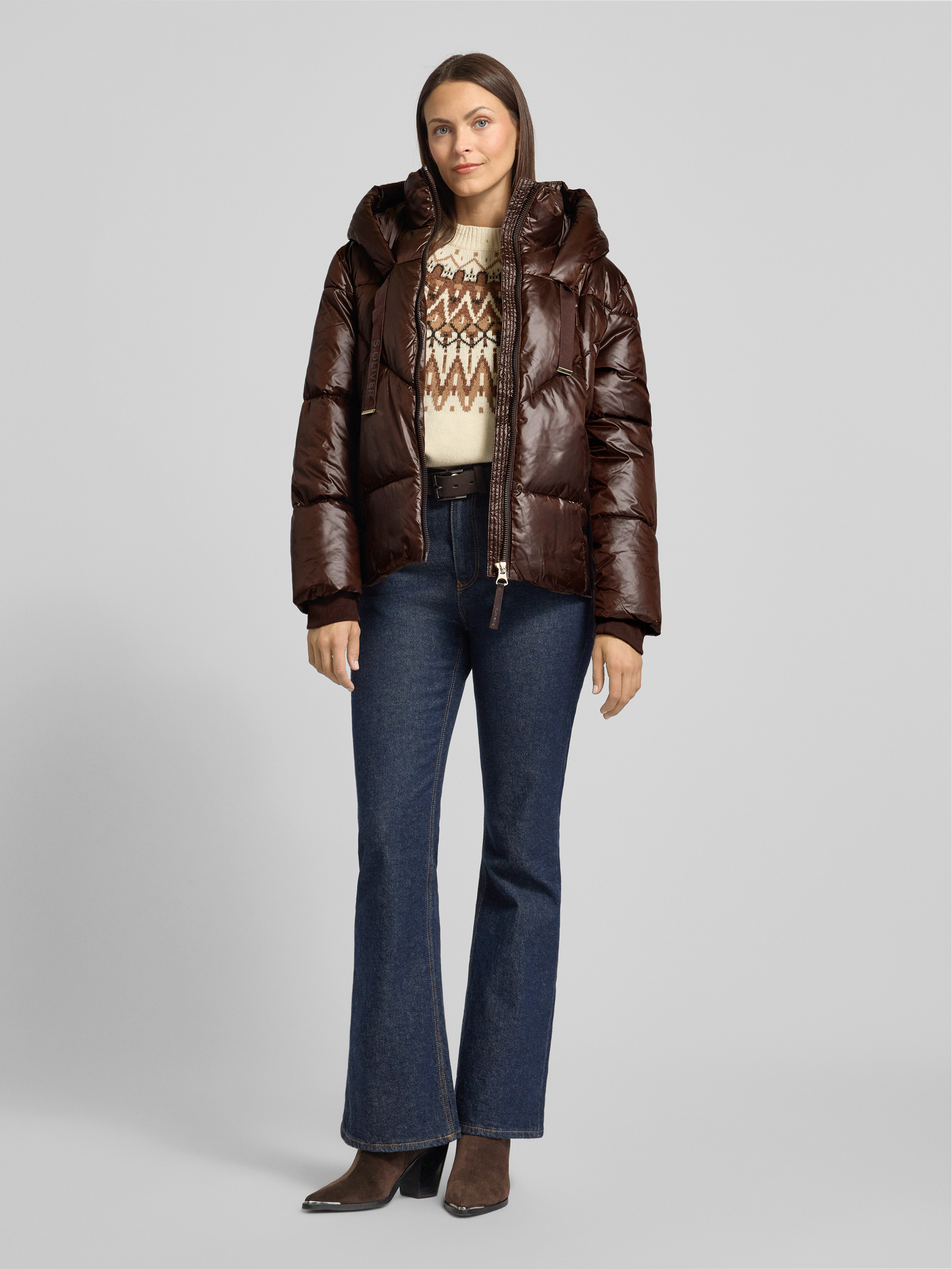 s.Oliver RED LABELBoxy Fit Steppjacke mit Kapuze in dunkelbraun