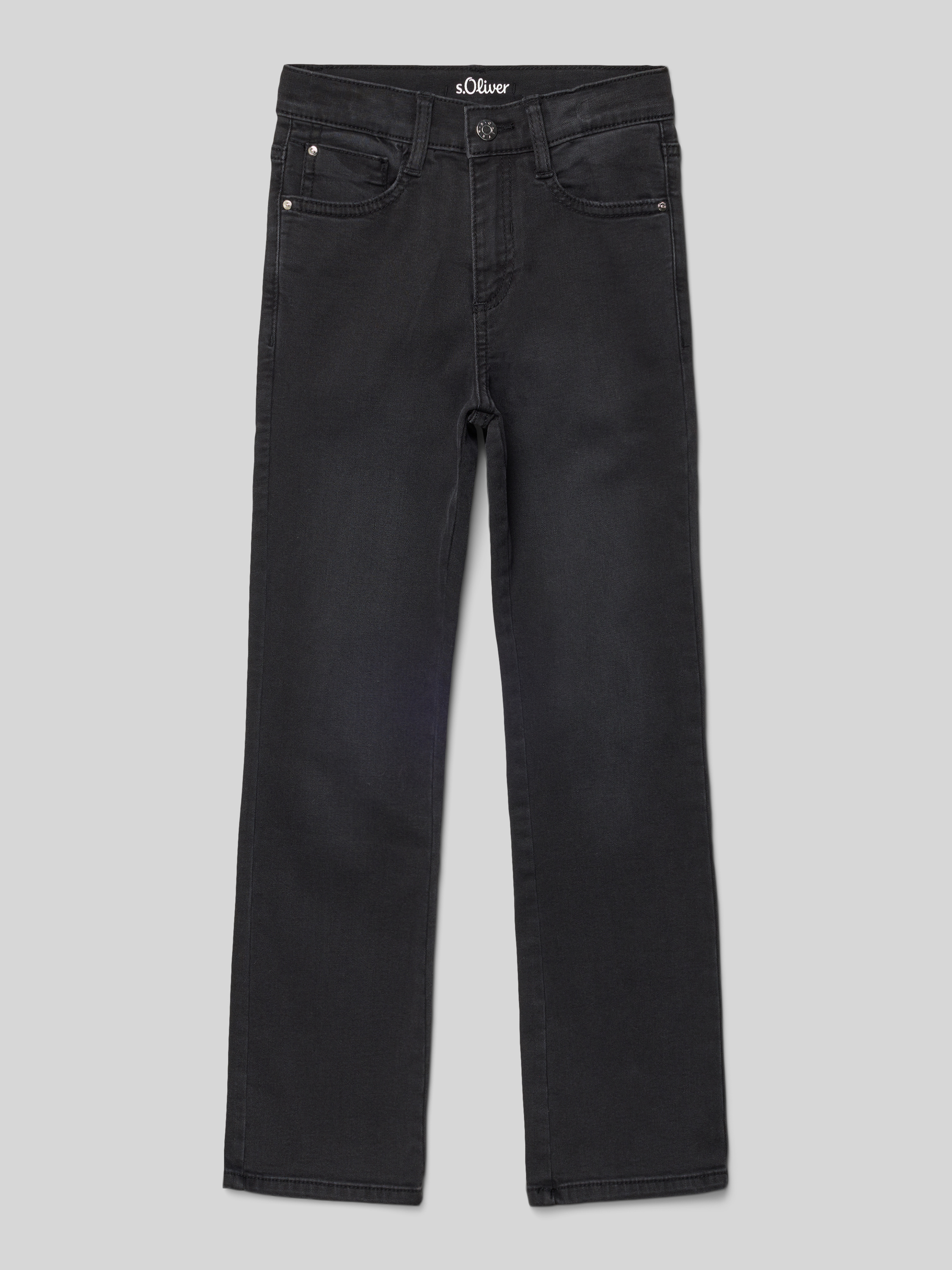 Die Kinder Jeans von s.Oliver RED LABEL, Modell 'Beverly', zeigt sich in Melange-Optik und sorgt mit ihrer Flared-Passform sowie dem High-Waist-Schnitt für angenehmen Sitz. Dank Baumwoll-Mix fühlt sich das Material angenehm an und ist pflegeleicht. Durch das klassische 5-Pocket-Design und die Nieten-Applikation entsteht ein vielseitiger Look, der sich unkompliziert im Alltag tragen lässt.