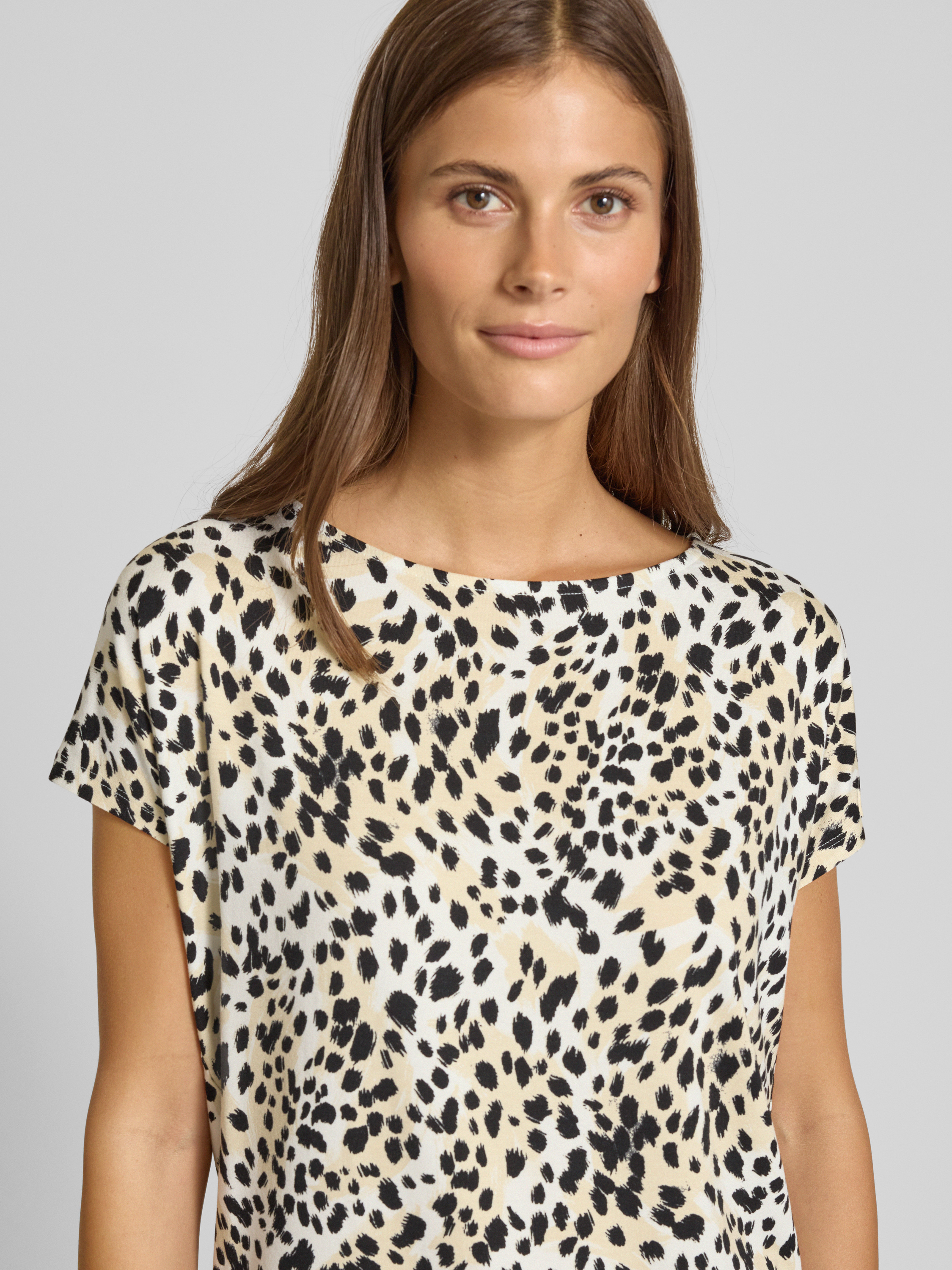 Das Damen Loose Fit T-Shirt von s.Oliver RED LABEL kombiniert einen entspannten Schnitt mit einem auffälligen Animal Print. Der U-Boot-Ausschnitt sorgt für eine lässige Silhouette, während der Viskose-Mix ein angenehmes Tragegefühl ermöglicht. Kurze Ärmel runden das Design alltagstauglich ab.
