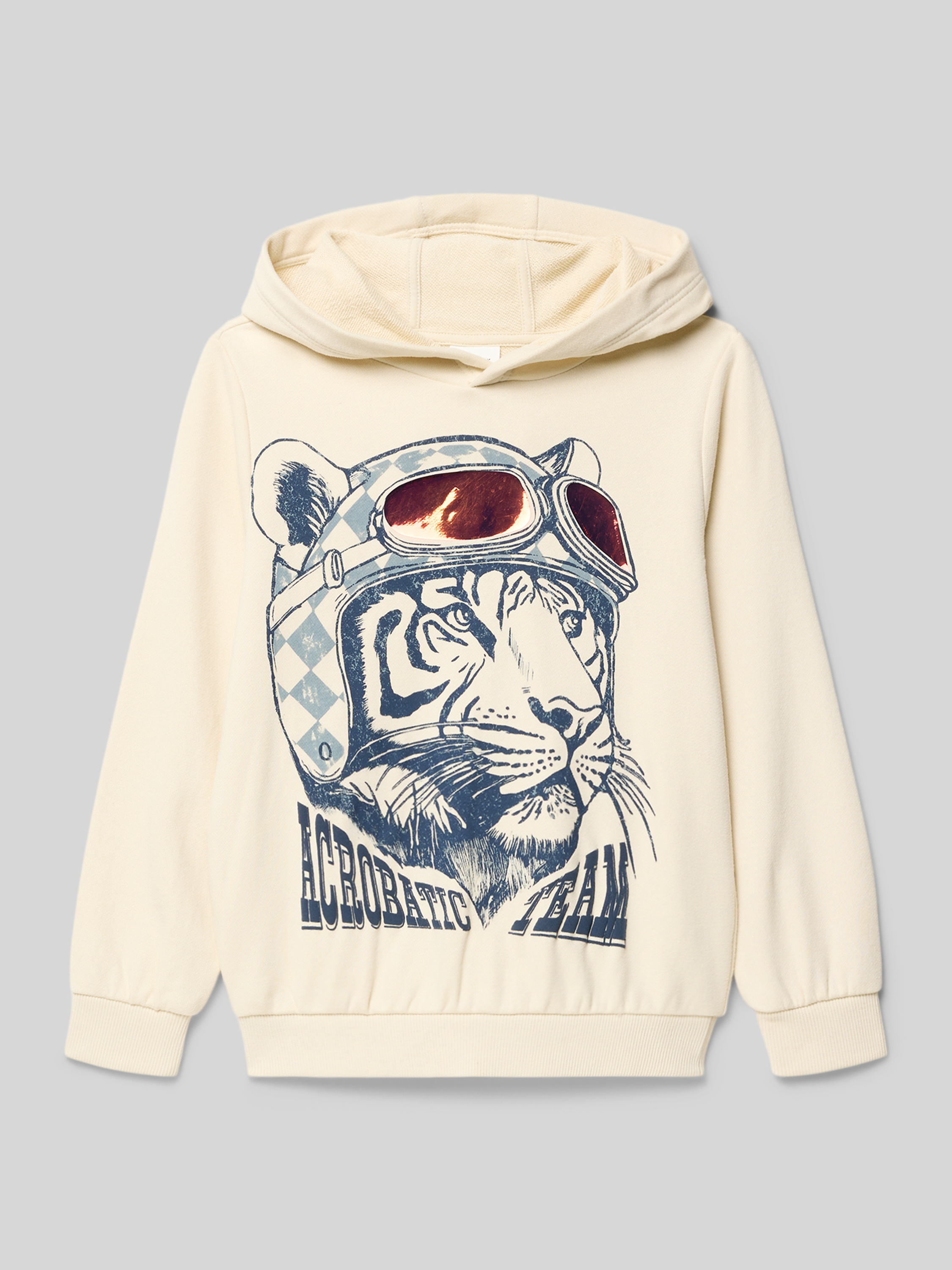 Der Kinder Hoodie von s.Oliver RED LABEL fällt durch seinen bequemen Regular Fit auf, der Bewegungsfreiheit im Alltag ermöglicht. Durch den Baumwoll-Mix trägt sich das Modell angenehm weich und pflegeleicht. Ein Motiv-Print auf der Vorderseite sorgt für einen frischen, kindgerechten Akzent.