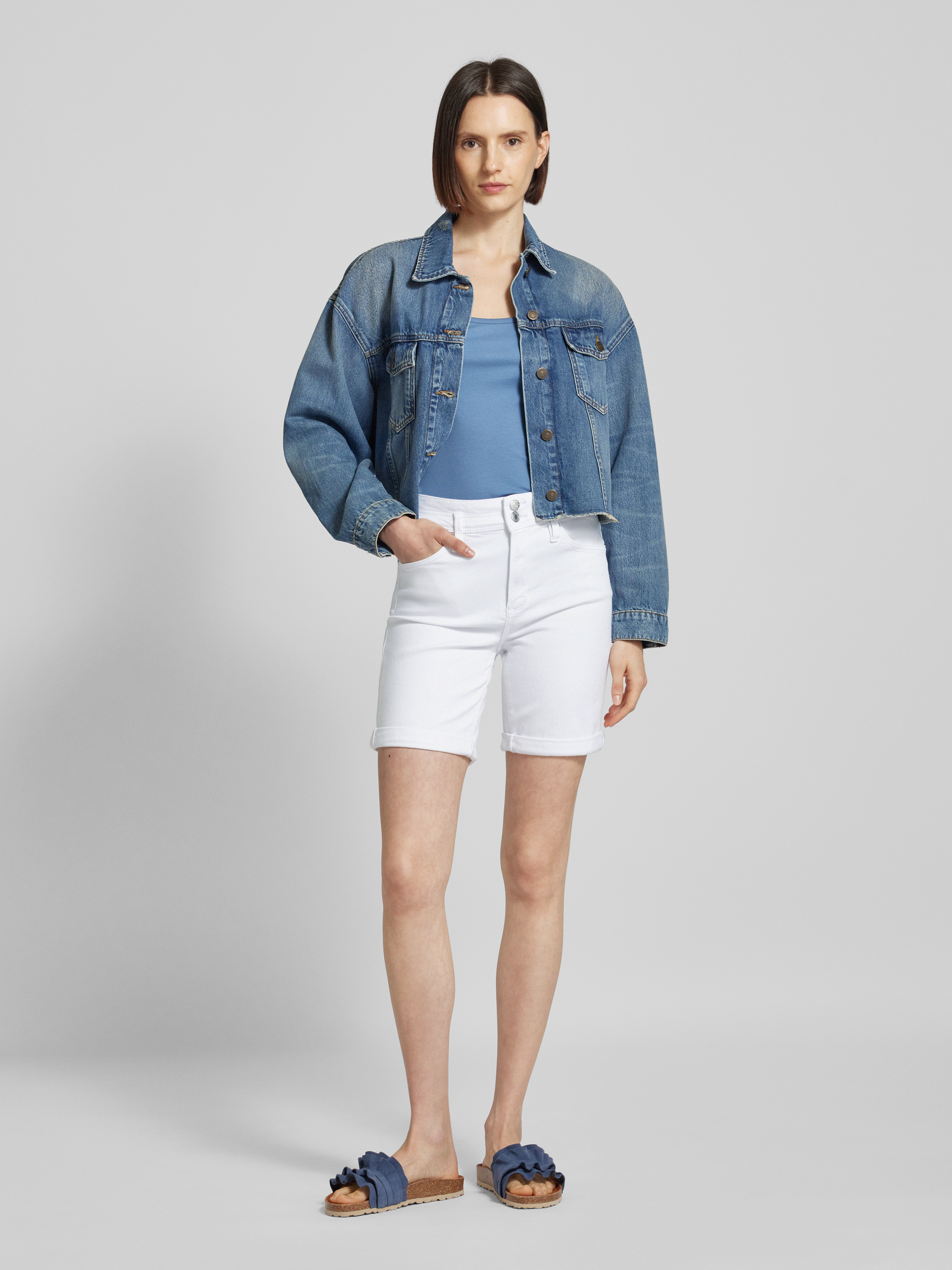 s.Oliver RED LABELRegular Fit Jeansshorts mit Gürtelschlaufen in weiss
