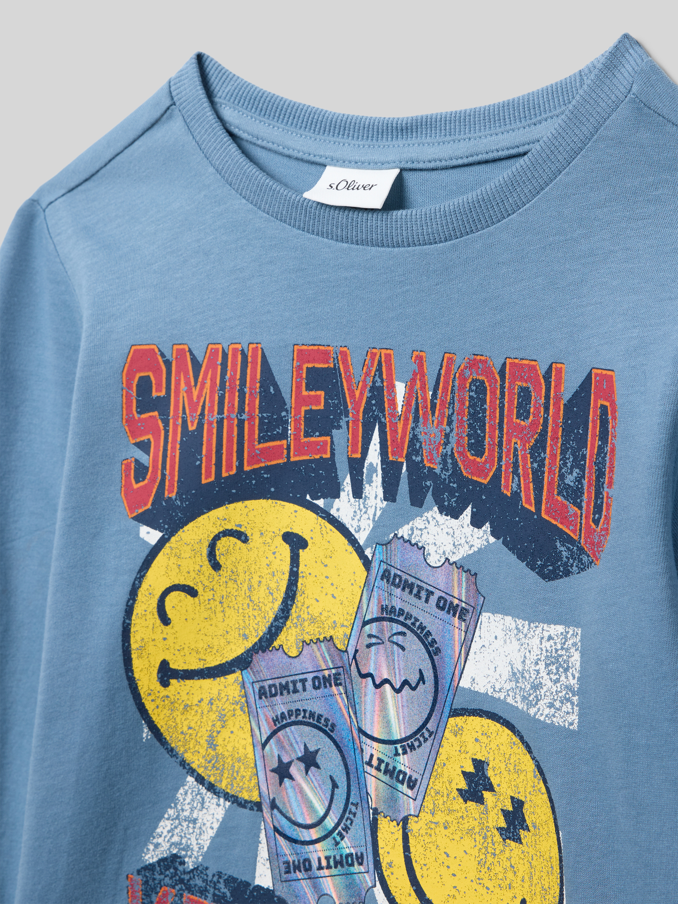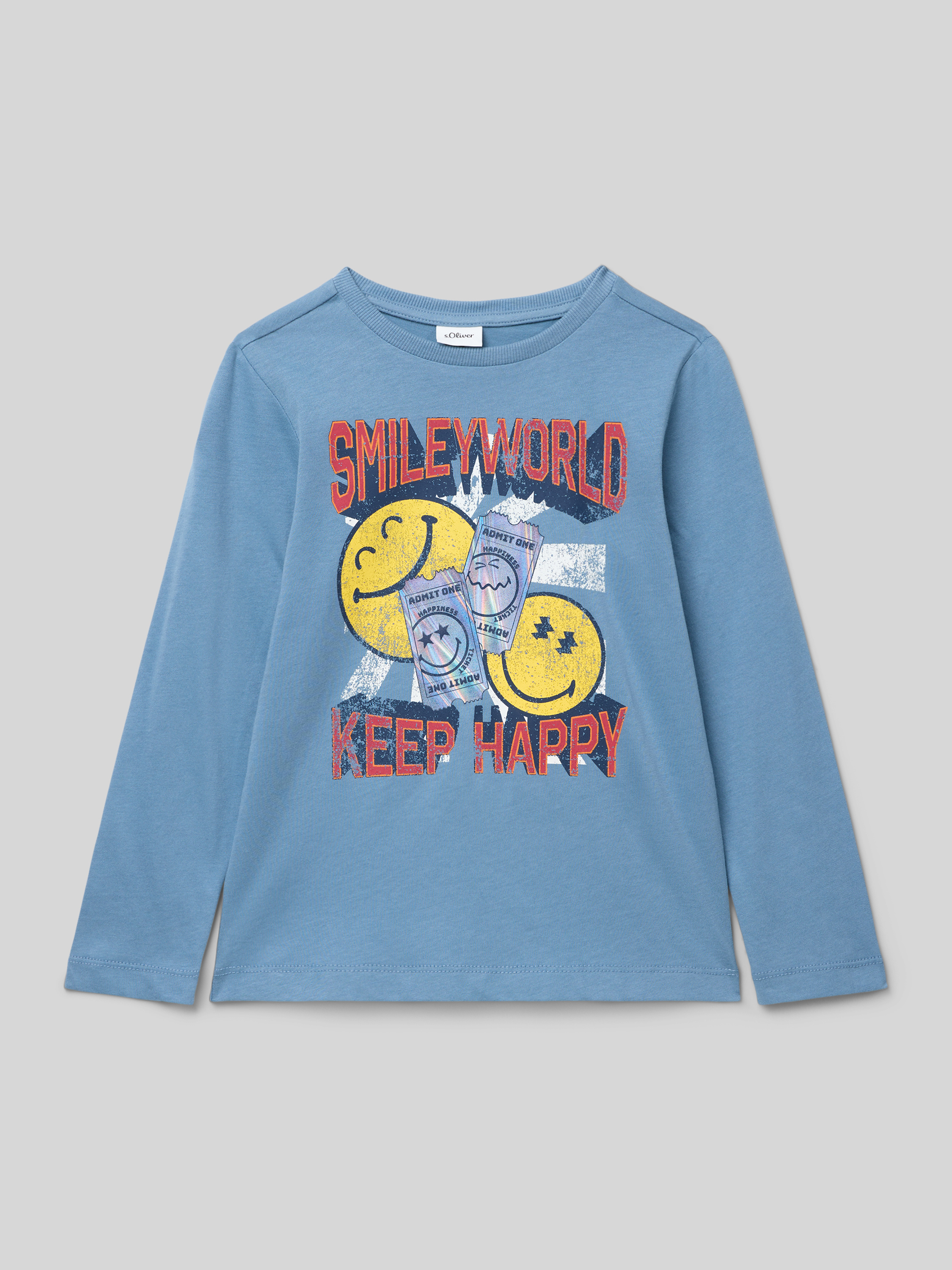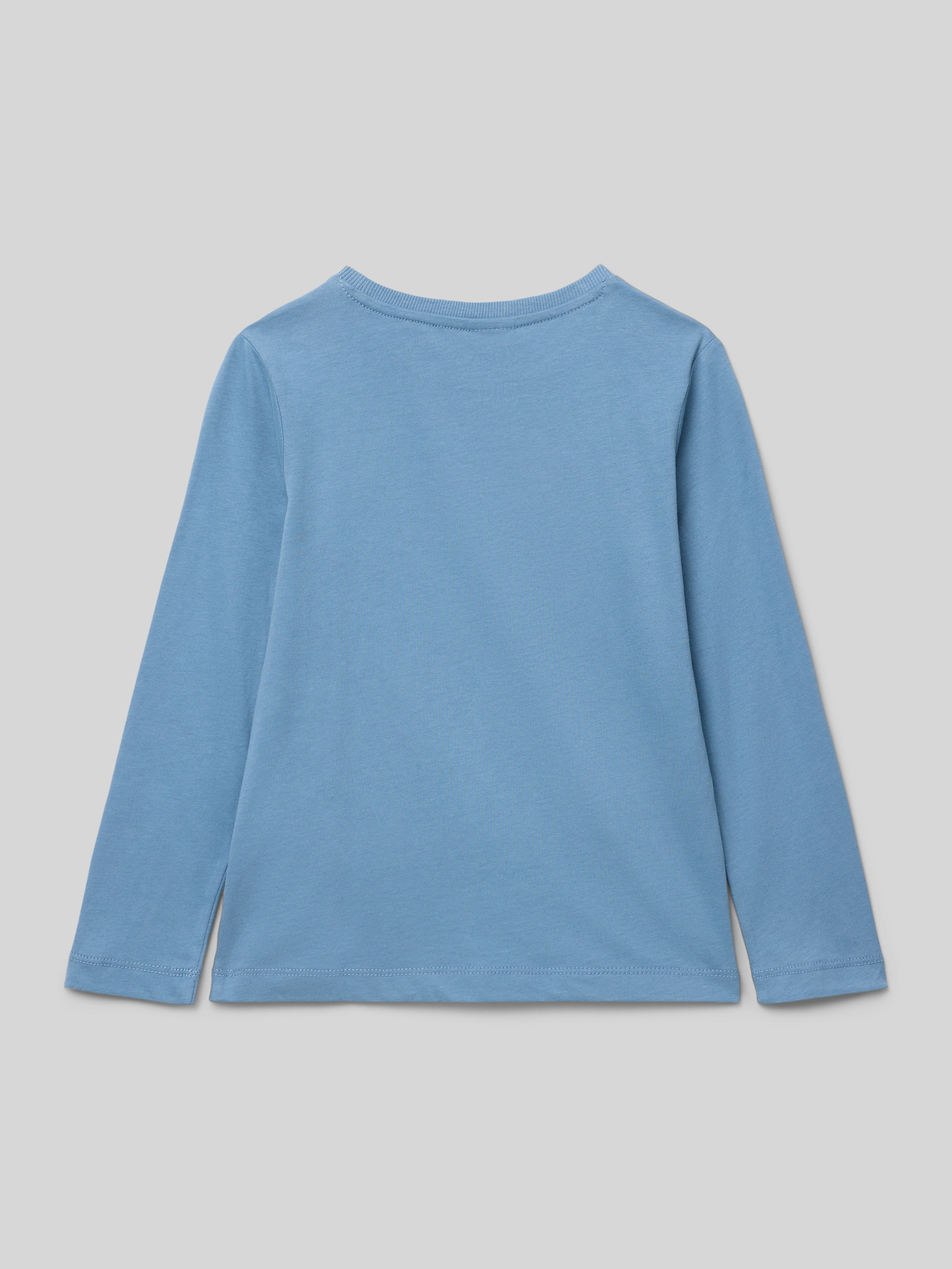Das Kinder Langarmshirt von s.Oliver RED LABEL zeigt sich in schlichter, unifarbener Optik und liegt durch seinen Regular Fit angenehm am Körper. Reine Baumwolle sorgt für ein weiches Tragegefühl, während der Motiv-Print auf der Vorderseite für Abwechslung im Alltag steht. Der klassische Rundhalsausschnitt und die langen Ärmel runden das bequeme Design ab.