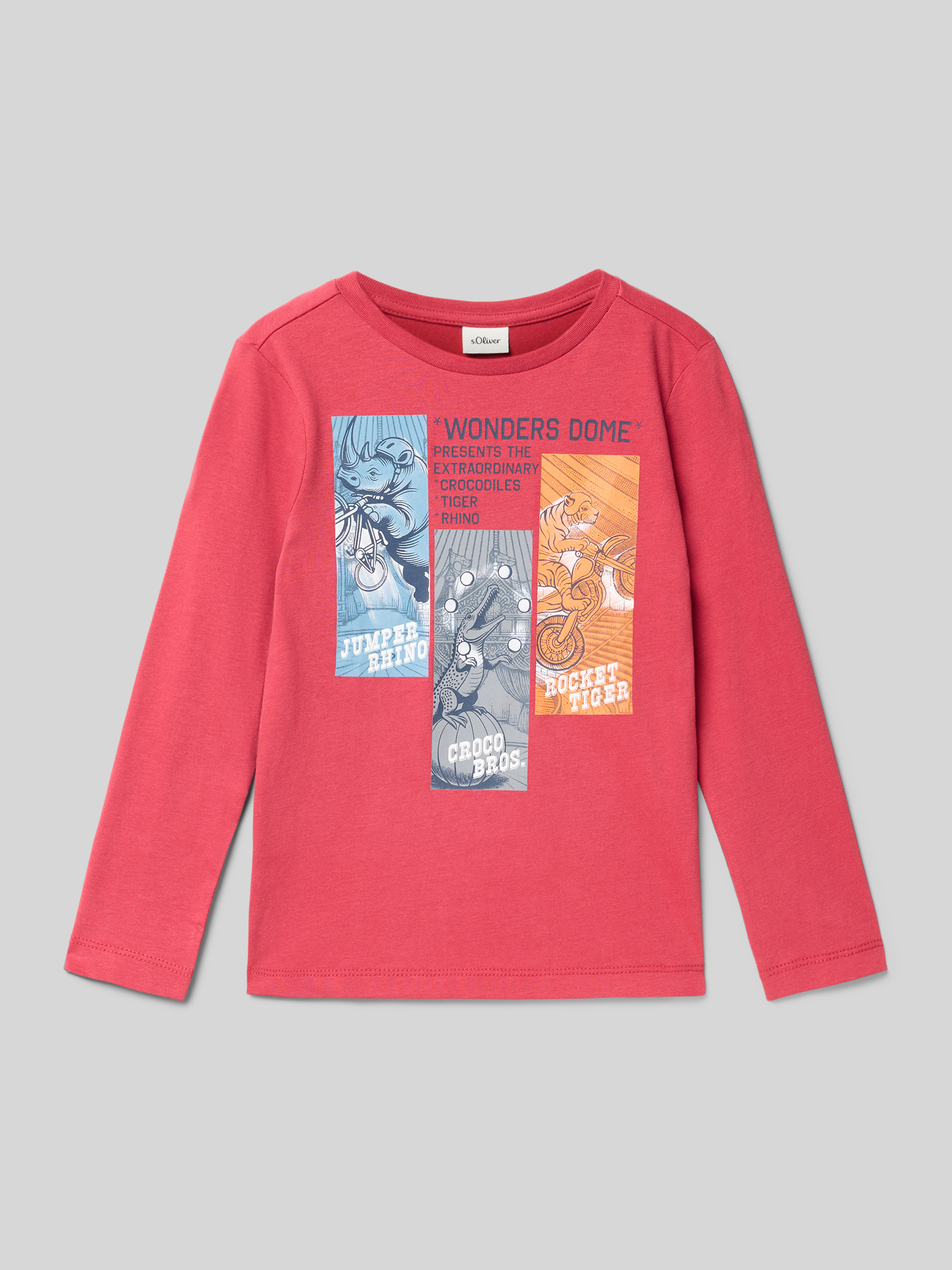 Das Regular Fit Langarmshirt von s.Oliver RED LABEL aus reiner Baumwolle schmiegt sich dank weichem Jersey angenehm an die Haut. Durch die gerade Passform und den klassischen Rundhalsausschnitt entsteht ein unkompliziertes Tragegefühl, das Bewegungsfreiheit ermöglicht. Ein fröhlicher Motiv-Print bringt Abwechslung in den Alltag.