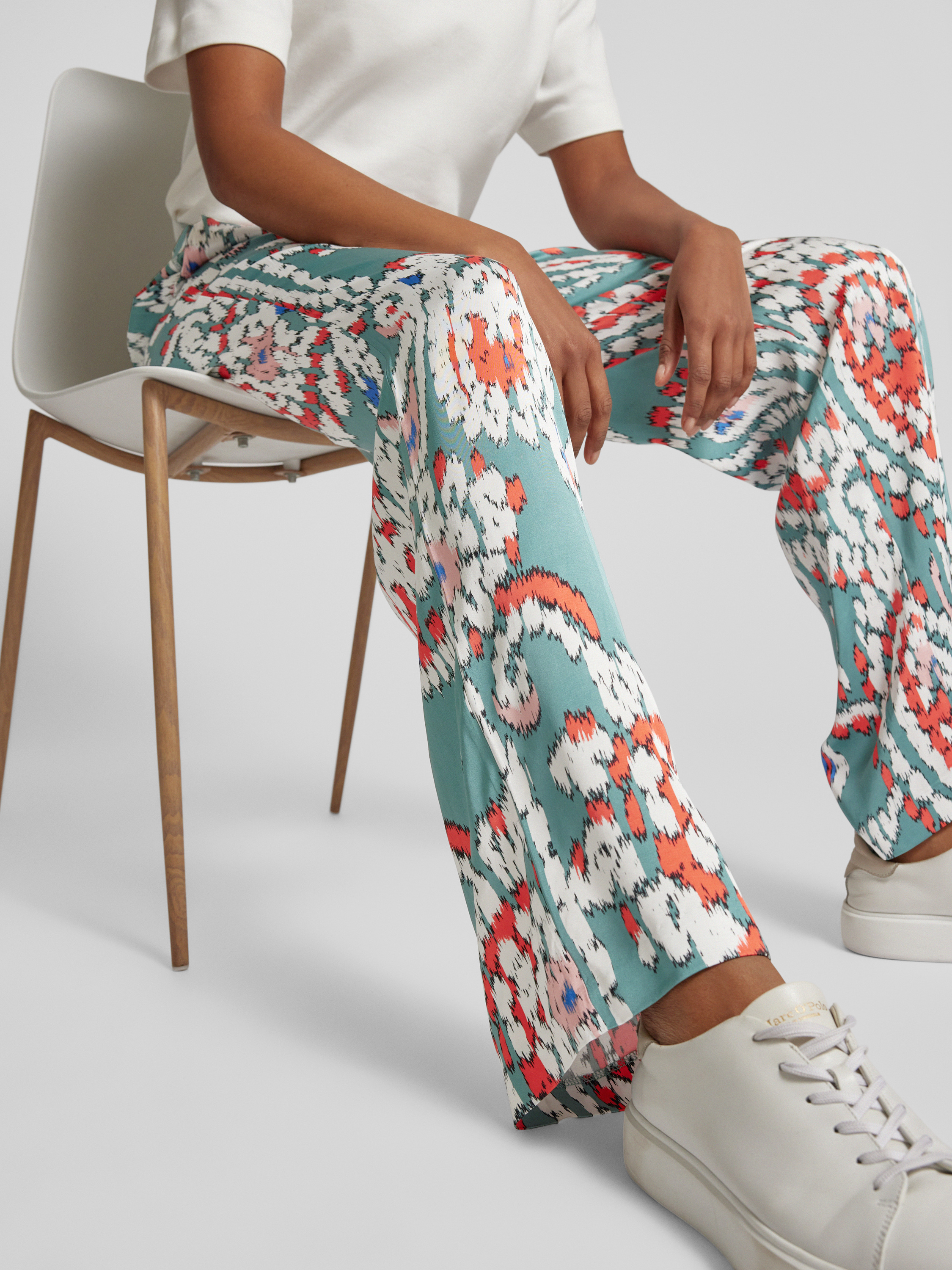 Die Stoffhose von s.Oliver RED LABEL, aus reiner Viskose gefertigt, verspricht dank ihres Regular Fit Schnitts eine bequeme Passform. Mit ihrem lebendigen Allover-Print wird jedes Outfit mühelos aufgewertet. Gürtelschlaufen bieten zusätzliche Flexibilität bei der Wahl der Accessoires.