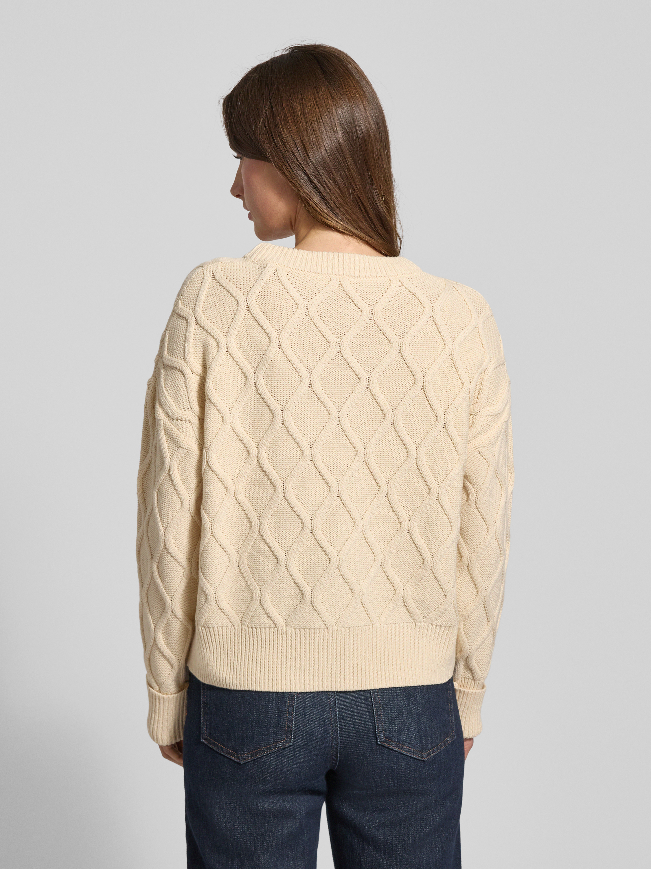 Der Damen Strickpullover von s.Oliver RED LABEL zeigt sich in einer schlichten, unifarbenen Strickoptik und bringt durch das vertikale Wellenmuster dezente Dynamik ins Design. Die Regular Fit Passform sorgt zusammen mit dem Rundhalsausschnitt für angenehmen Tragekomfort im Alltag. Dank des Baumwoll-Mix fühlt man sich auch an langen Tagen wohl und gepflegt angezogen.