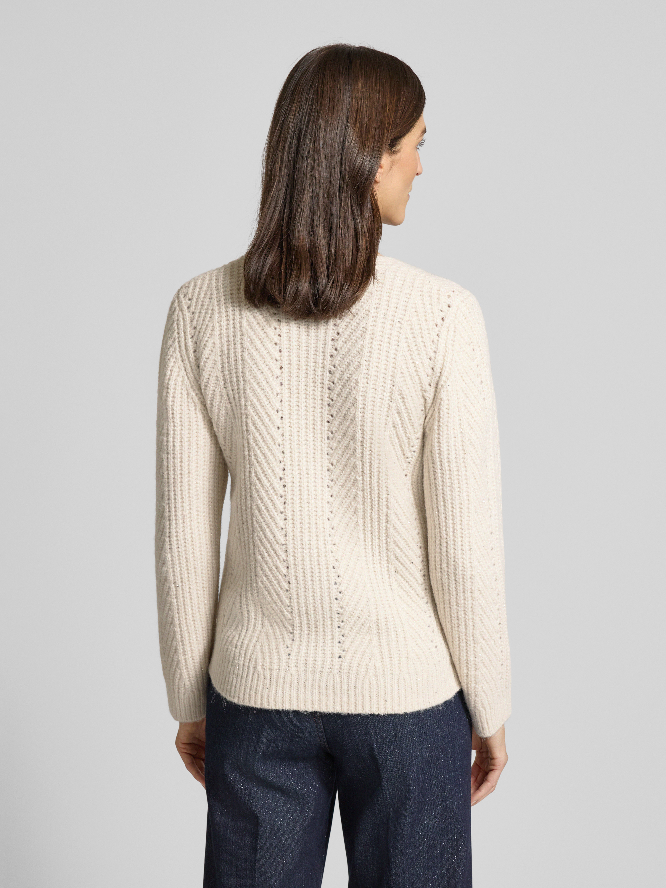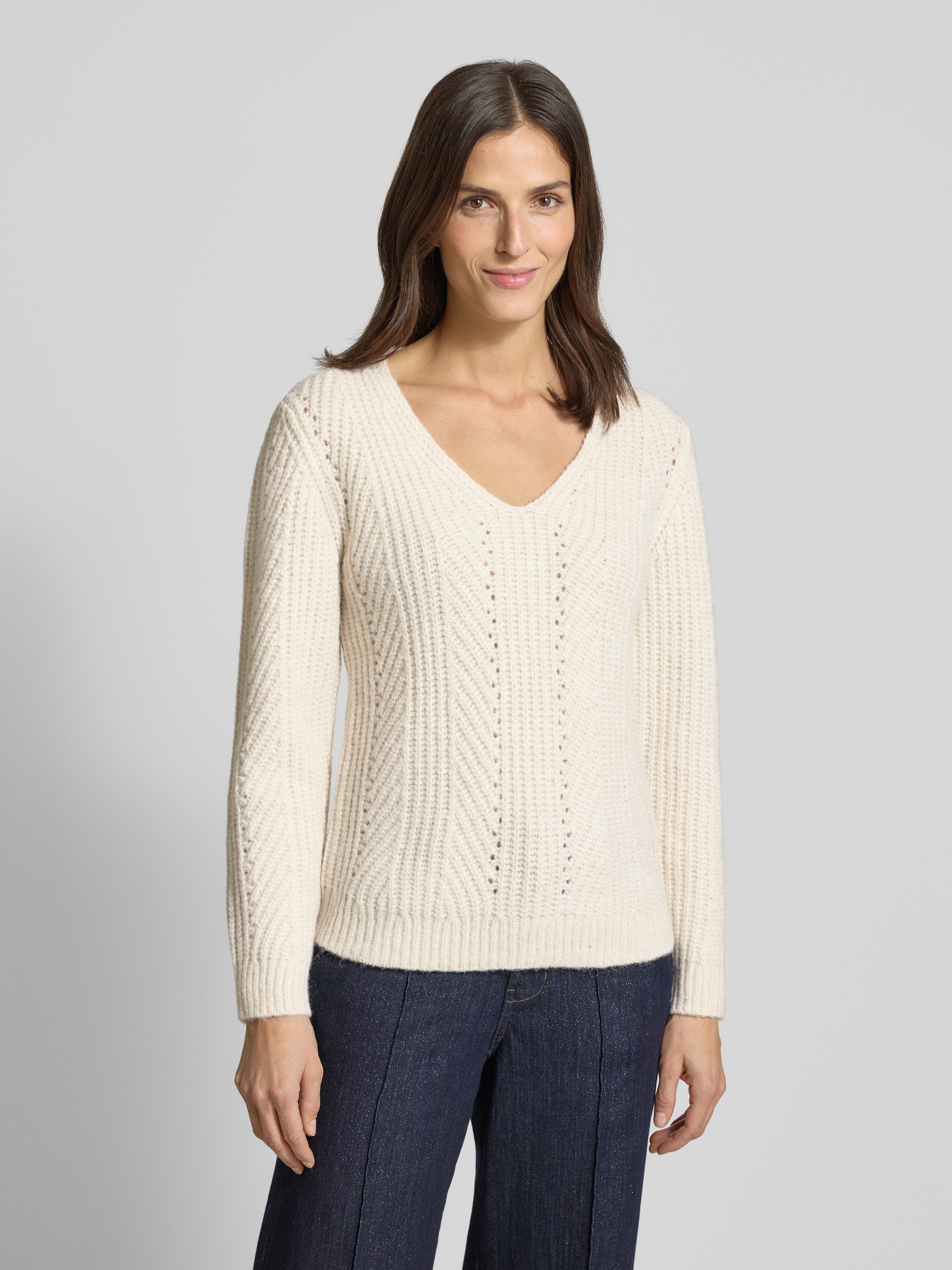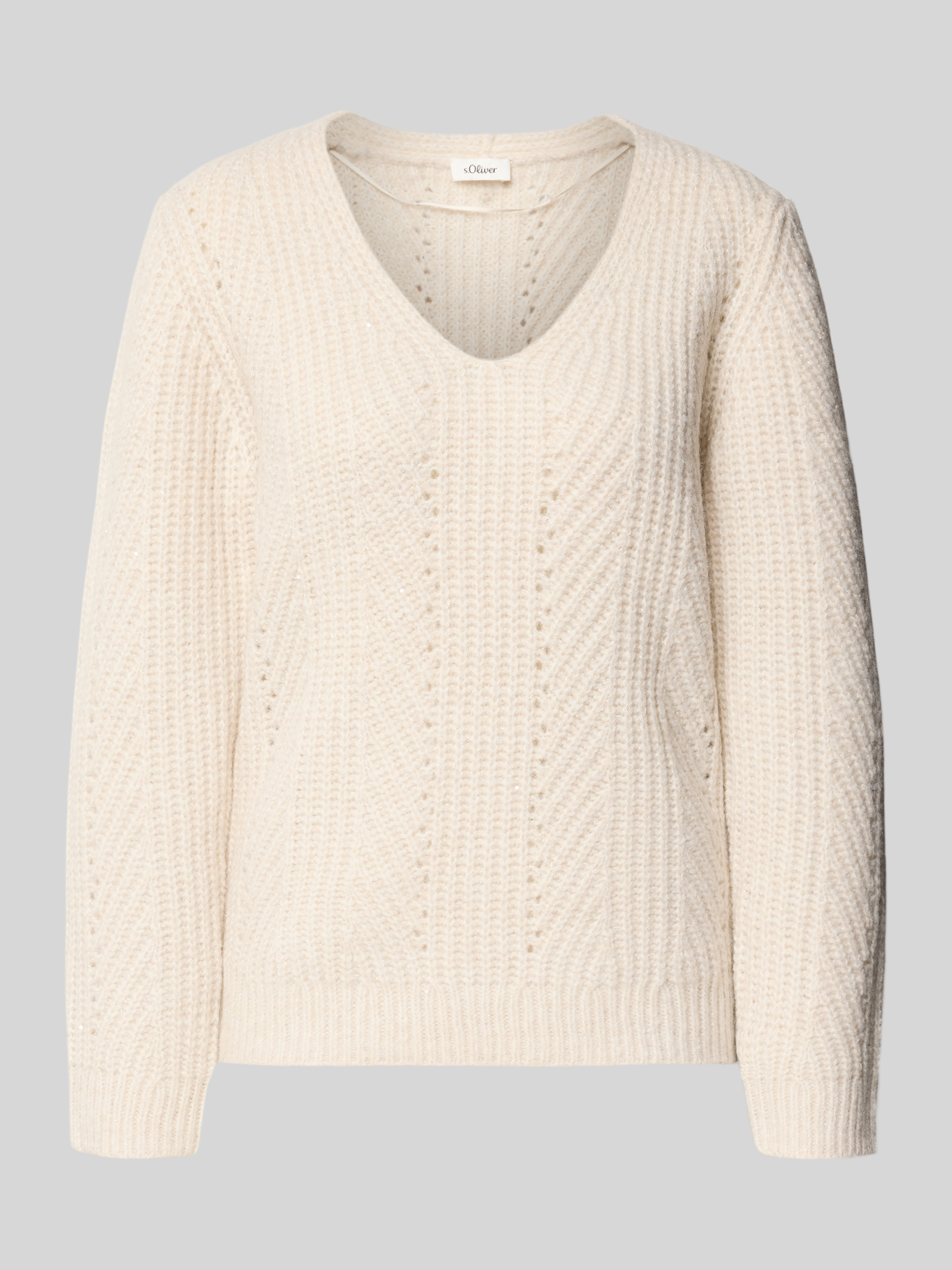 Der Strickpullover von s.Oliver RED LABEL fällt durch seinen schimmernden Grobstrick und den dezenten Paillettenbesatz ins Auge, wodurch die Optik belebt wird. Dank Regular-Fit und V-Ausschnitt sitzt das Modell angenehm, sodass Bewegungsfreiheit im Alltag erhalten bleibt. Ein spürbarer Woll-Anteil verleiht dem Pullover eine angenehme Wärme, die man an kühleren Tagen schätzt.