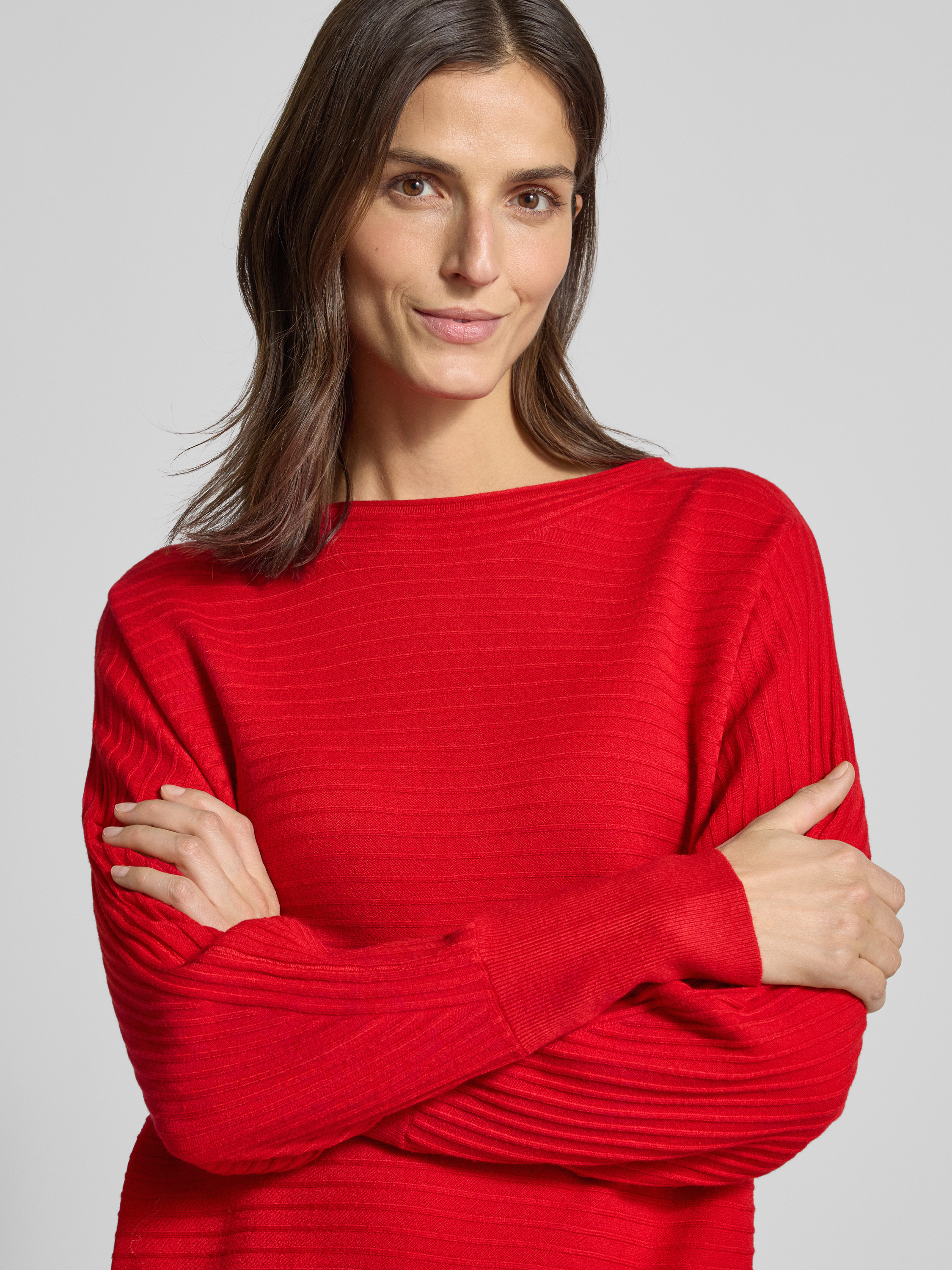 Der Damenpullover von s.Oliver RED LABEL zeigt sich im entspannten Relaxed Fit und sorgt durch die Fledermausärmel für angenehme Bewegungsfreiheit. Der Mock Neck und das unifarbene Design verleihen dem Modell eine moderne Note. Rippstrick und Rollsaum setzen dezente Akzente, wodurch sich vielseitige Kombinationen ergeben.