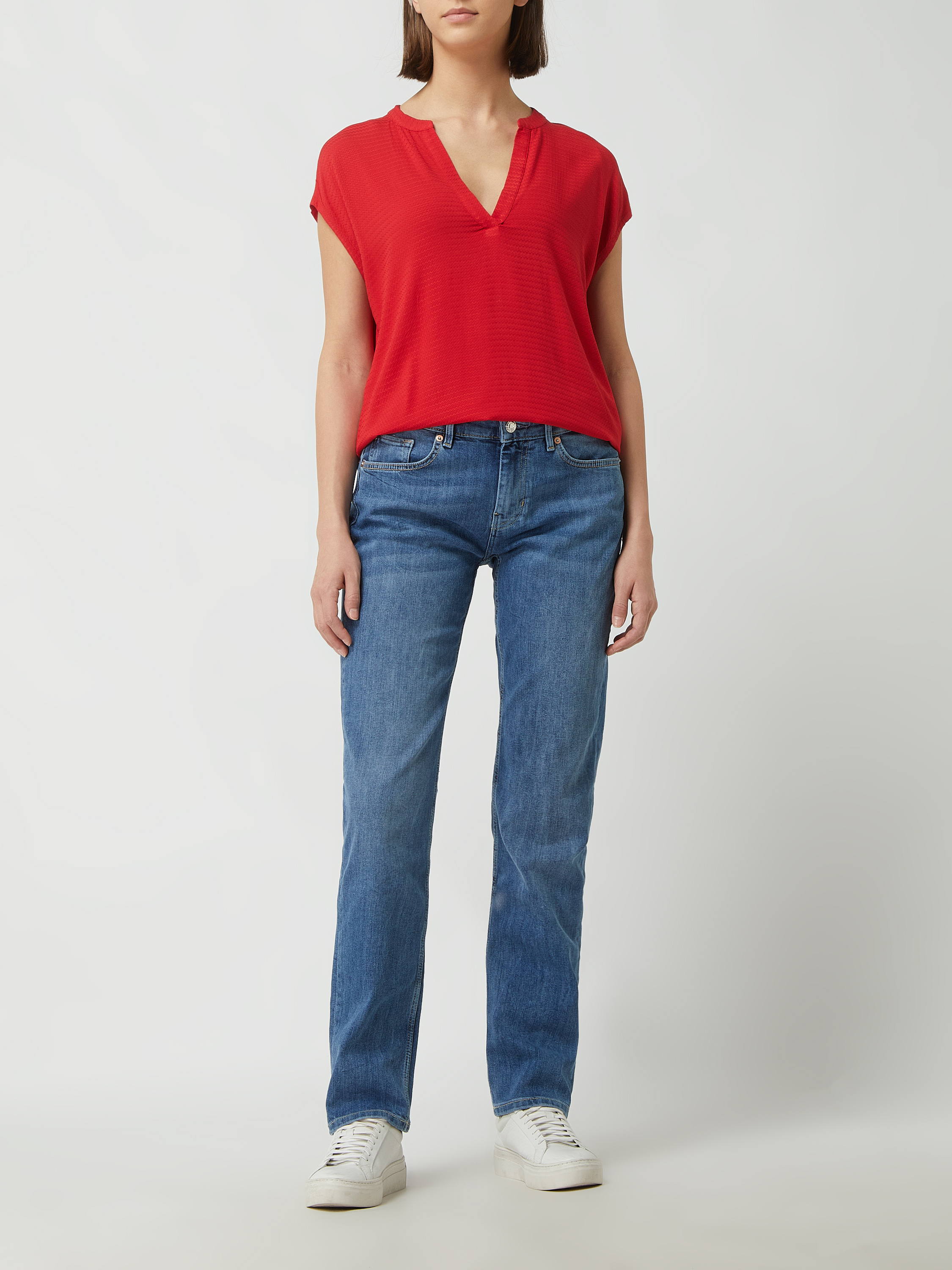 Die Damen Straight Fit Jeans von s.Oliver RED LABEL passt sich dank Stretch-Anteil angenehm an und sorgt für Bewegungsfreiheit im Alltag. Durch das schmale Bein und die 7/8-Länge entsteht eine moderne Silhouette, die sich vielseitig kombinieren lässt. Praktische Taschen und der Tunnelzugbund runden das Design ab.