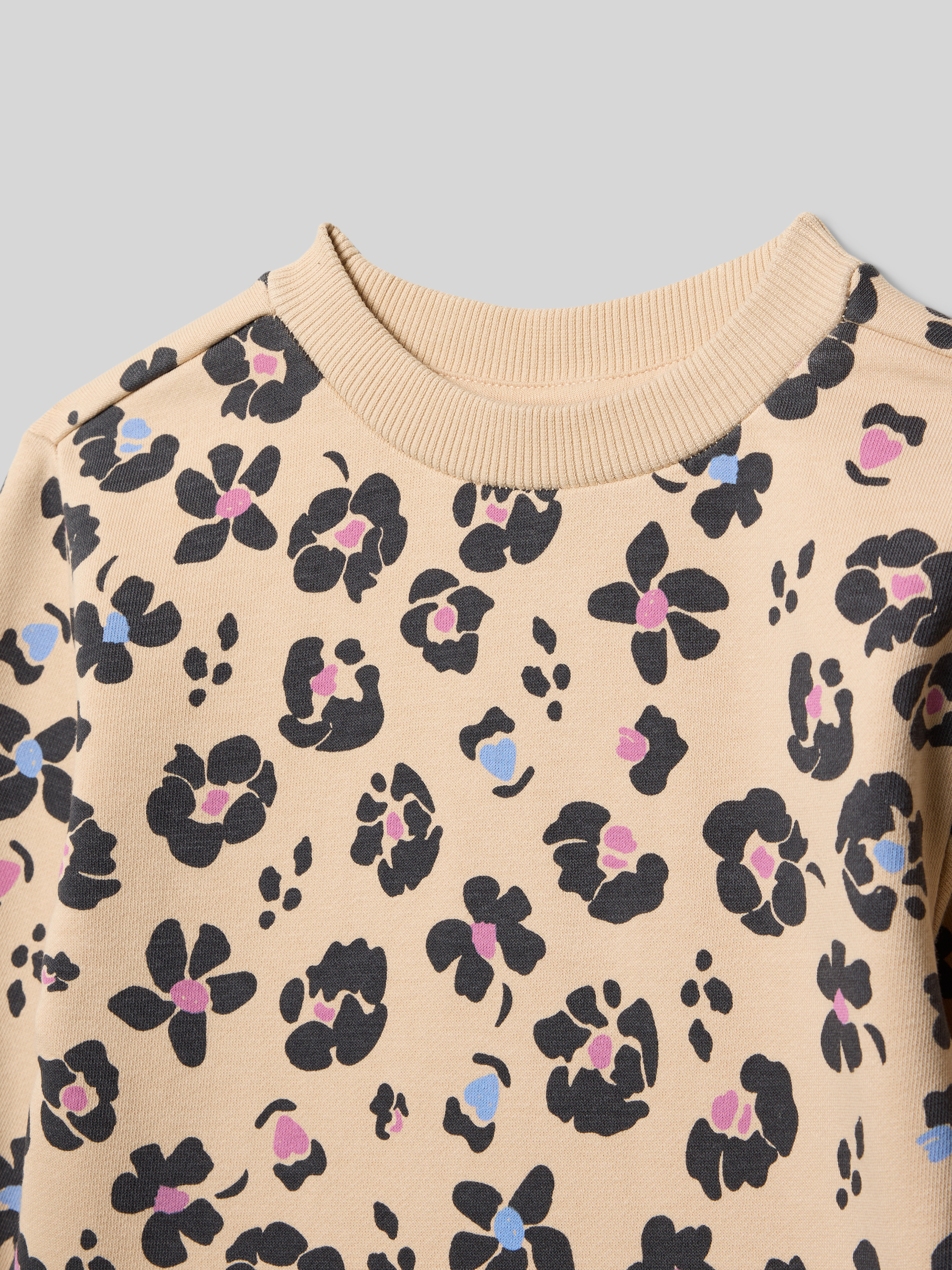 Das Kinder Sweatkleid von s.Oliver RED LABEL zeigt mit seinem Leo-Print und der taillierten Form eine verspielte Seite, während die Mini-Länge für Bewegungsfreiheit sorgt. Durch das weiche Sweat-Material fühlt sich das Kleid angenehm auf der Haut an. Ein Rundhalsausschnitt und lange Ärmel runden den Look ab.