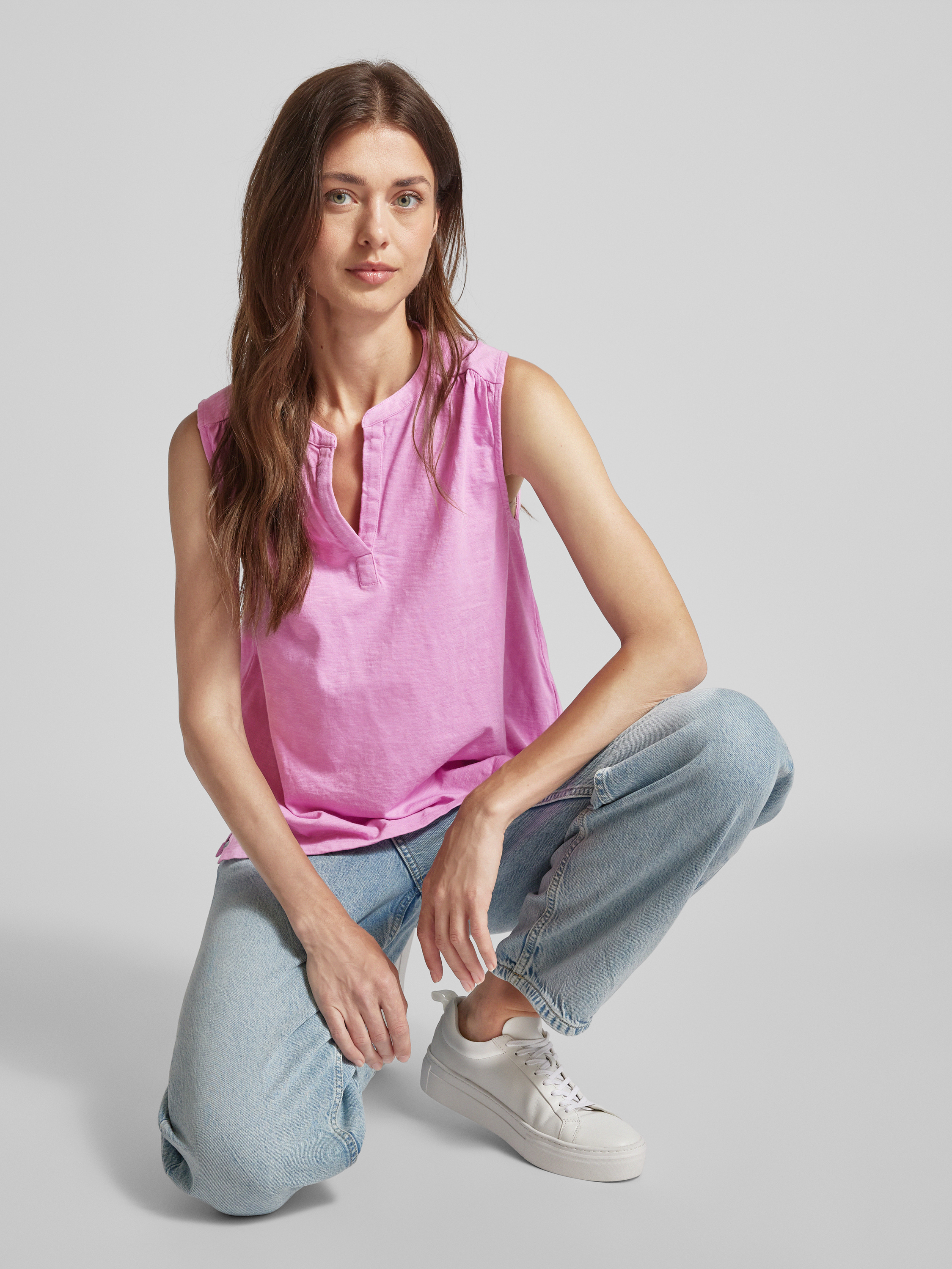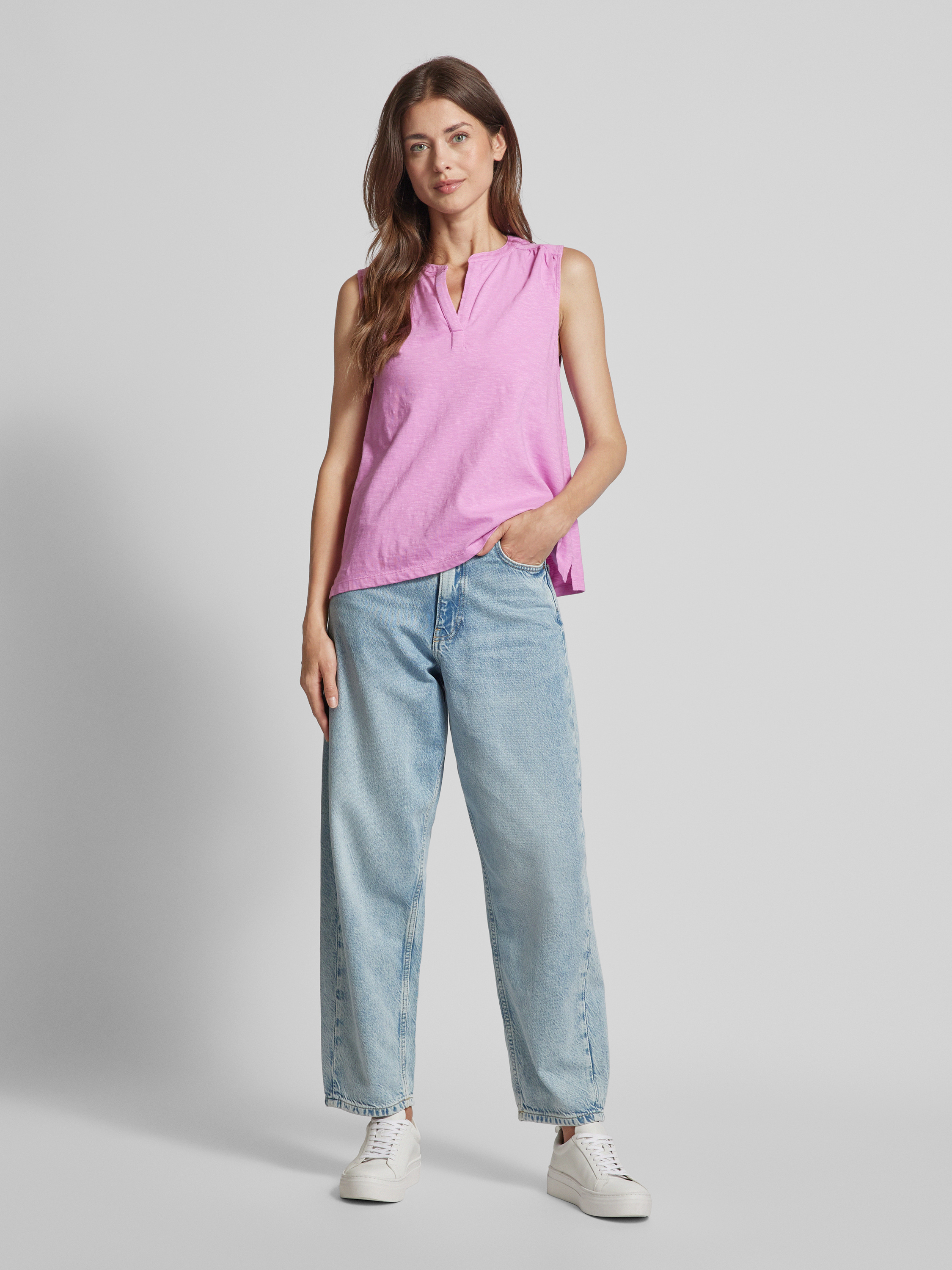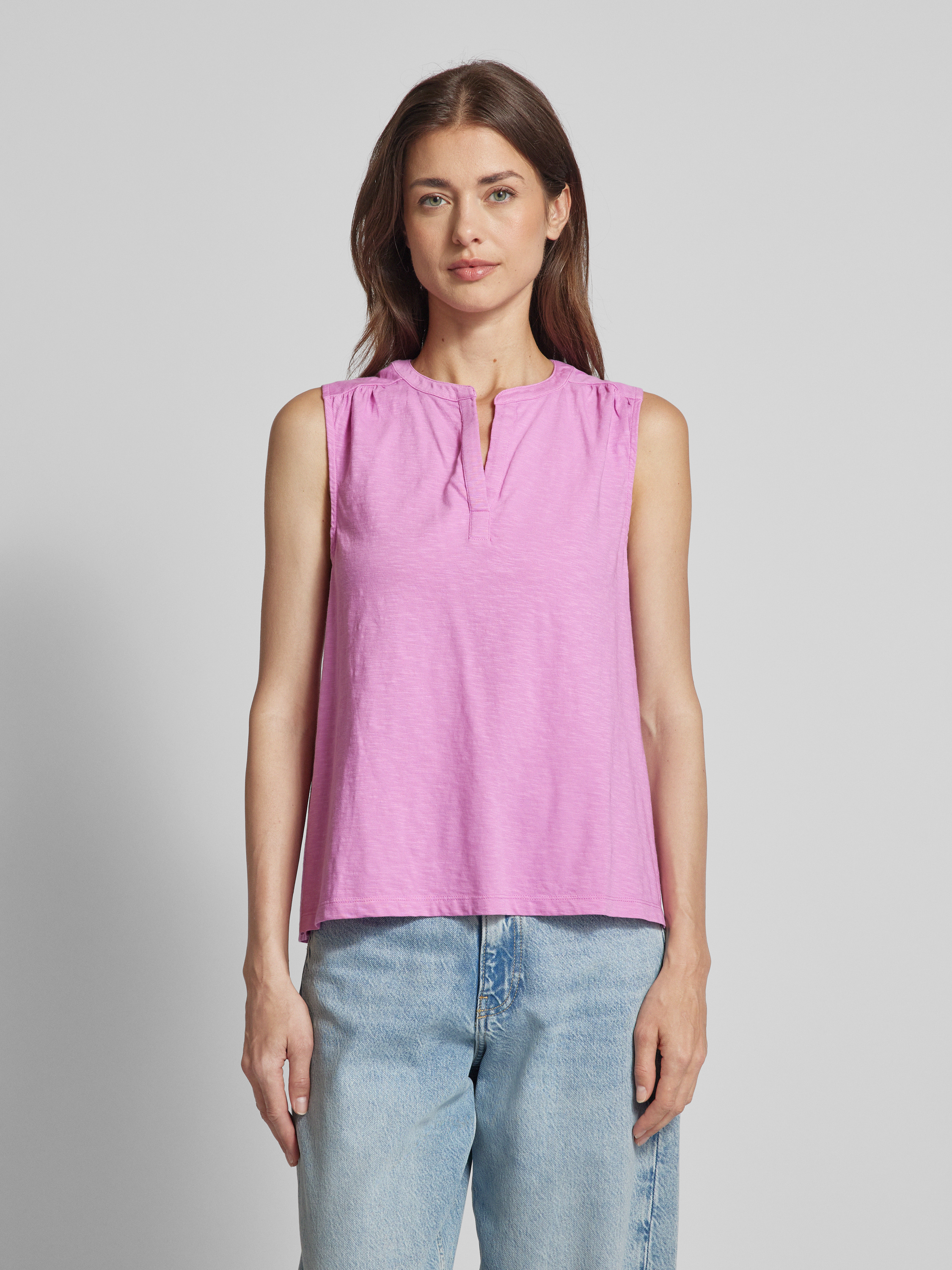 Das Damen Top von S.OLIVER CASUAL überzeugt durch seinen geraden Schnitt und den eleganten Tunikakragen, der eine lässige, aber dennoch stilvolle Optik verleiht. Gefertigt aus reiner Baumwolle, bietet es angenehmen Tragekomfort, während die Seitenschlitze dezente Details hinzufügen. Ideal für sommerliche Tage, passt es sich vielseitig verschiedenen Outfits an.