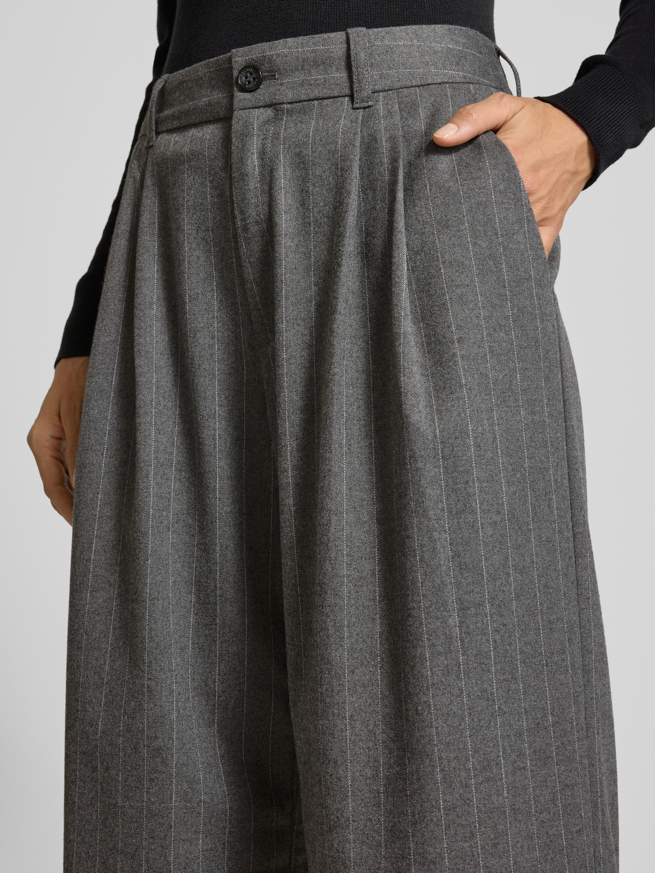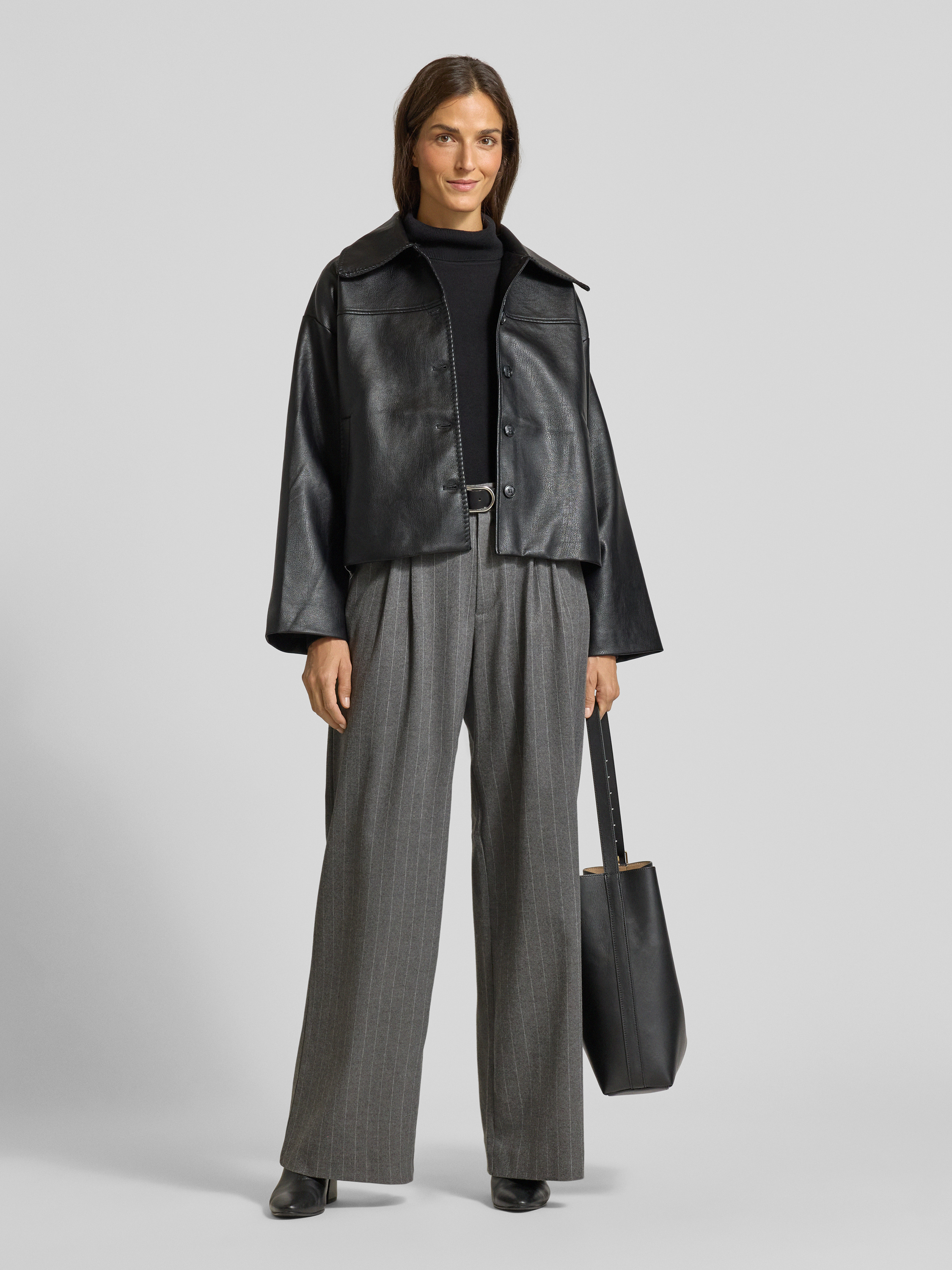 Die weite Hose von s.Oliver RED LABEL kombiniert ein klassisches Nadelstreifenmuster mit einem entspannten Wide-Leg-Schnitt. Dank Bundfalten und Piqué-Verarbeitung fällt das Material angenehm locker, während praktische Taschen und Gürtelschlaufen den Alltag unkompliziert begleiten. Das Allover-Muster bringt dezente Abwechslung in jedes Outfit.