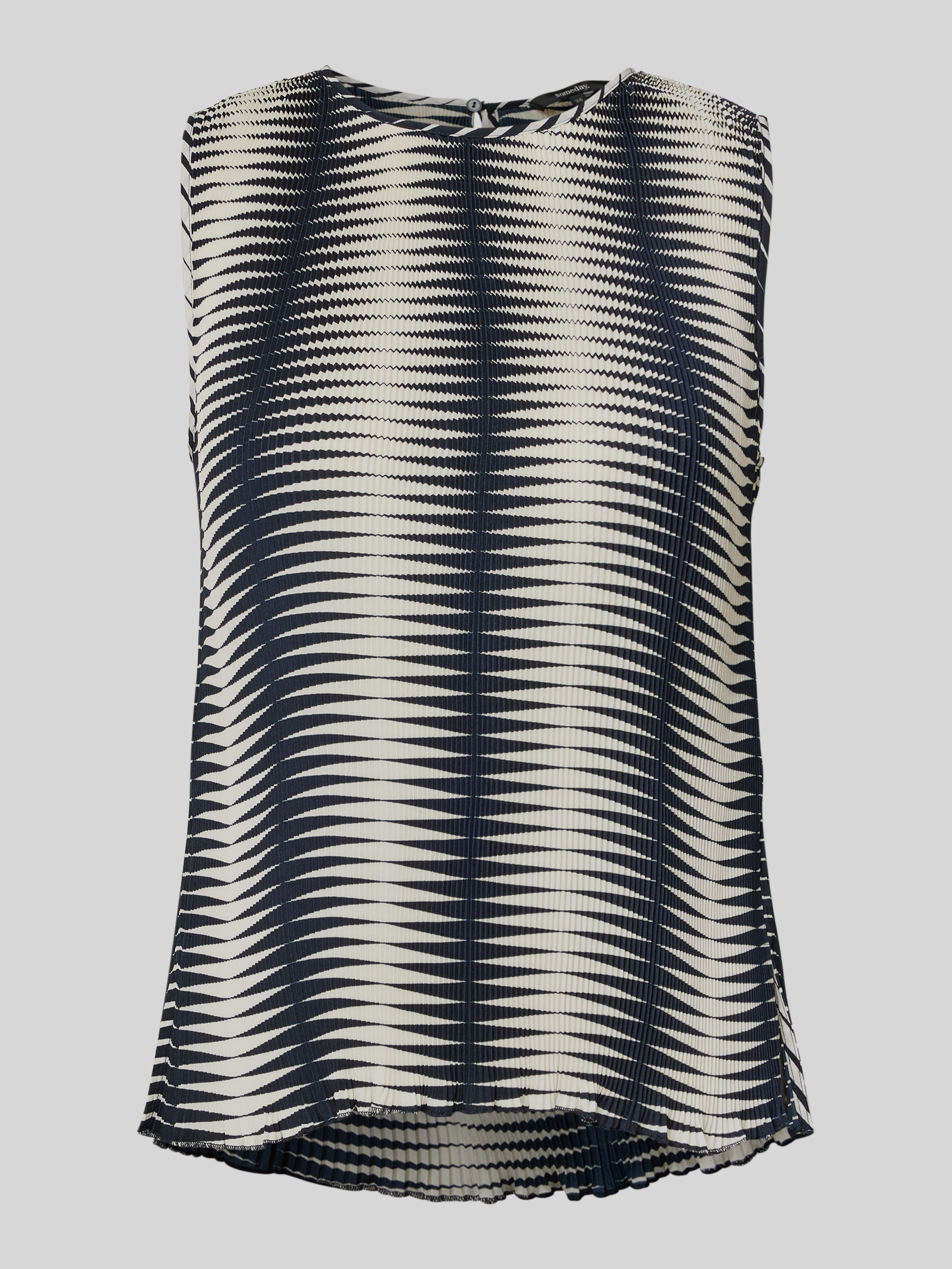 Das Blusenshirt Modell 'Zazana' von someday. vereint einen lockeren Schnitt mit einem eleganten Rundhalsausschnitt, der für ein angenehmes Tragegefühl sorgt. Die kunstvollen Plisseefalten verleihen dem Design eine raffinierte Note, die sich mühelos in jede Garderobe integrieren lässt. Ideal für vielseitige Kombinationen im Alltag.