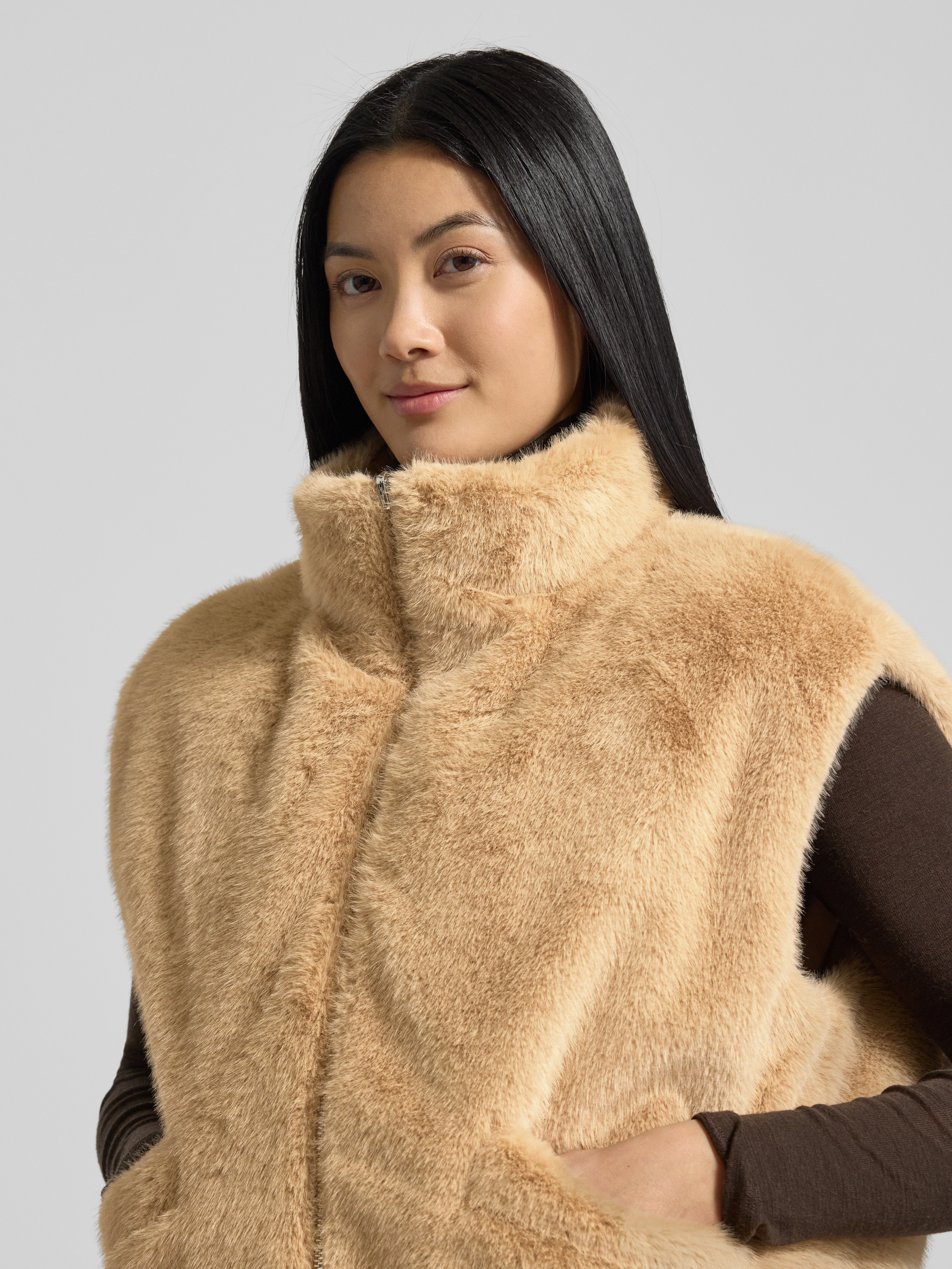 Die Damen Weste von Someday im Modell 'Vaari' zeigt sich im entspannten Relaxed-Fit und liegt angenehm weich durch das Kunstfell auf der Haut. Durch den Stehkragen wirkt der Look modern, während die legere Passform Bewegungsfreiheit im Alltag ermöglicht. Damit lässt sich vielseitig kombinieren, ohne einzuengen.