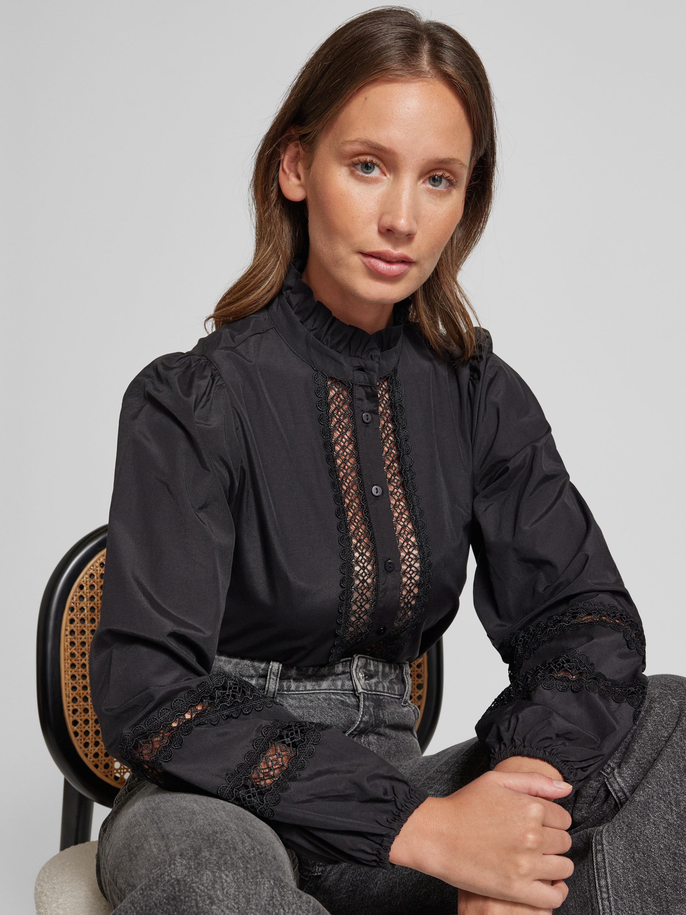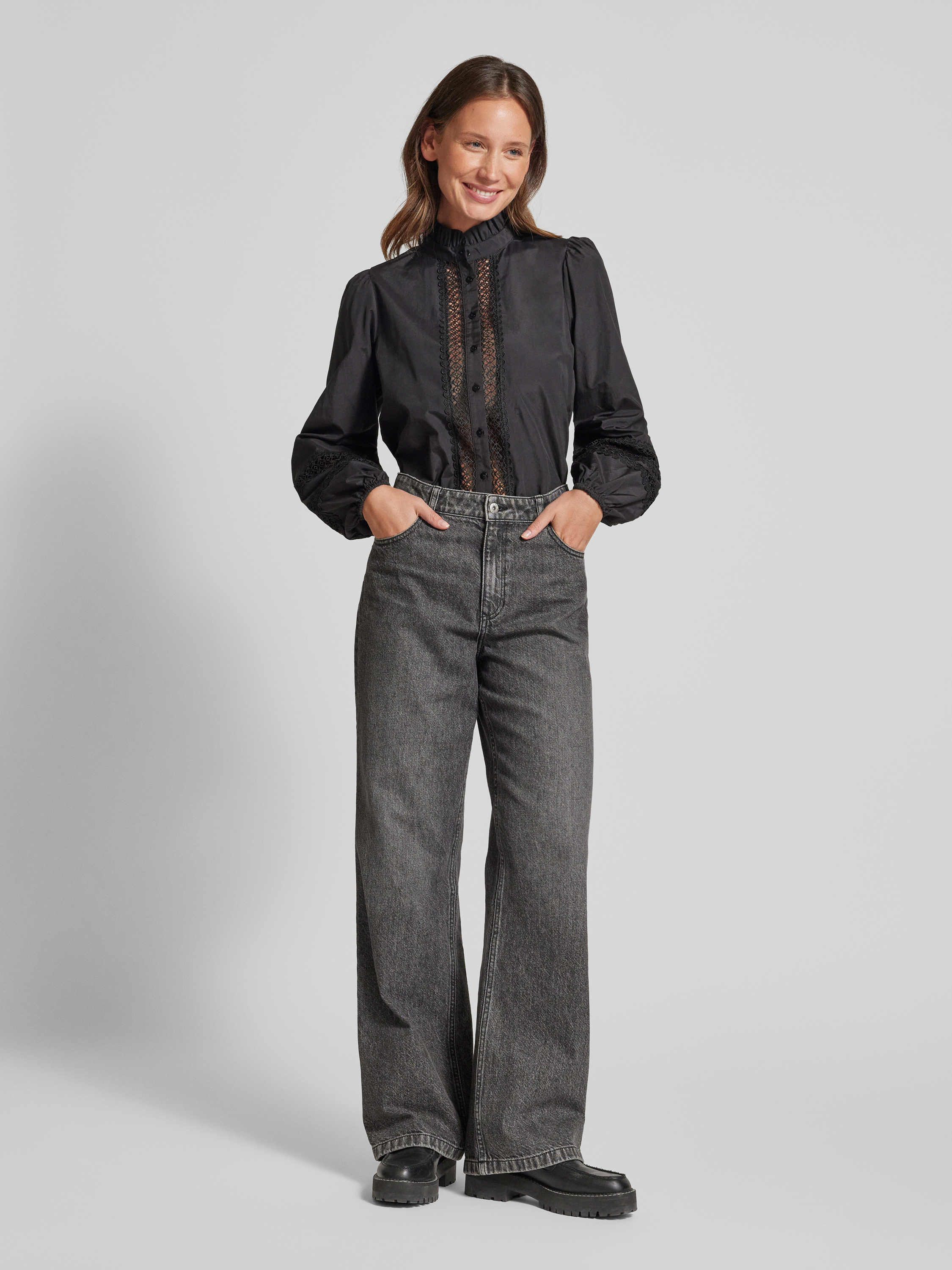SoyaconceptRegular Fit Hemdbluse mit Stehkragen Modell 'NETTI' in black