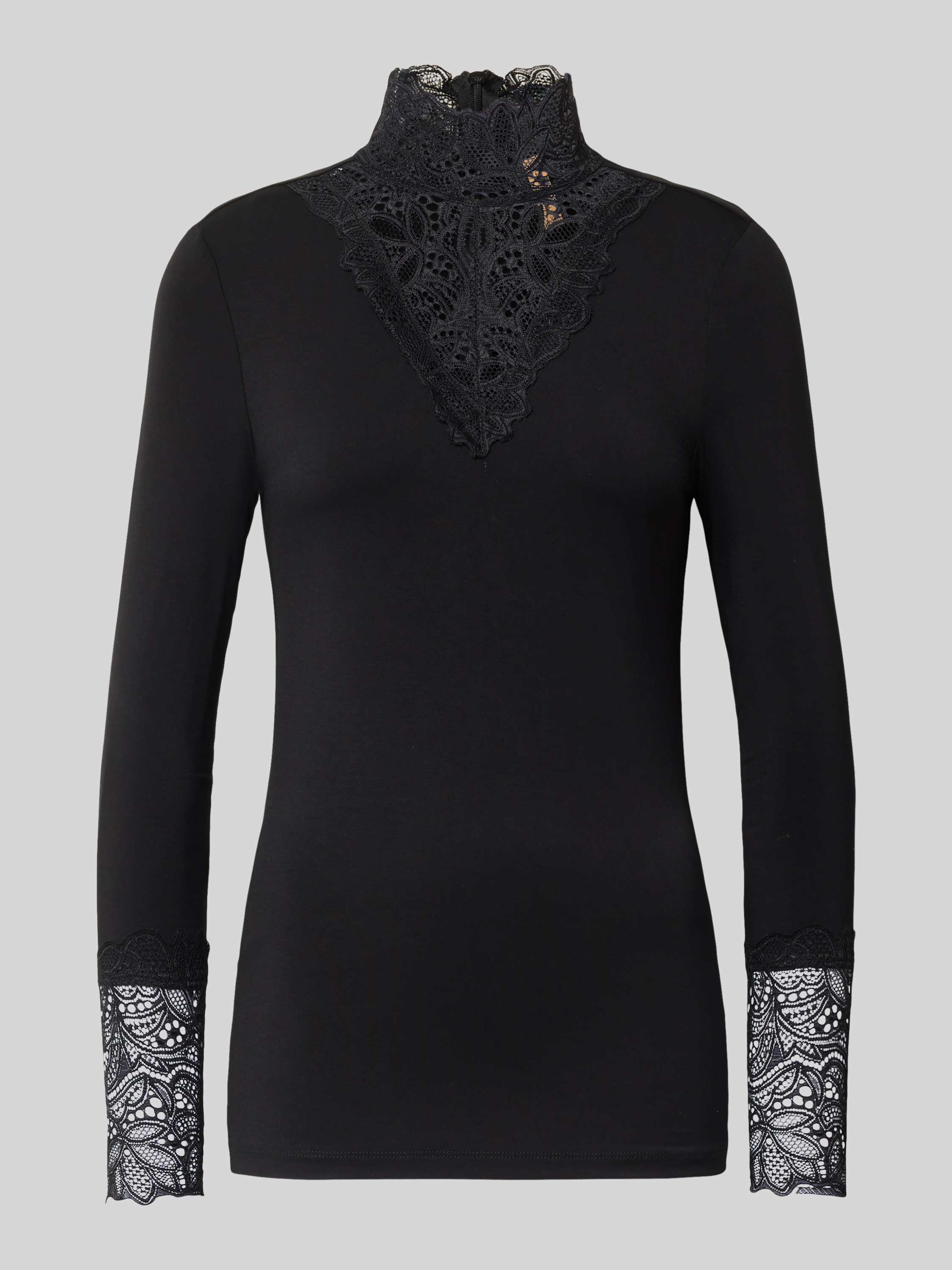 Das Damen Longsleeve von Soyaconcept, Modell Marica, bringt durch den schmalen Slim-Fit-Schnitt eine betonte Silhouette ins Spiel. Ein elastischer Lyocell-Mix sorgt dafür, dass das Oberteil angenehm auf der Haut liegt und sich flexibel anpasst. Der V-Ausschnitt mit feinem Spitzenbesatz verleiht dem Look eine feminine Note, während man vielseitige Kombinationsmöglichkeiten erhält.