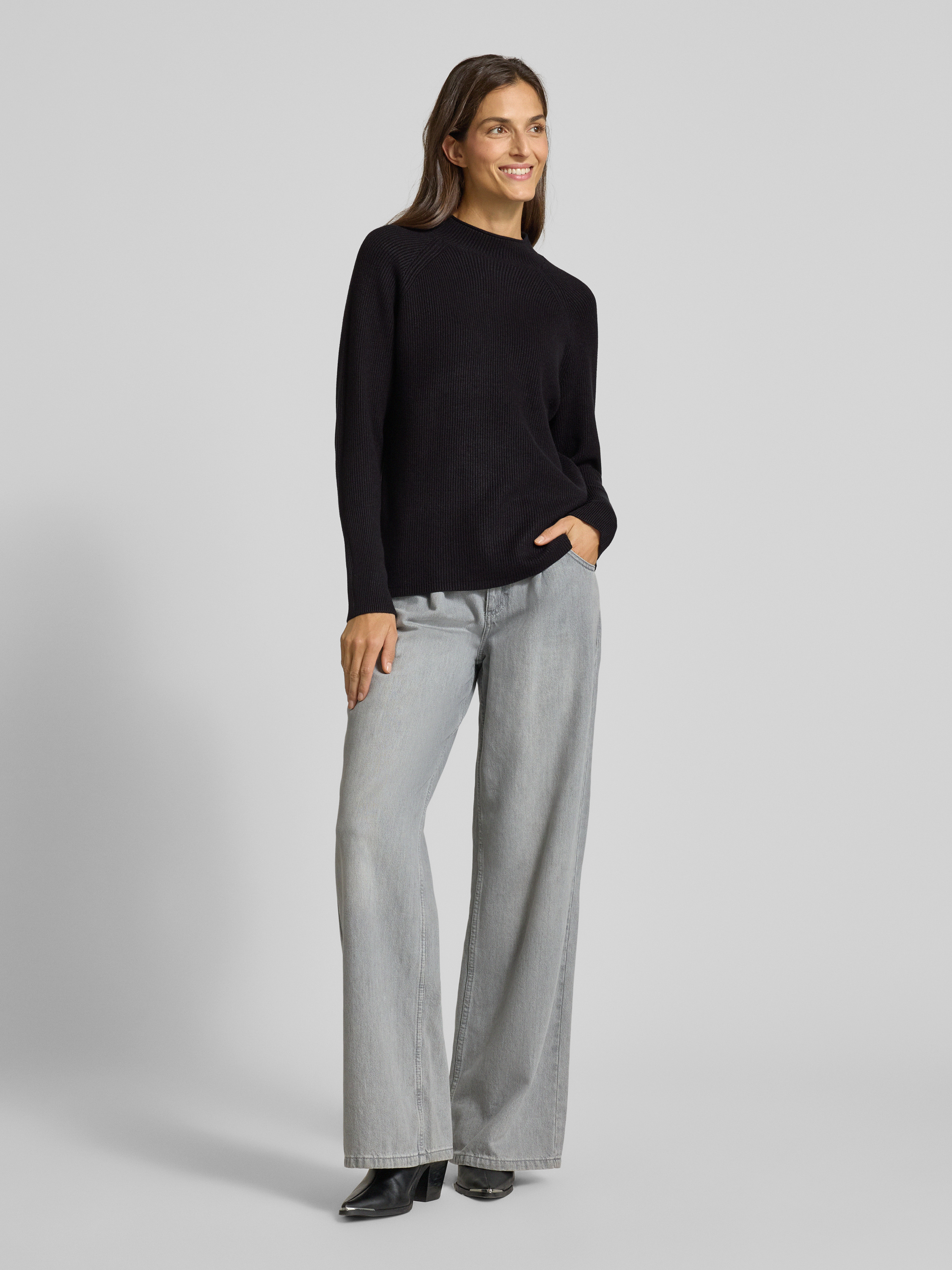 SoyaconceptStrickpullover mit gerippten Abschlüssen Modell 'KANITA' in black