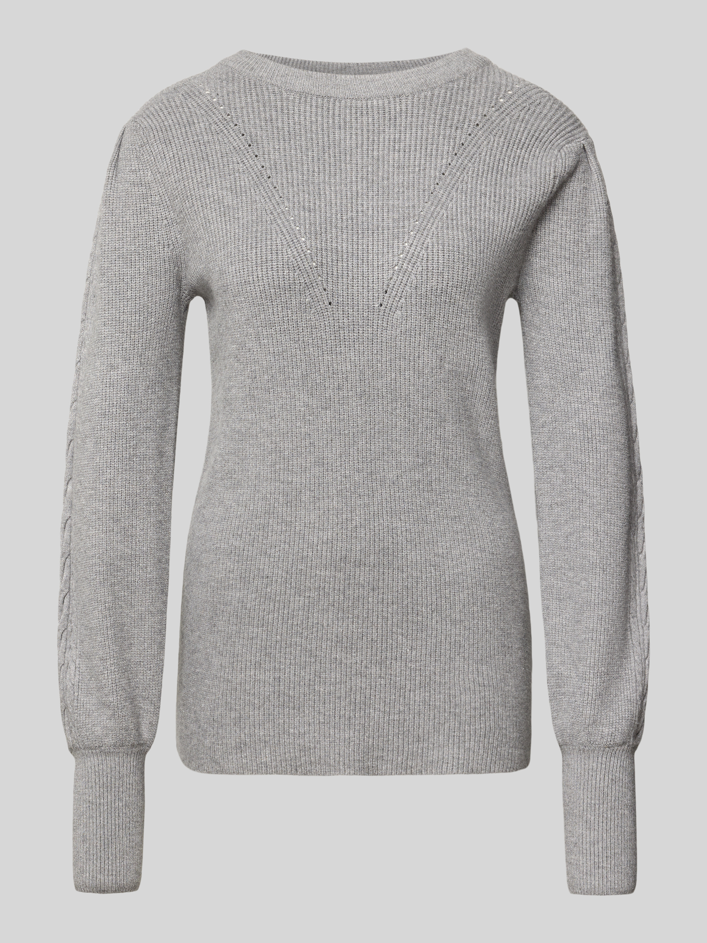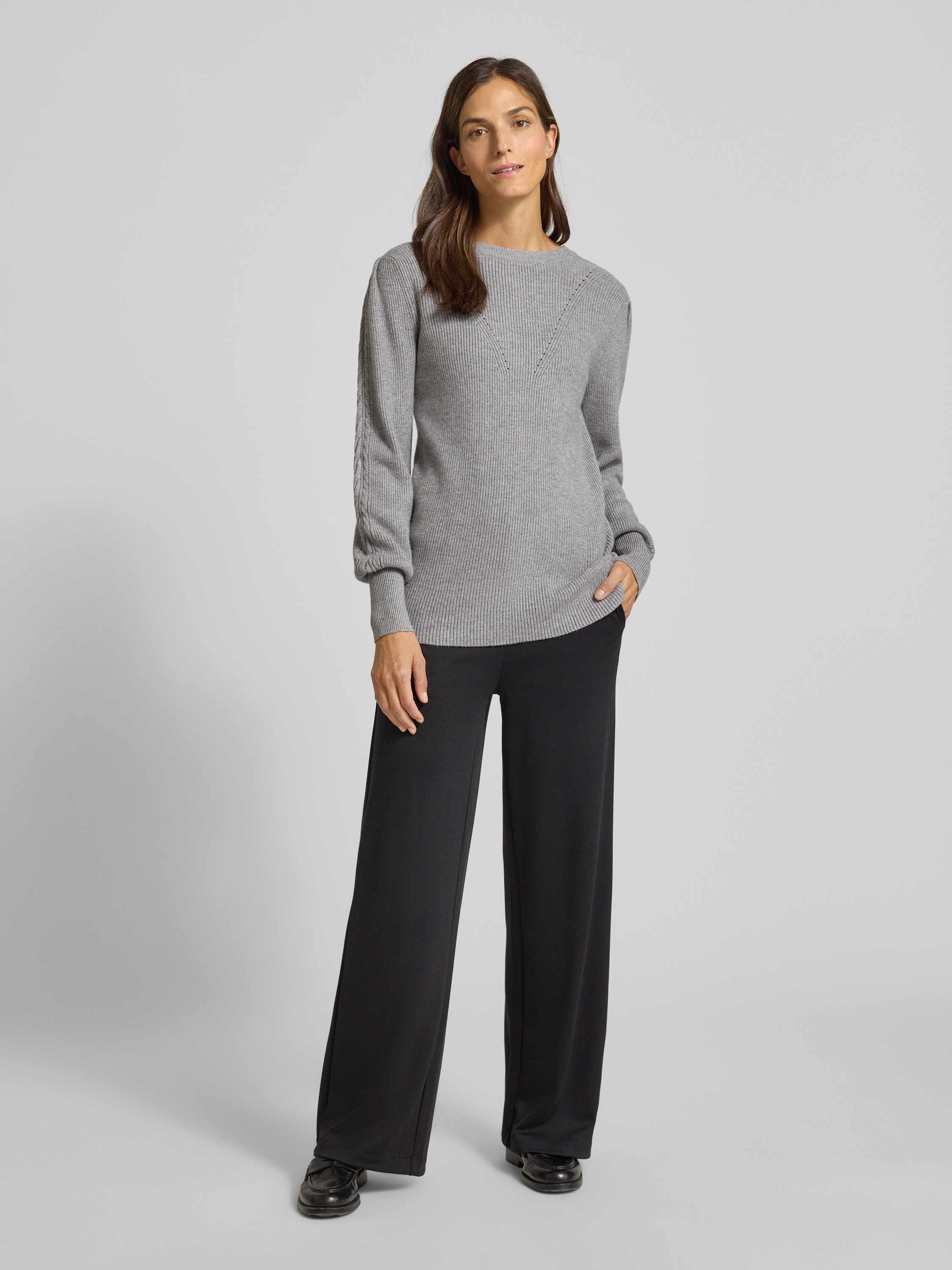 SoyaconceptStrickpullover mit gerippten Abschlüssen Modell 'KANITA' in mittelgrau melange