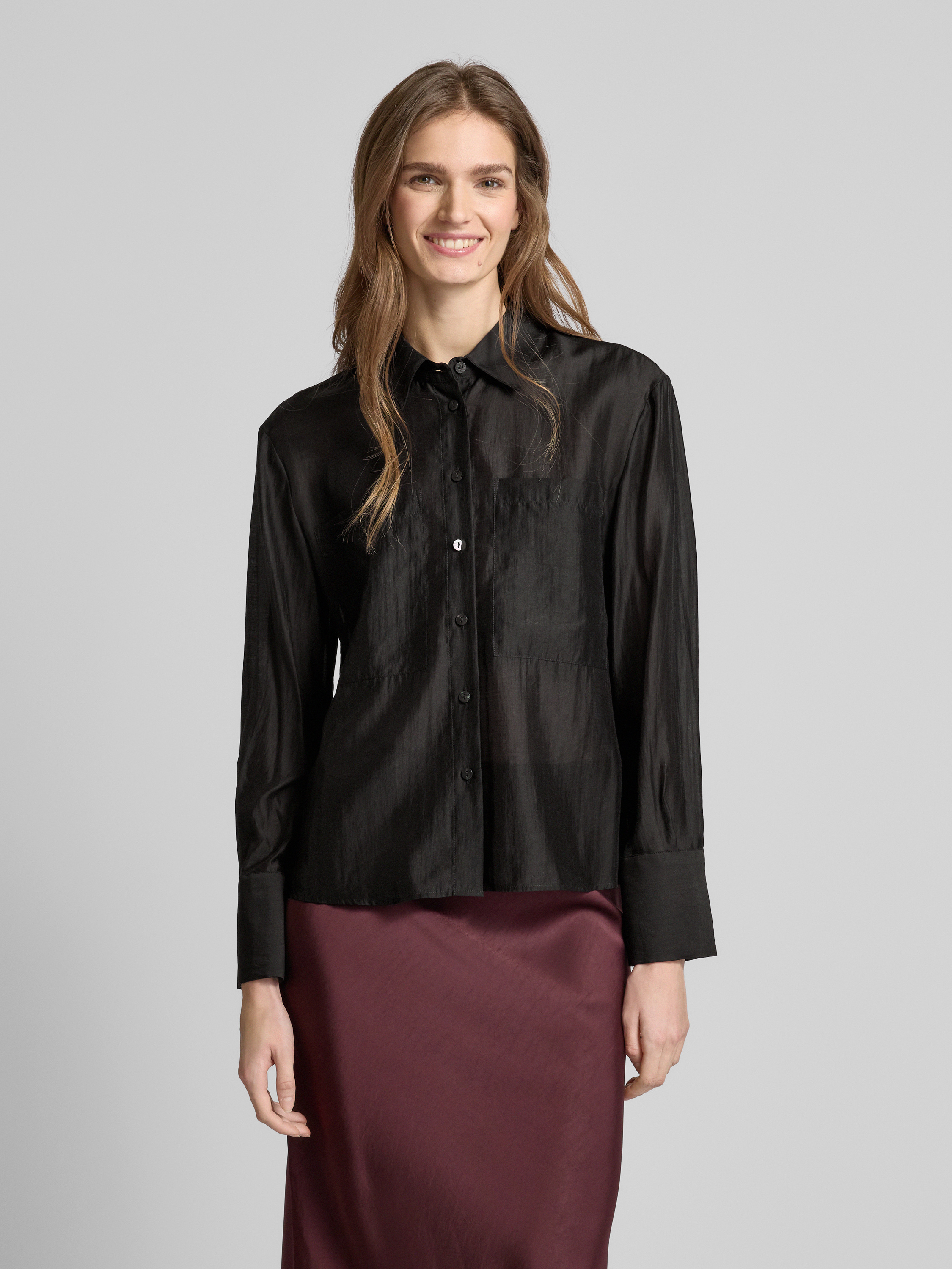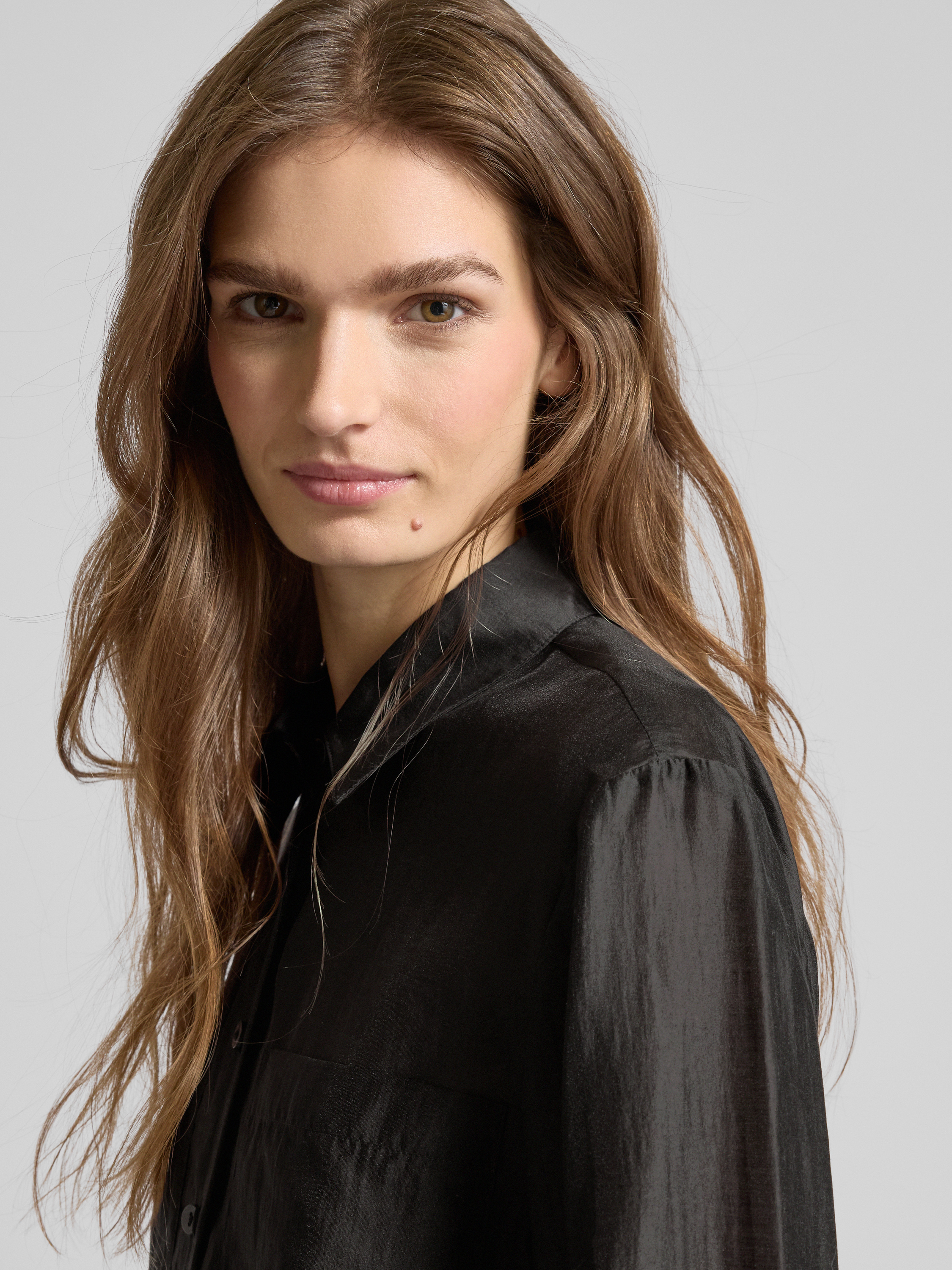 Die Hemdbluse von Stefanel vereint einen lockeren Schnitt mit einem angenehmen Lyocell-Mix, wodurch sie sich besonders komfortabel trägt. Der klassische Hemdblusenkragen und die praktischen Brusttaschen ergänzen das Design auf harmonische Weise. Sie eignet sich ideal für einen entspannten, dennoch stilvollen Alltagslook.