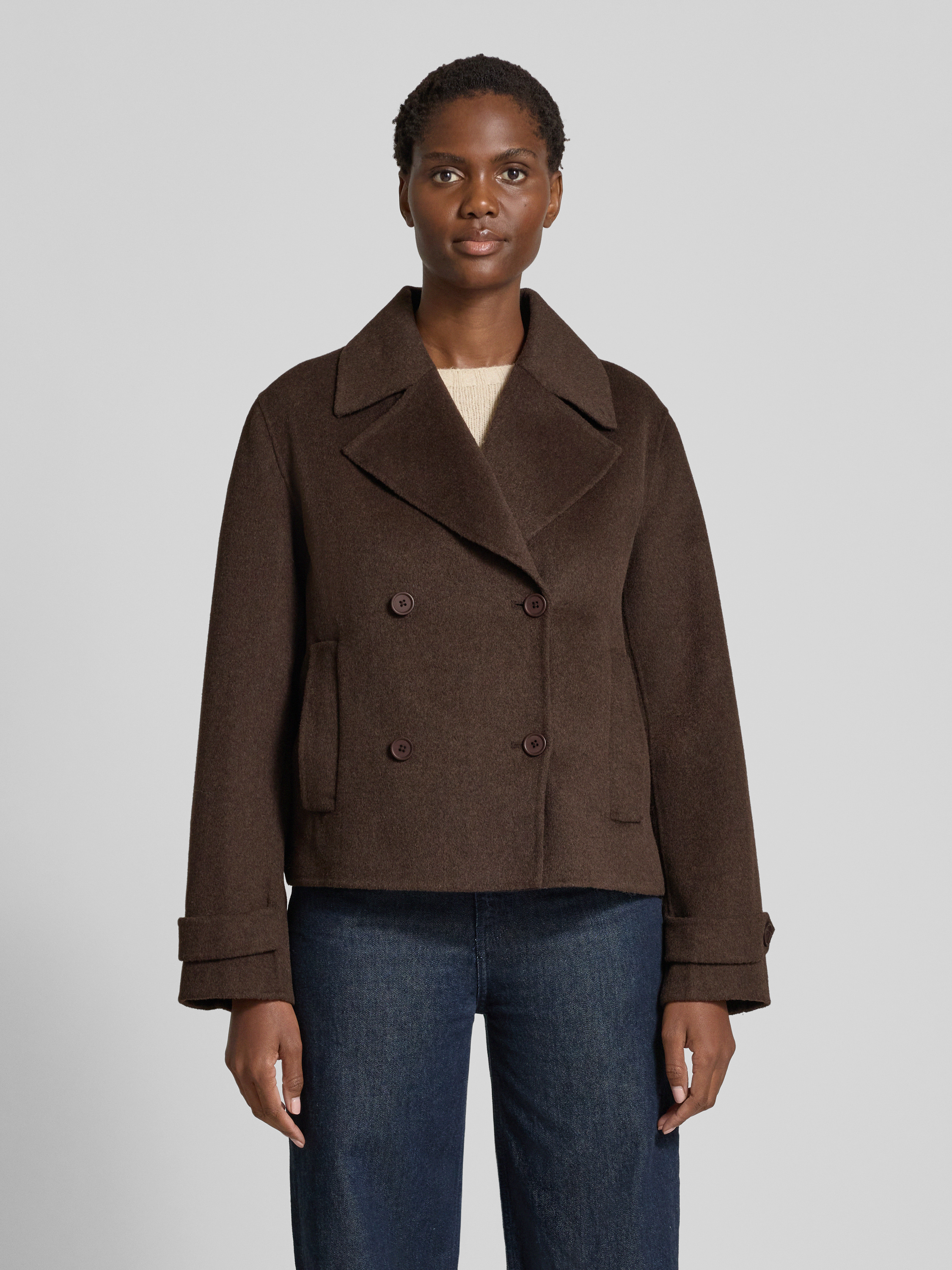 StefanelKurzmantel aus Lanawoll-Mix Modell 'PEACOT' in dunkelbraun