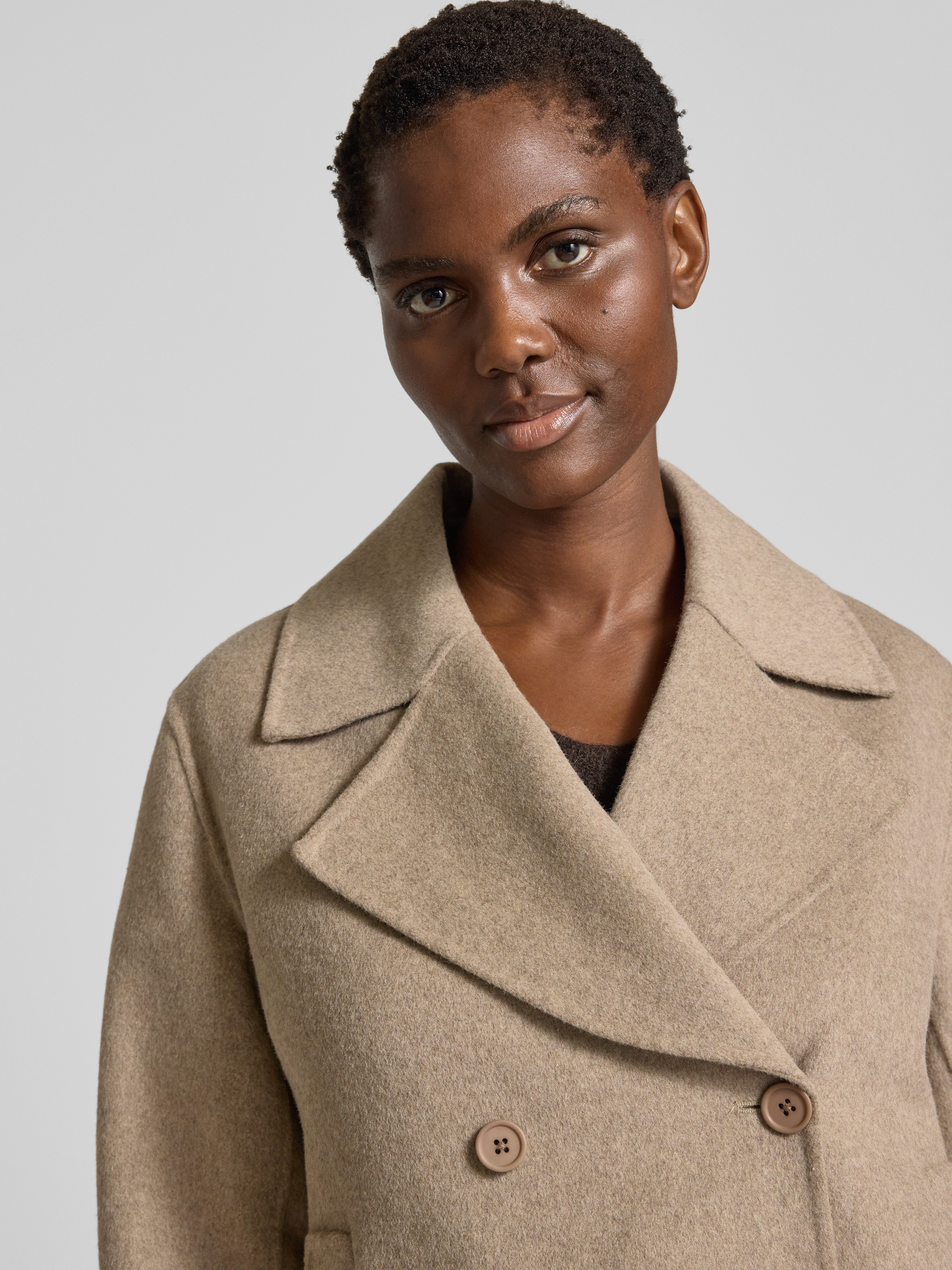 Der Kurzmantel von Stefanel, Modell 'PEACOT', setzt auf eine Kombination aus Lanawoll-Mix und Viskose-Anteil, wodurch sich ein angenehmes Tragegefühl ergibt. Durch den Regular Fit sitzt der Mantel locker, während Reverskragen und Ärmelriegel dem Design einen klassischen Rahmen geben. Eingrifftaschen erweisen sich dabei als praktisch im Alltag.