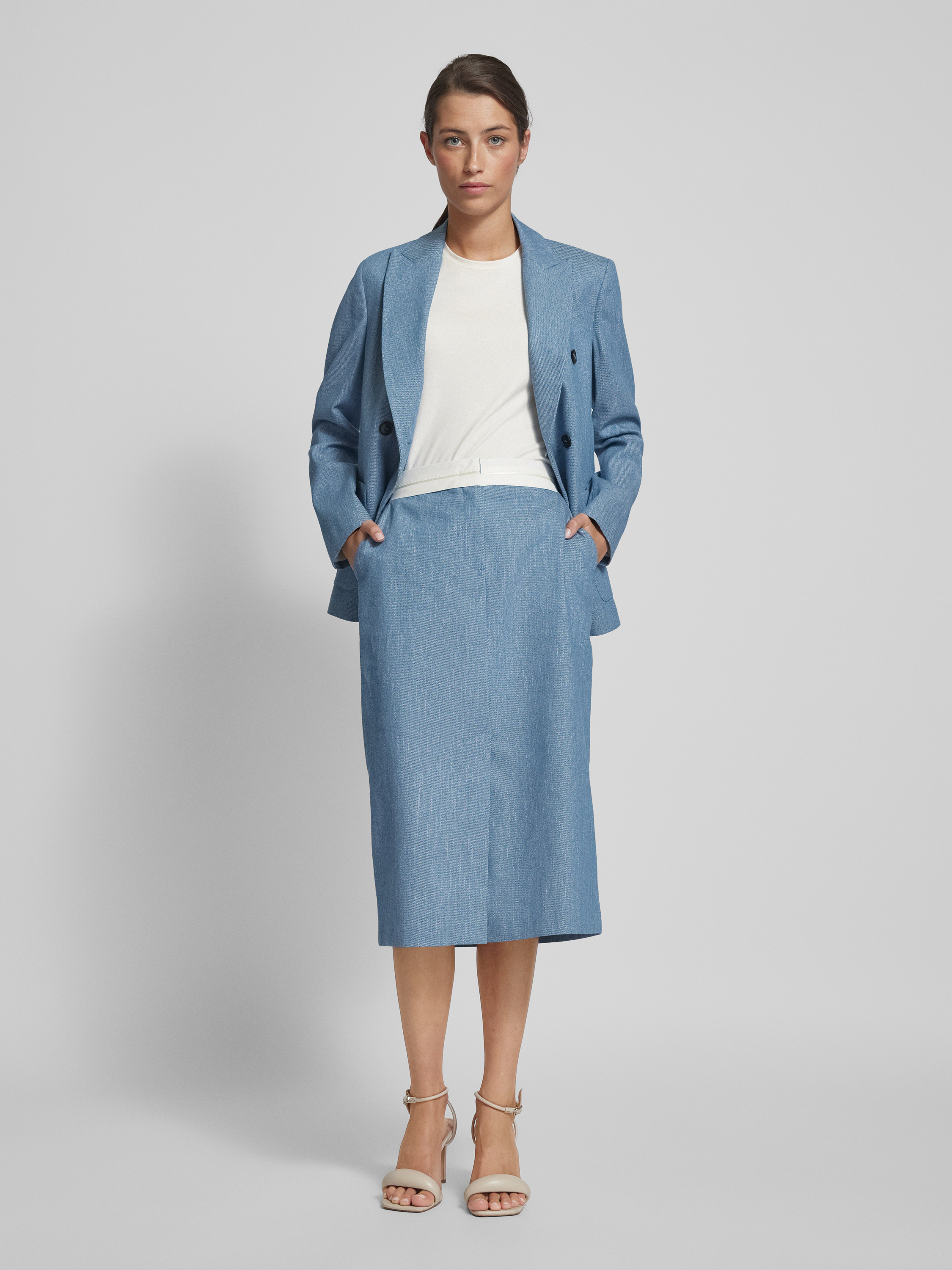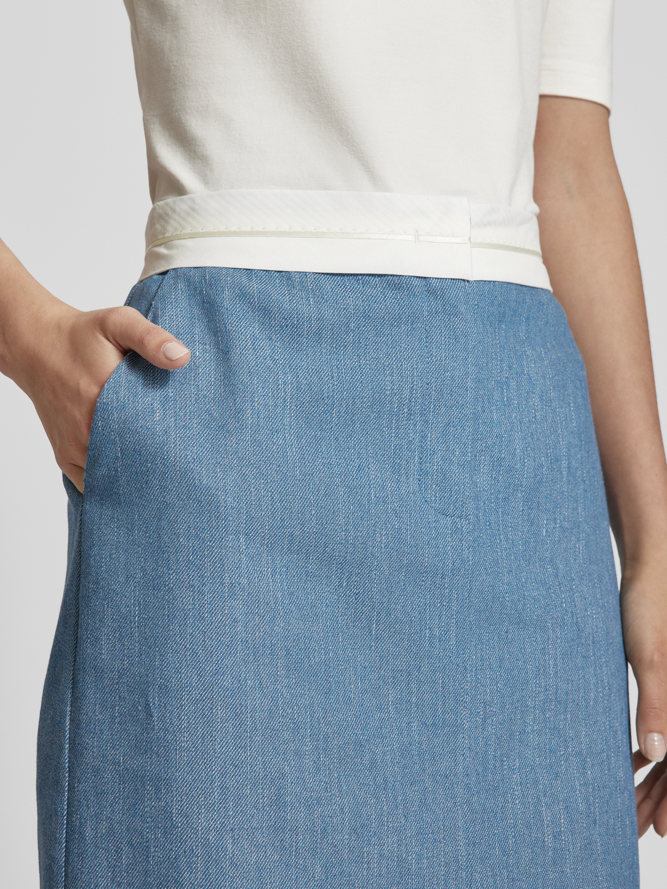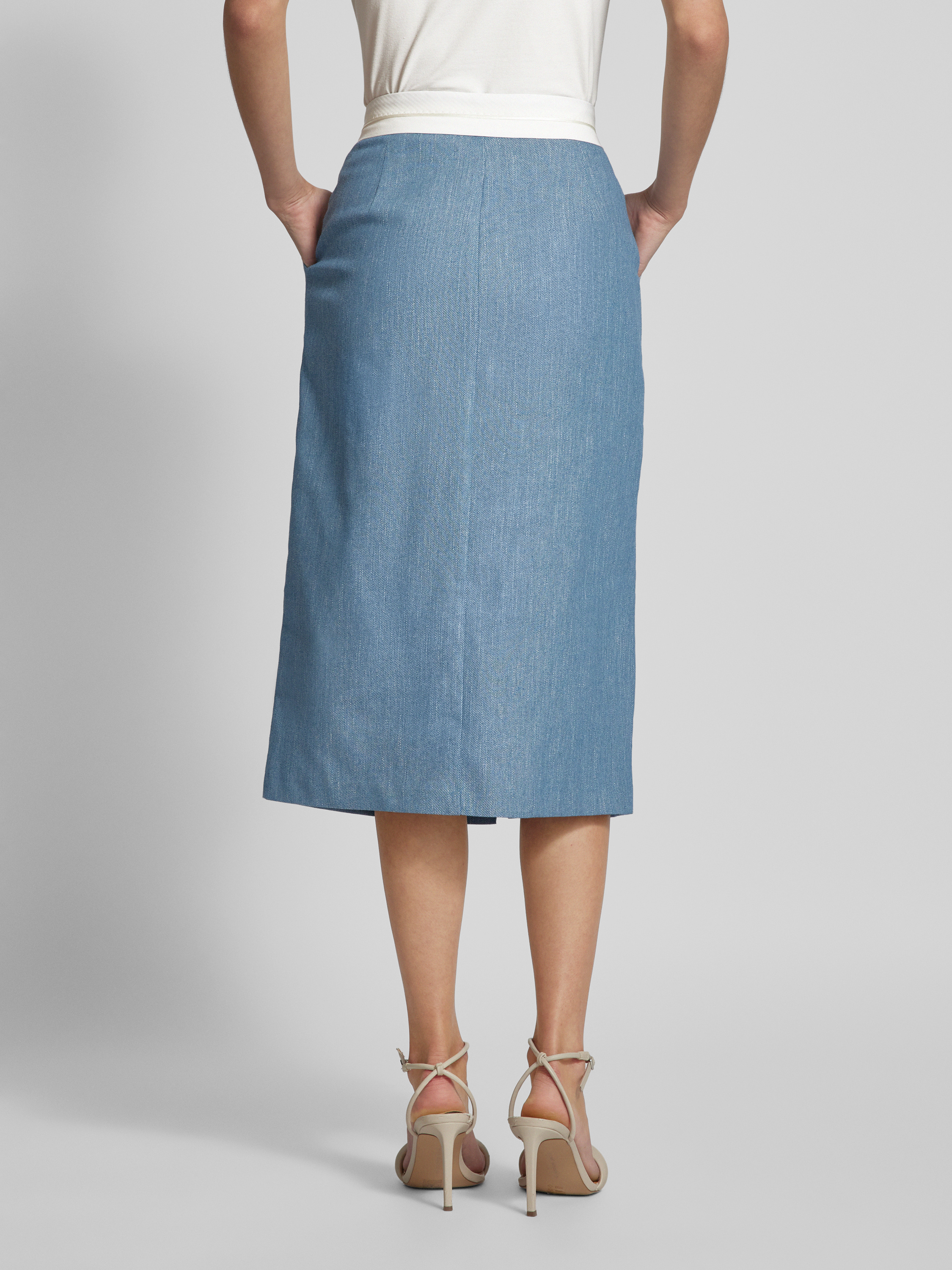 Der Midirock von Stefanel vereint den lässigen Charme einer Denim-Optik mit der eleganten Länge eines Midi-Rocks. Durch den geraden Schnitt und den Gehschlitz bietet er Bewegungsfreiheit und Komfort. Der Baumwoll-Mix mit Viskose-Anteil sorgt für ein angenehmes Tragegefühl.