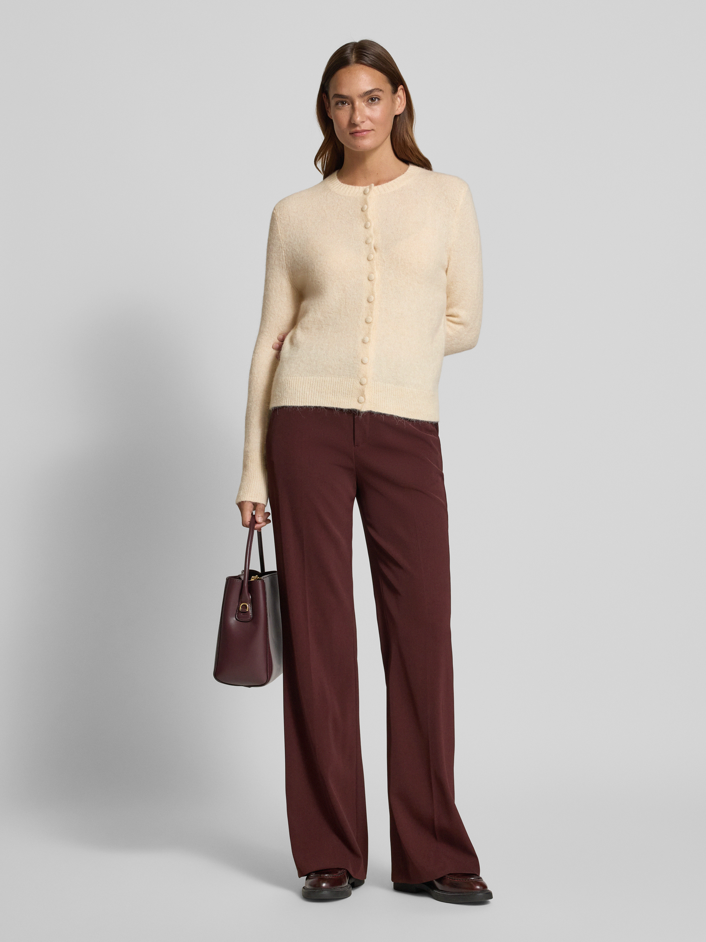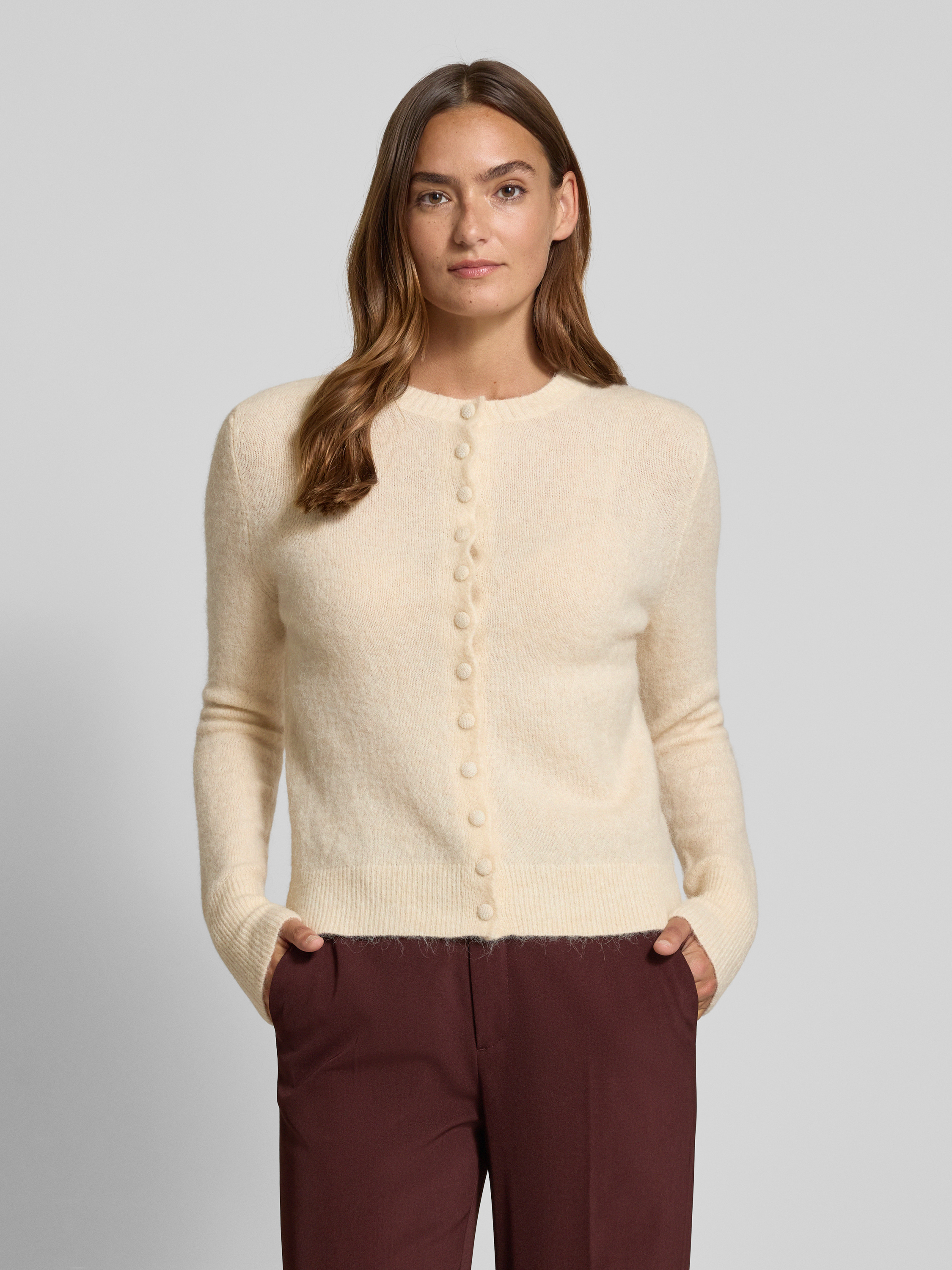 Die Damen Strickjacke von Stefanel verbindet einen klassischen Rundhalsausschnitt mit einem angenehm regulären Schnitt, wodurch sie vielseitig einsetzbar ist. Dank des Woll-Mix mit Alpaka-Anteil erhält man ein weiches Tragegefühl, das zugleich wärmend wirkt. Dezente Details wie die Knopfleiste runden den zeitlosen Look ab.