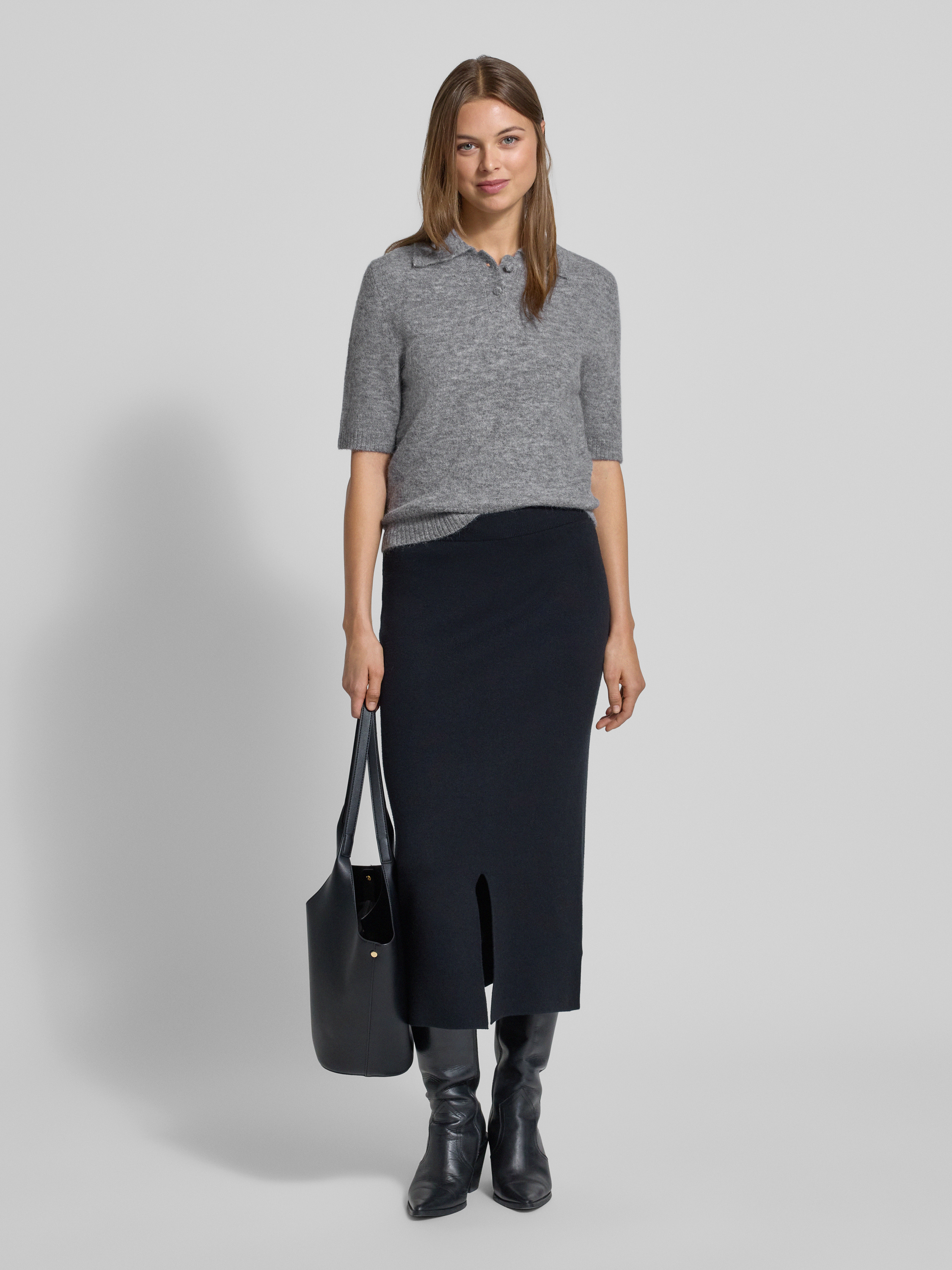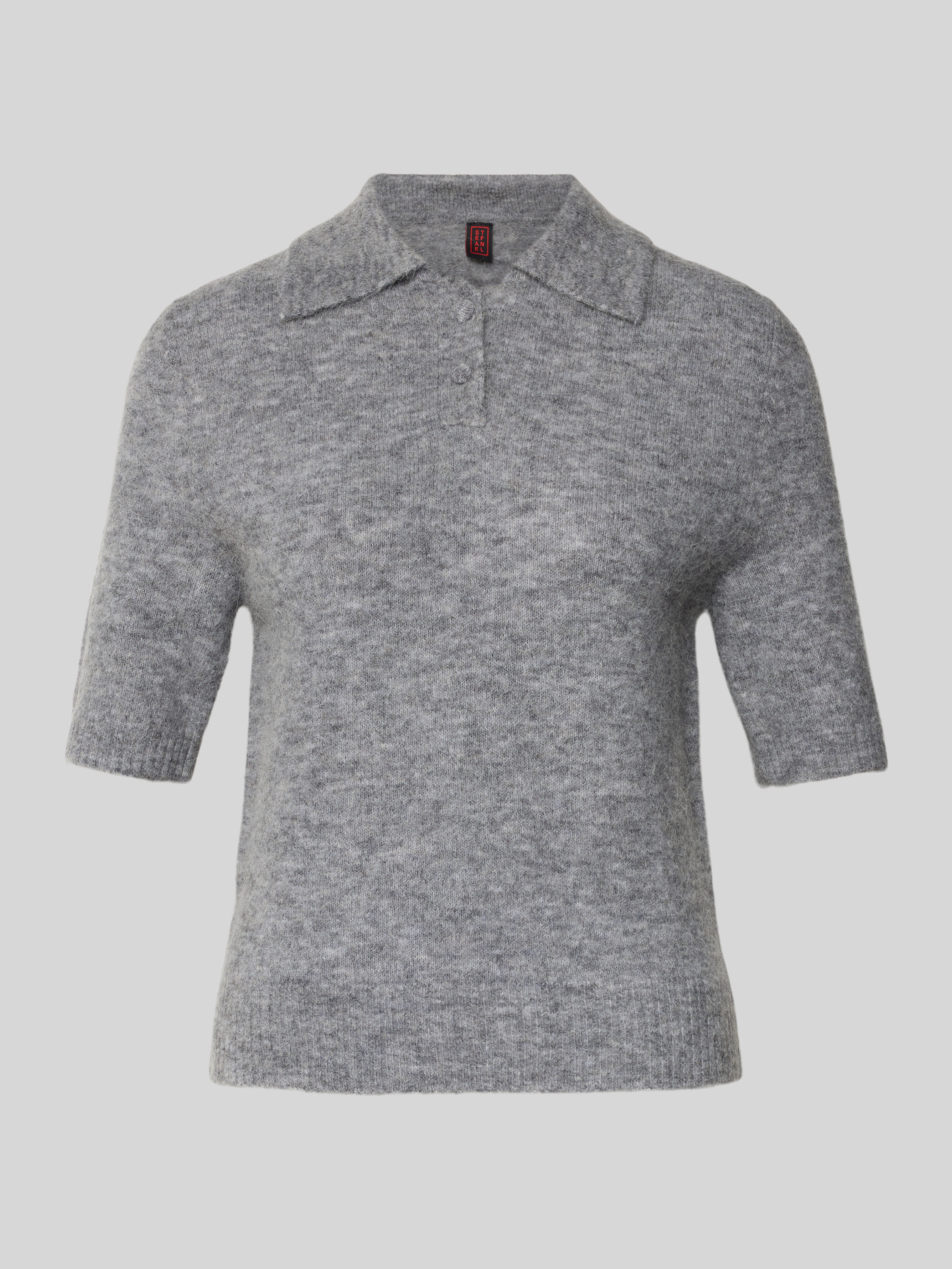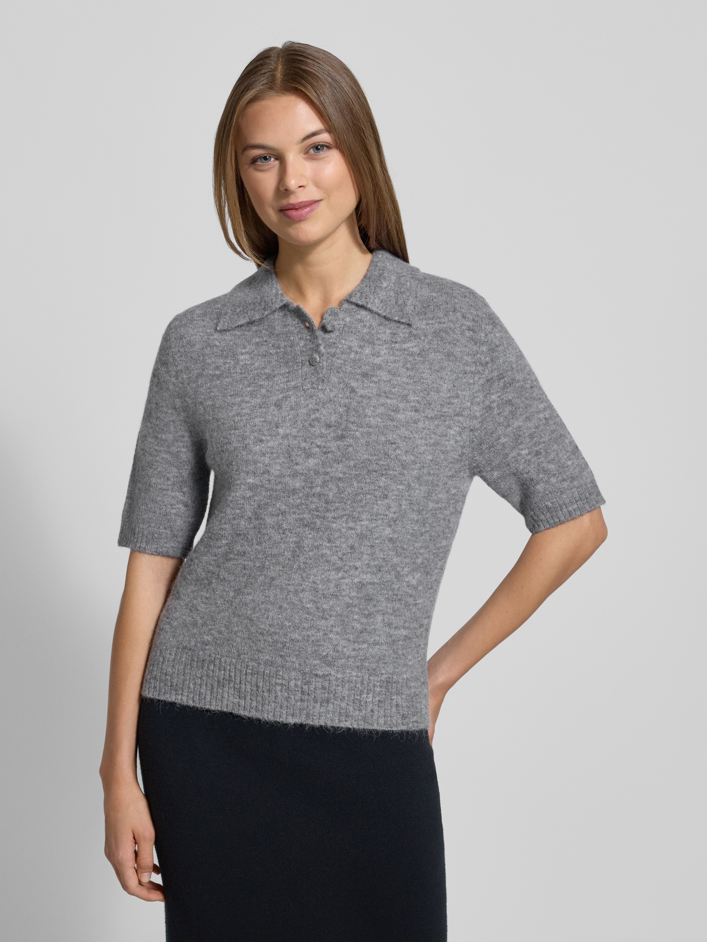 StefanelStrickpullover aus Woll-Mix mit Polokragen und 1/2-Arm in mittelgrau melange