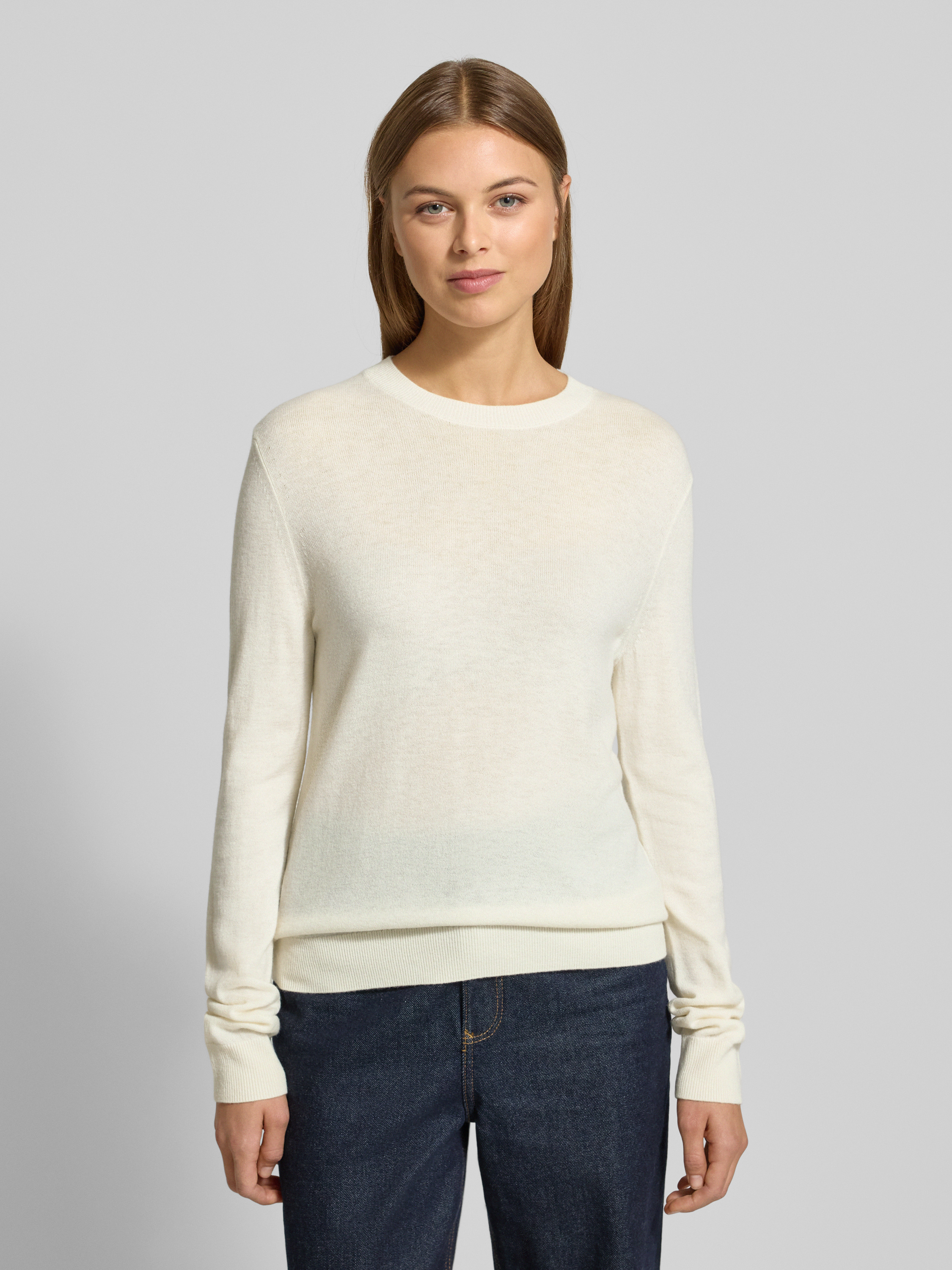 StefanelStrickpullover aus Wolle mit Rundhalsausschnitt in offwhite