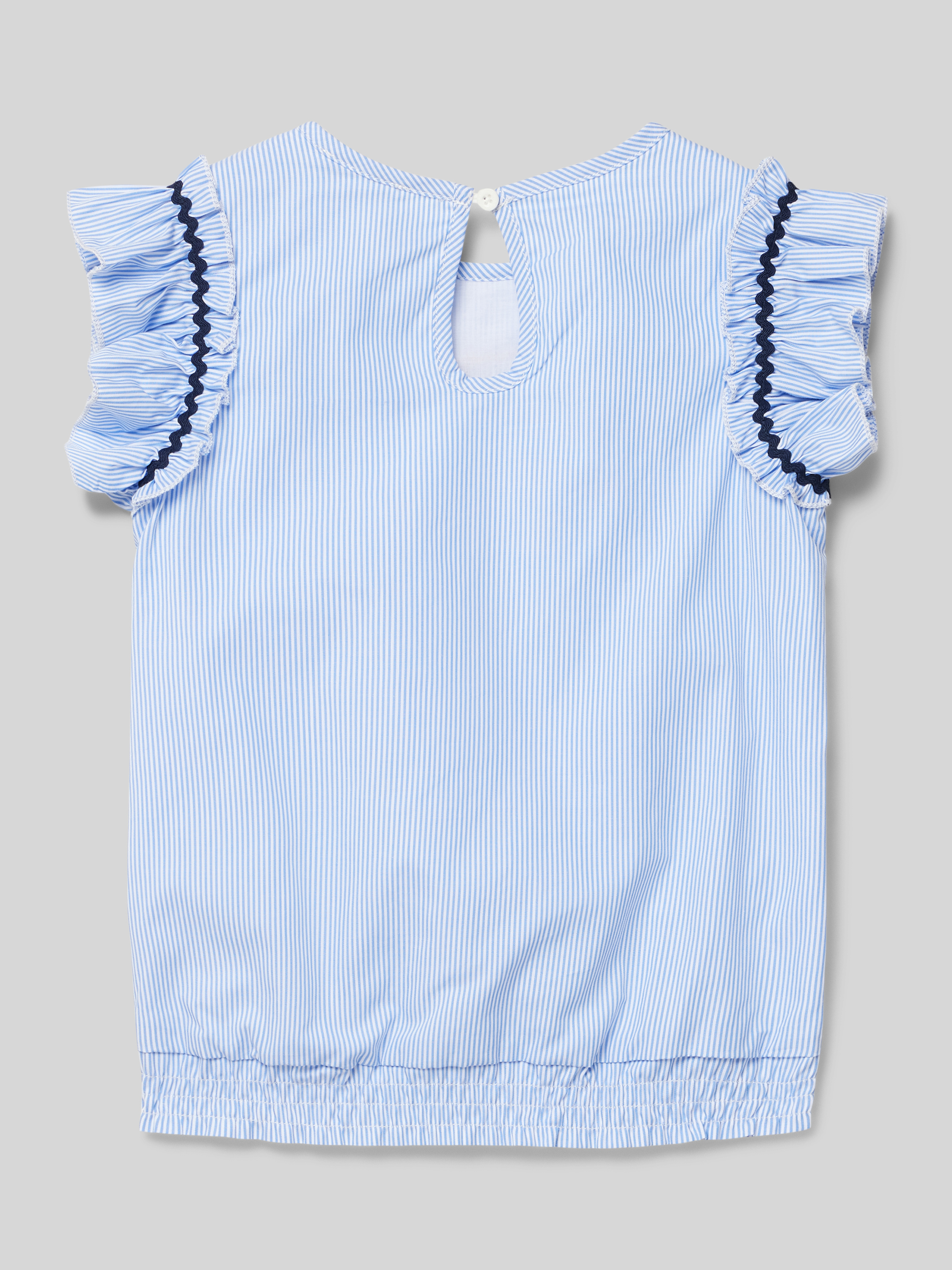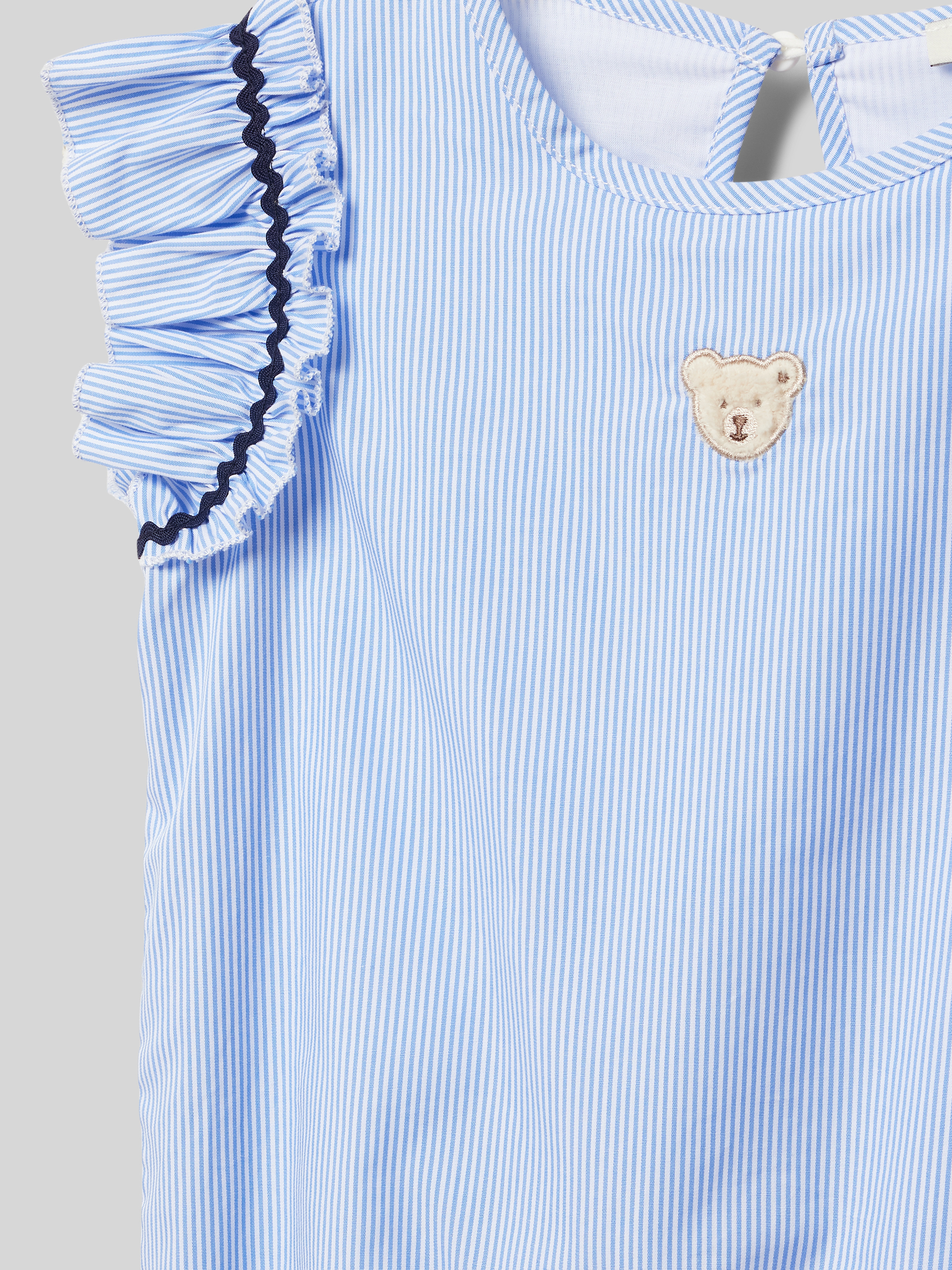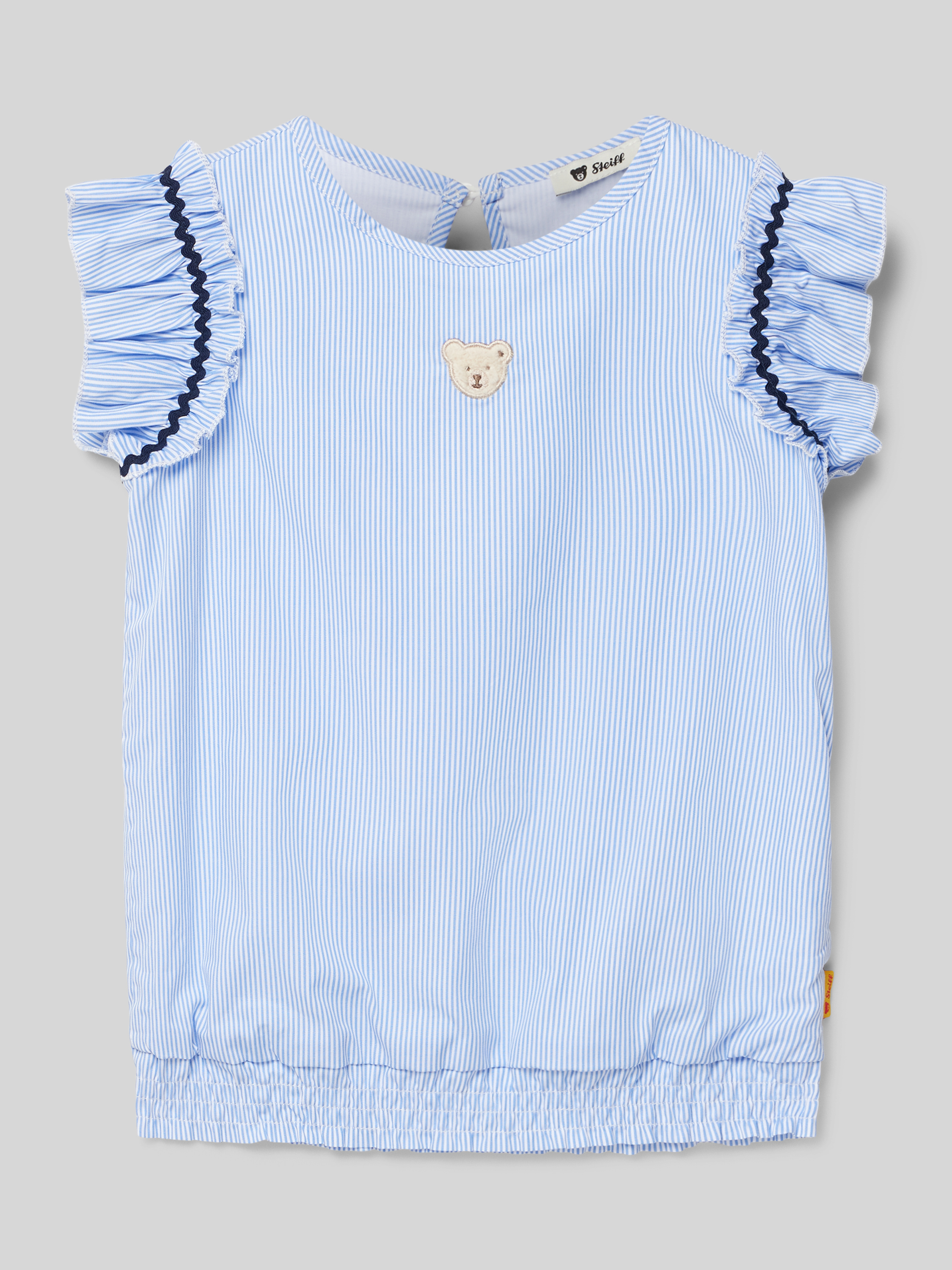 Das Blusentop von Steiff aus reiner Baumwolle bietet durch seinen geraden Schnitt und den Rundhalsausschnitt einen angenehmen Tragekomfort. Die Rüschen und das Motiv-Patch verleihen dem Kleidungsstück eine spielerische Note, während das Label-Detail dezent Akzente setzt.