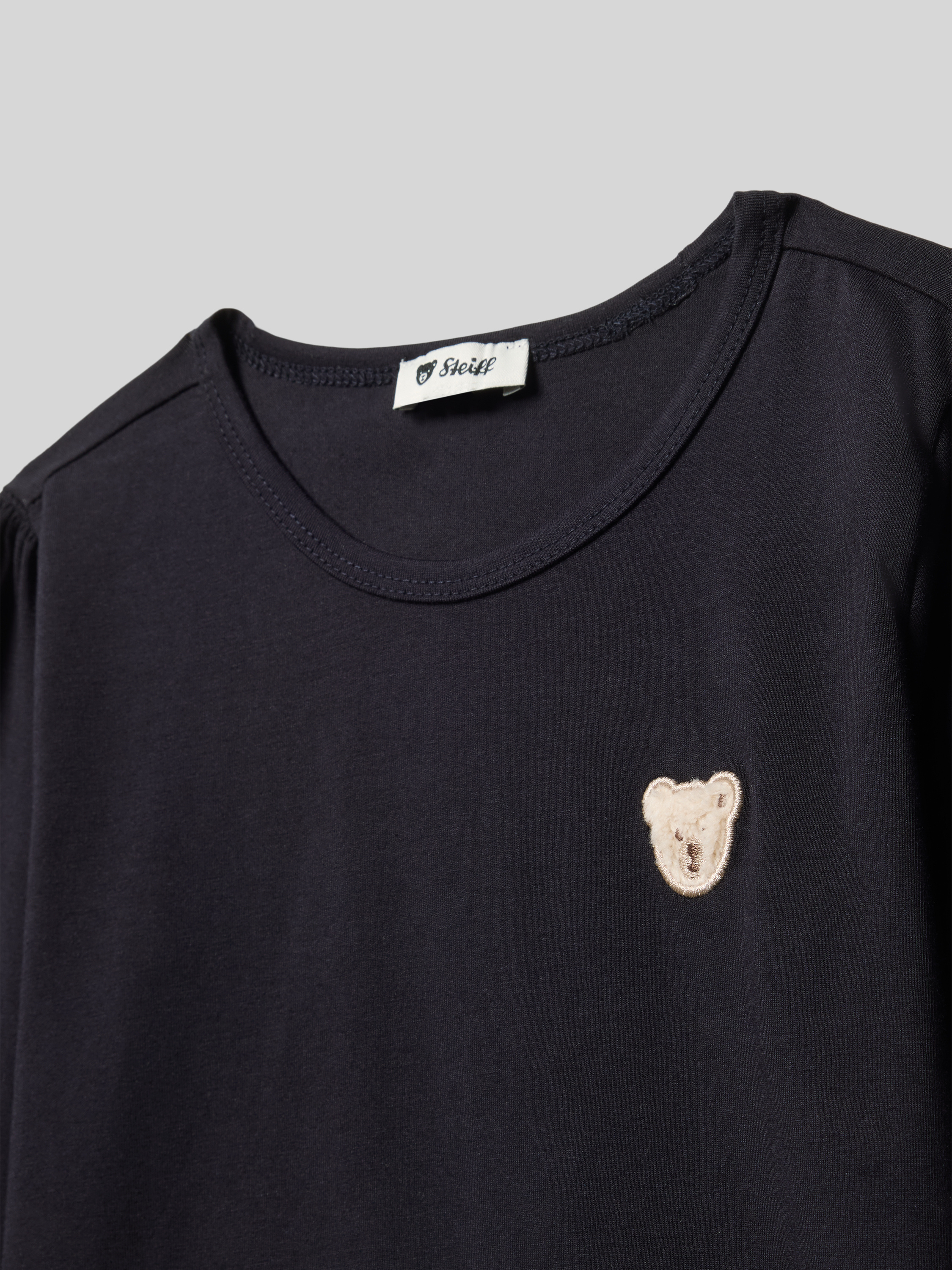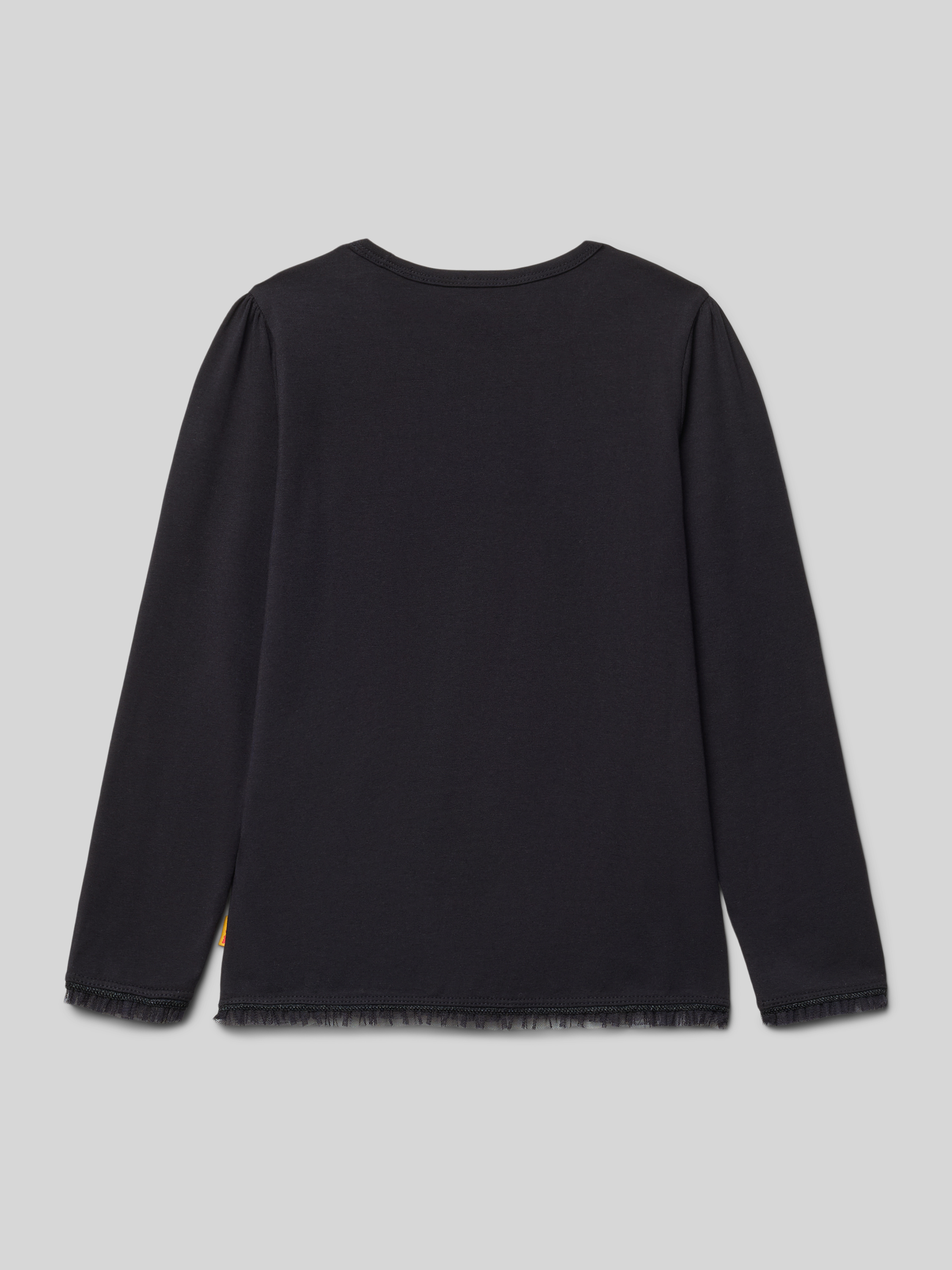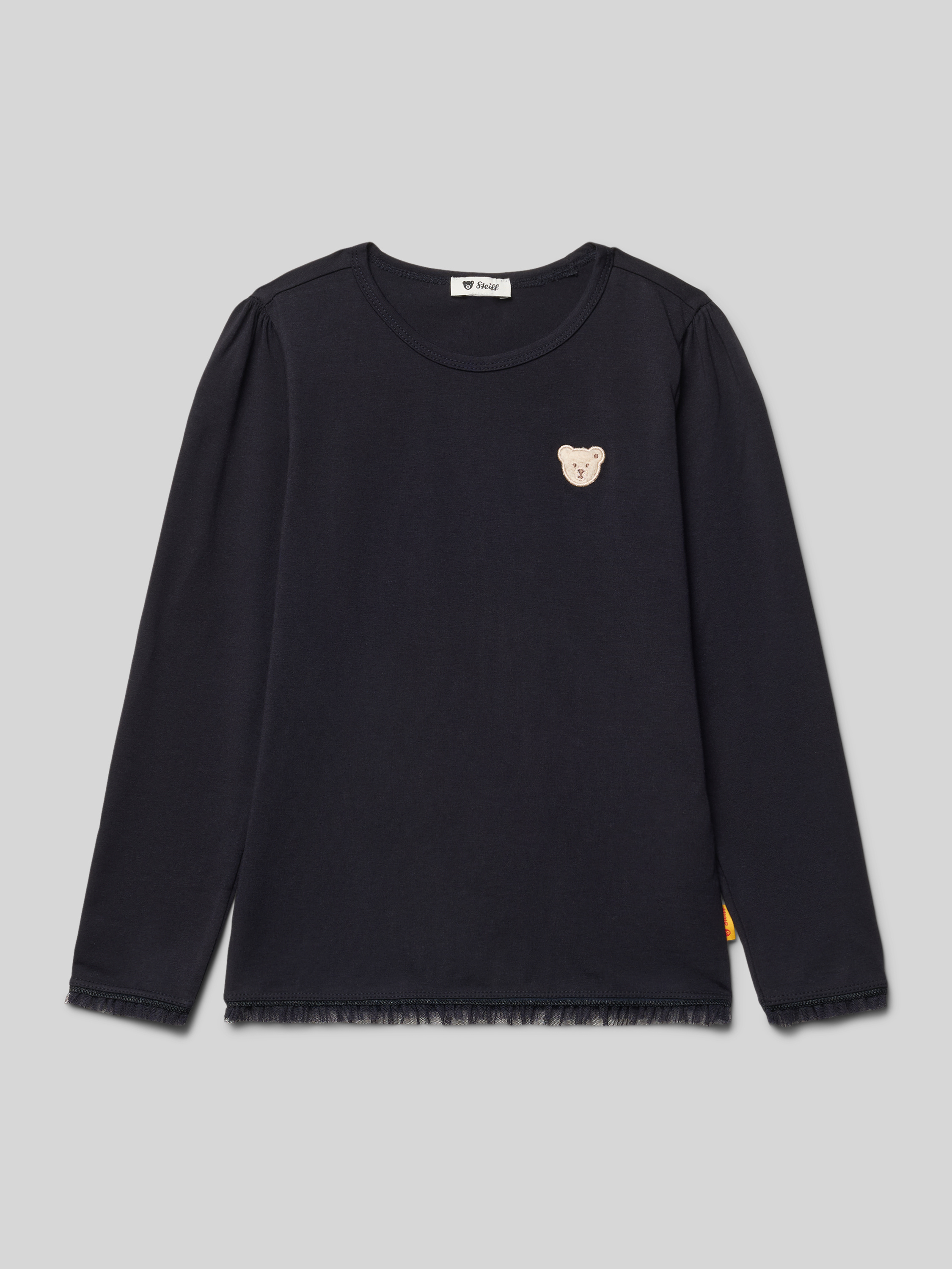 Das Kinder Longsleeve von Steiff im Regular-Fit sorgt durch seinen angenehmen Baumwoll-Mix für ein weiches Tragegefühl im Alltag. Dezentes Logo-Stitching und ein Rundhalsausschnitt treffen auf verspielte Abschlüsse mit Rüschenbesatz. So eignet sich das Oberteil für verschiedenste Anlässe und Bewegungen.