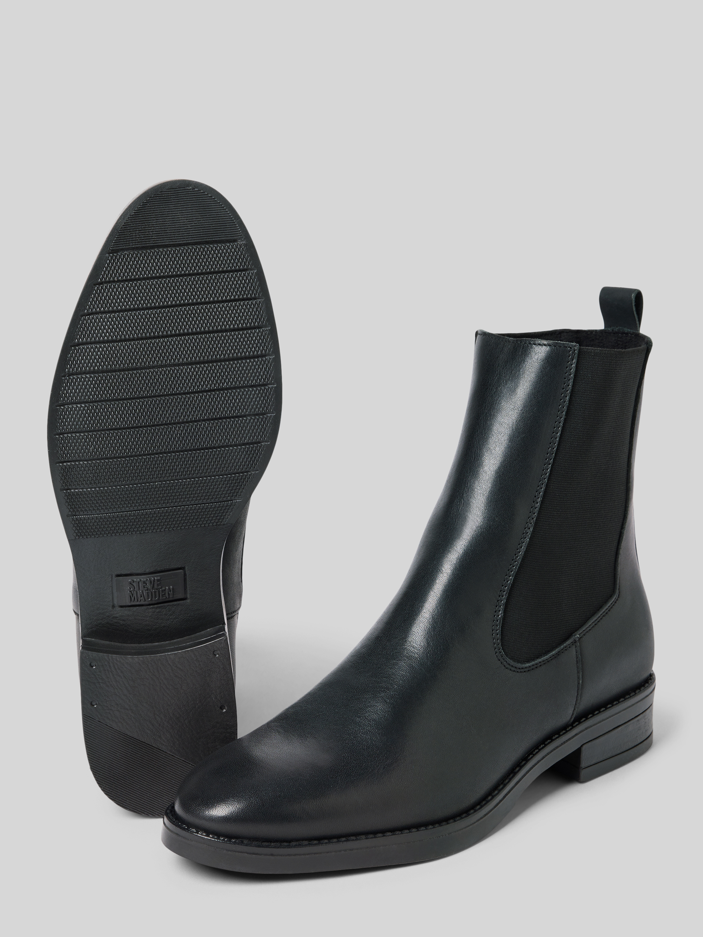 Die Chelsea Boots Valera von Steve Madden zeichnen sich durch ihre abgerundete Form aus, wodurch sie angenehm am Fuß liegen. Durch die glatte Sohle entsteht ein ruhiges Laufgefühl, während die dezente Logo-Applikation dem schlichten Design eine besondere Note verleiht.