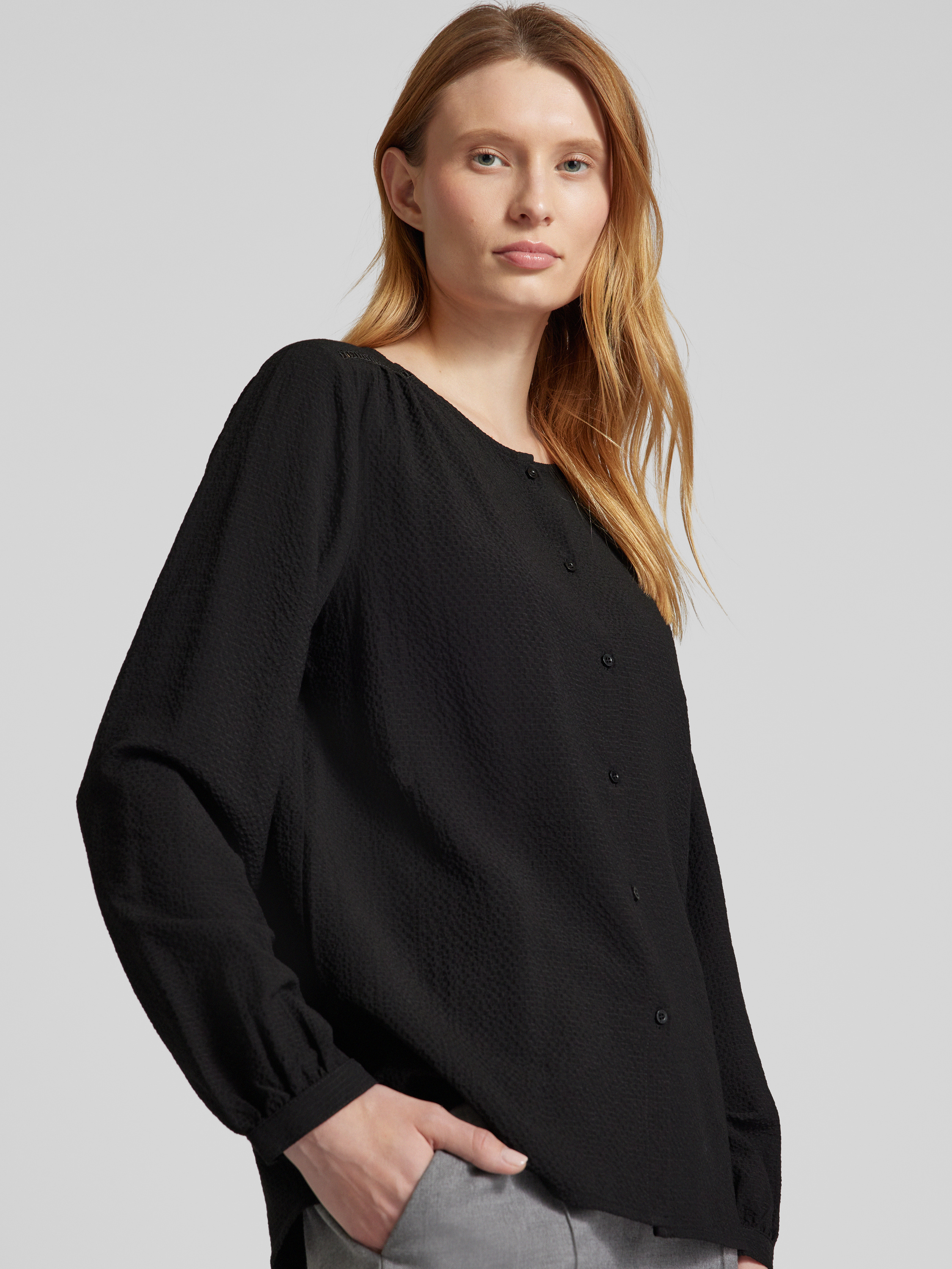 Die Hemdbluse von Street One kombiniert einen weichen Material-Mix mit Viskose-Anteil und einen lockeren Schnitt. Der Rundhalsausschnitt ergänzt das Design, während feine Raffungen subtile Akzente setzen. Diese Bluse eignet sich ideal für entspannte Tage und sorgt für angenehmen Tragekomfort.