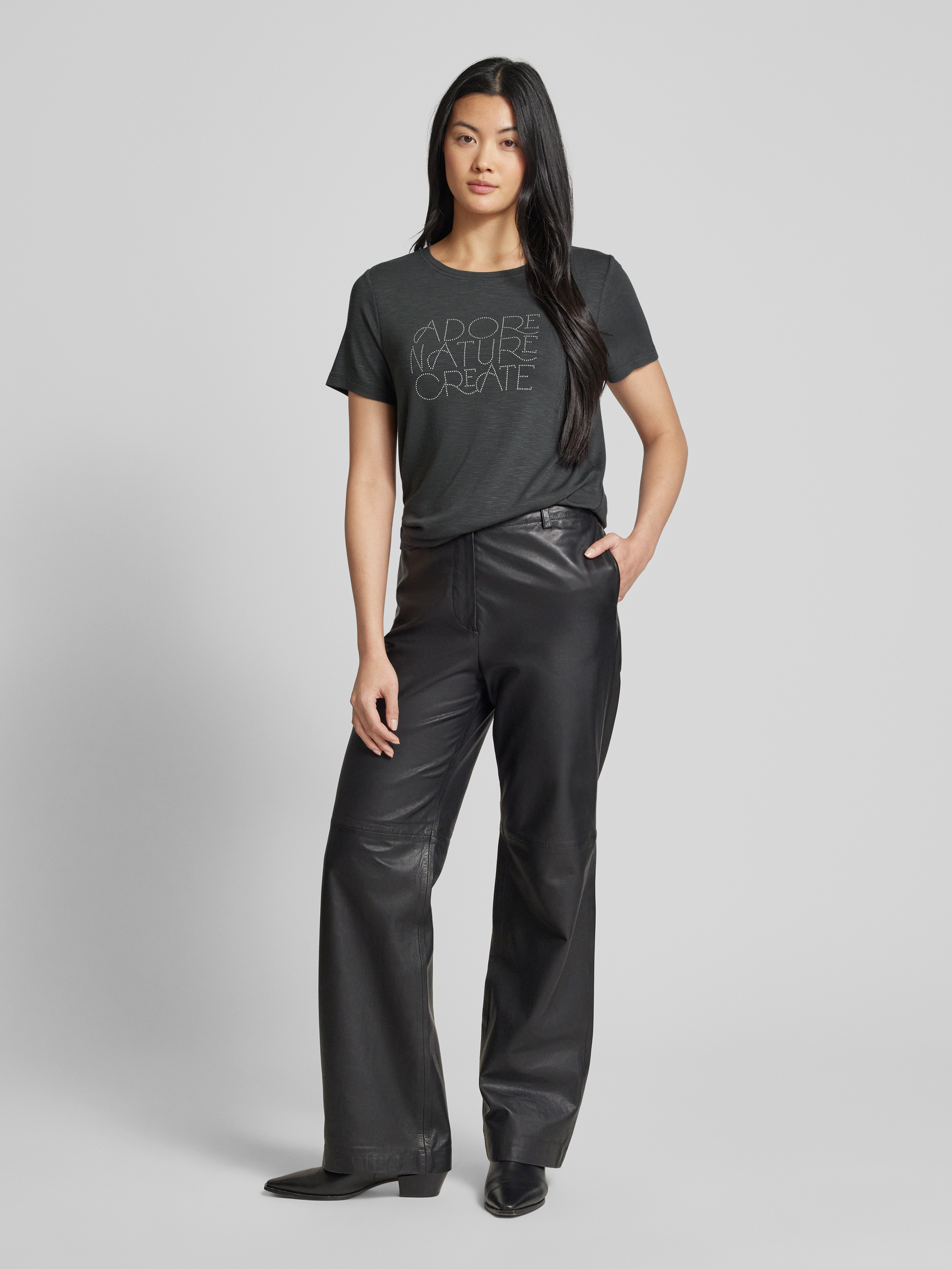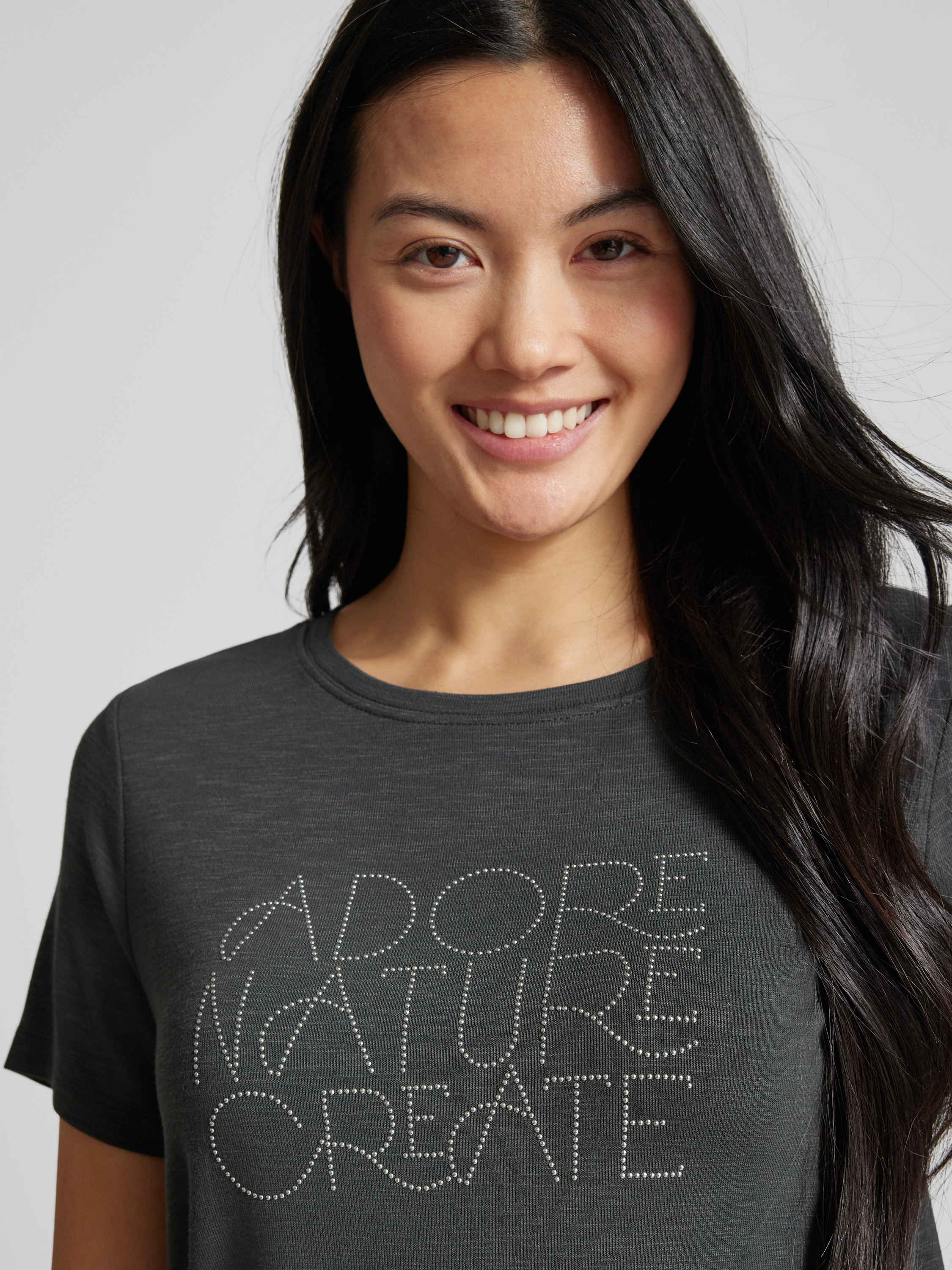 Street OneT-Shirt mit Ziersteinbesatz in anthrazit