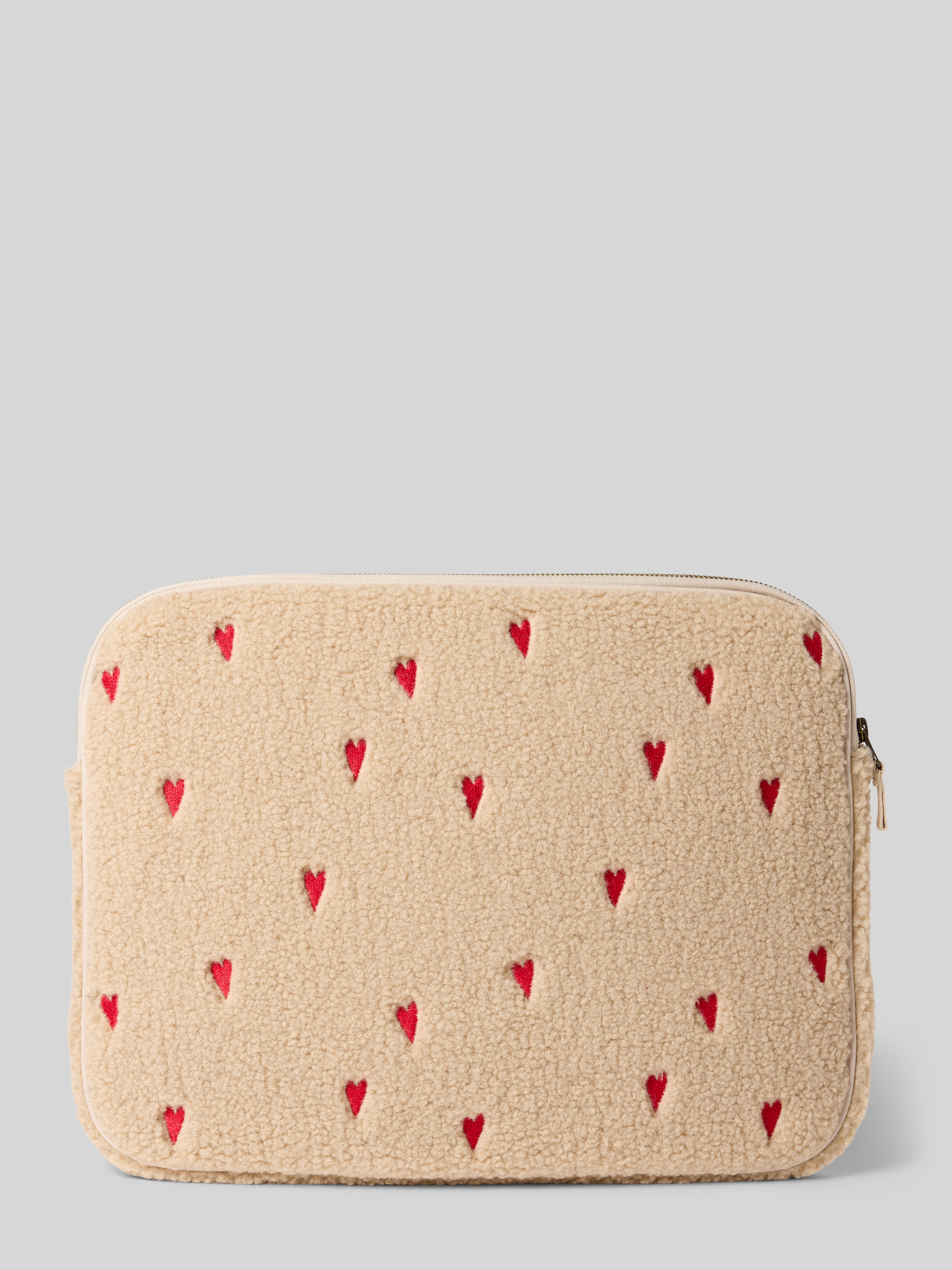 STUDIO NOOSLaptoptasche aus Teddyfell mit Stitchings und Label-Detail in beige