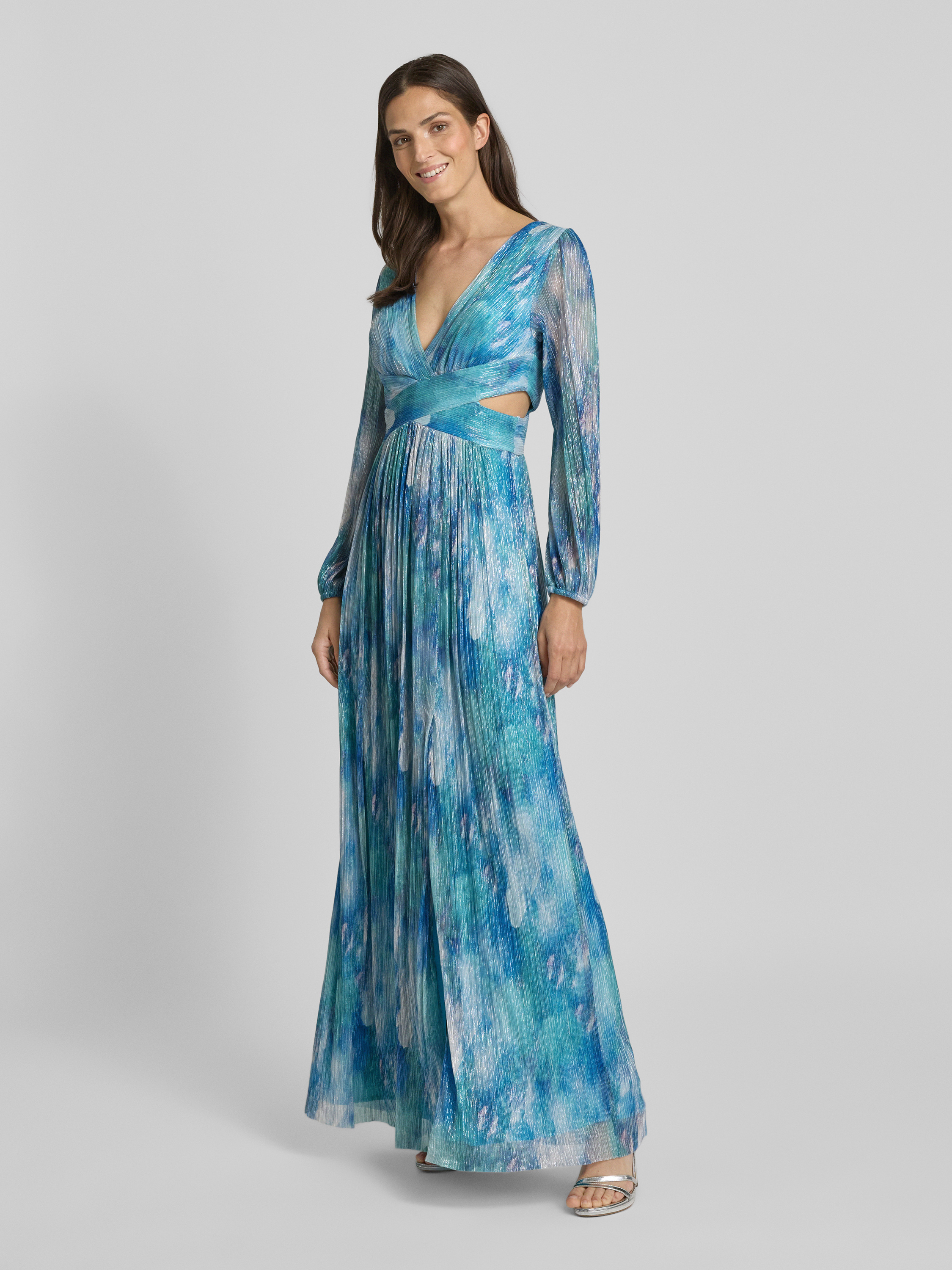 Das Swing Abendkleid aus leichtem Chiffon schmiegt sich elegant an die Silhouette und schafft durch seine körpernahe Passform eine feminine Erscheinung. Das Effektgarn verleiht dem Maxikleid eine subtile Raffinesse, während der V-Ausschnitt und die Taillenpasse stilvolle Akzente setzen.