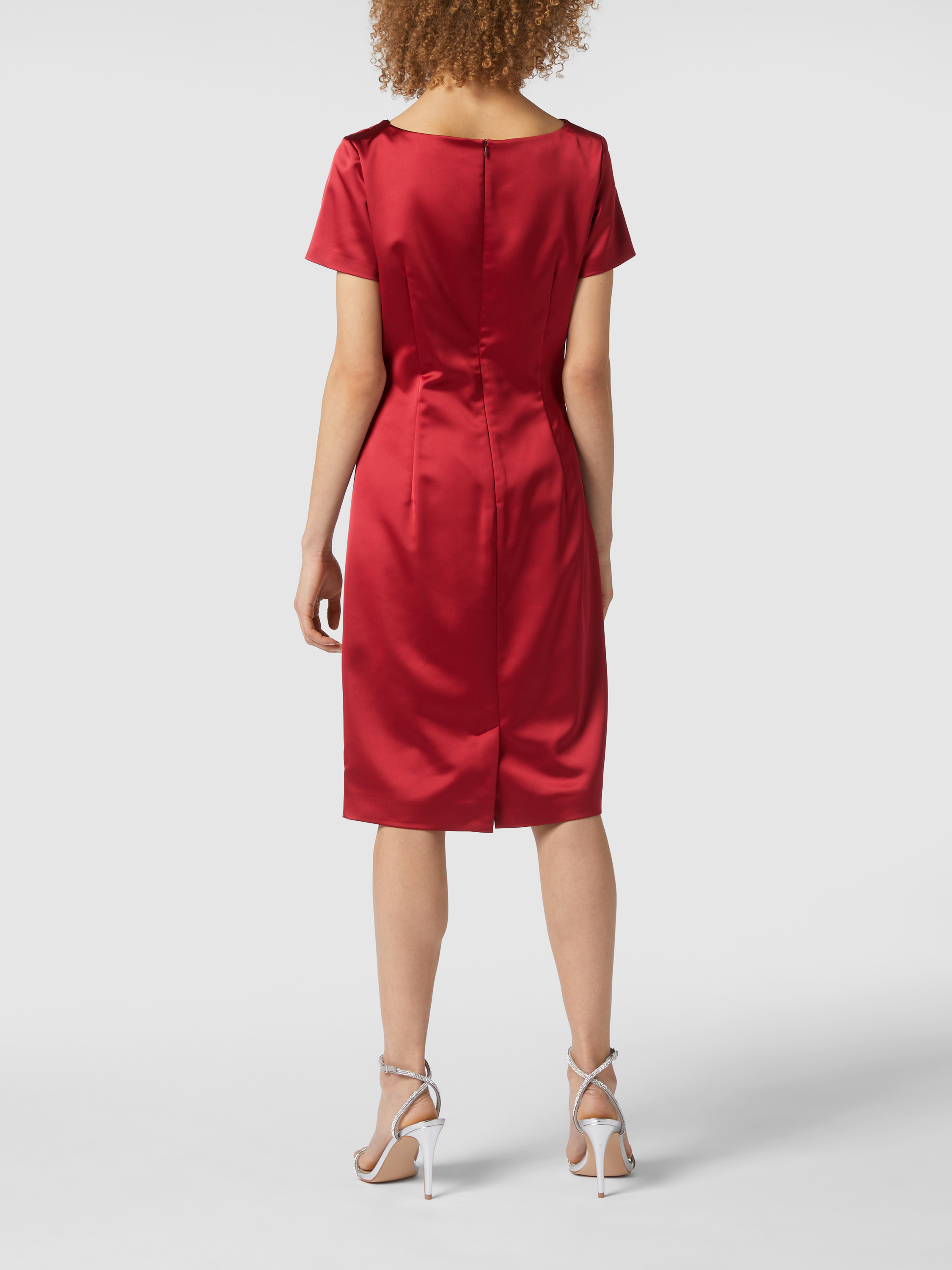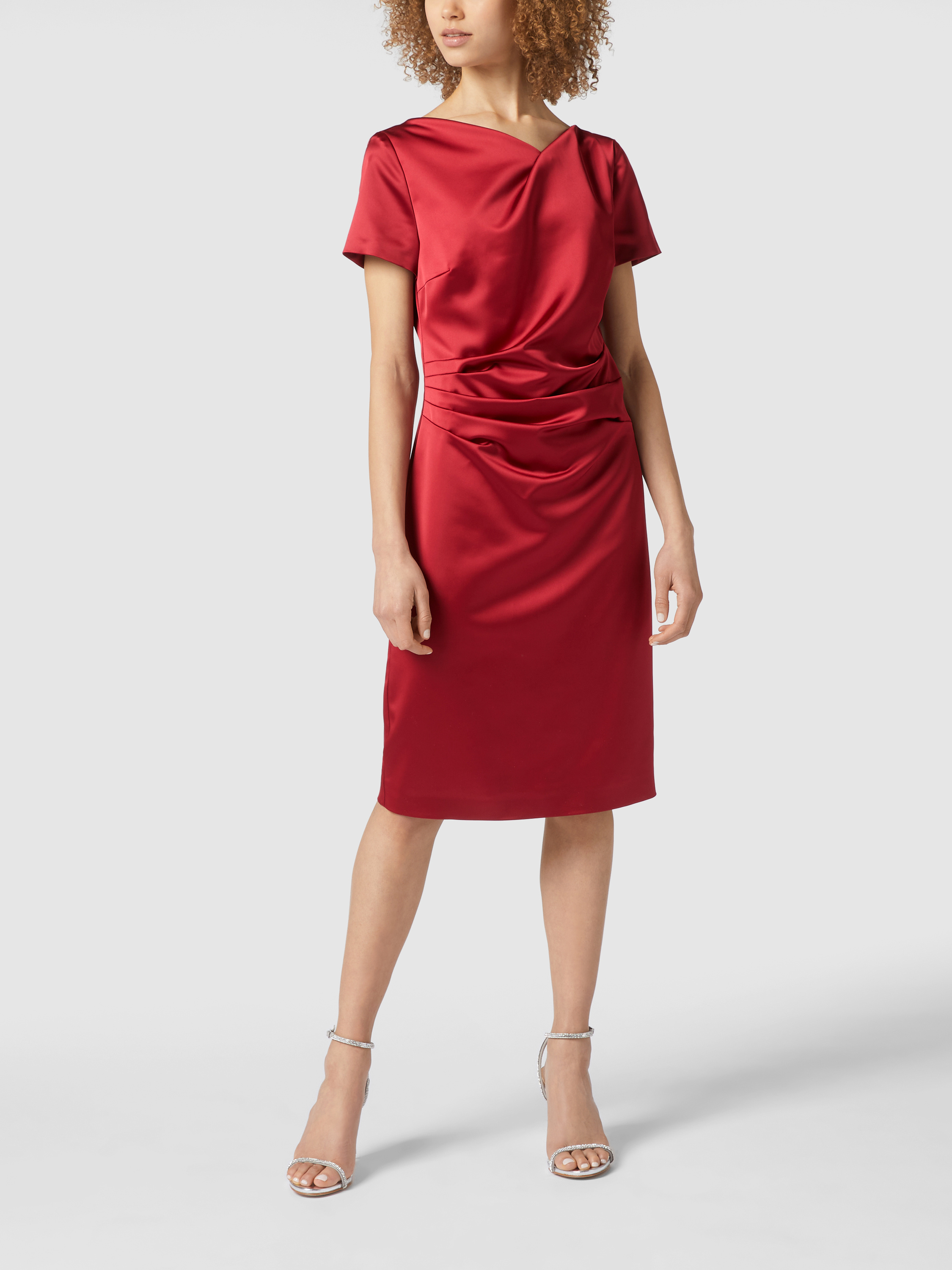 Das SWING Cocktailkleid besticht durch seine edle Satin-Optik und den femininen, taillierten Schnitt. Der V-Ausschnitt in Wickel-Optik und die dezente Drapierung an der Taille verleihen eine elegante Silhouette. Mit kurzen Ärmeln und Gehschlitz eignet sich das Kleid für besondere Anlässe.