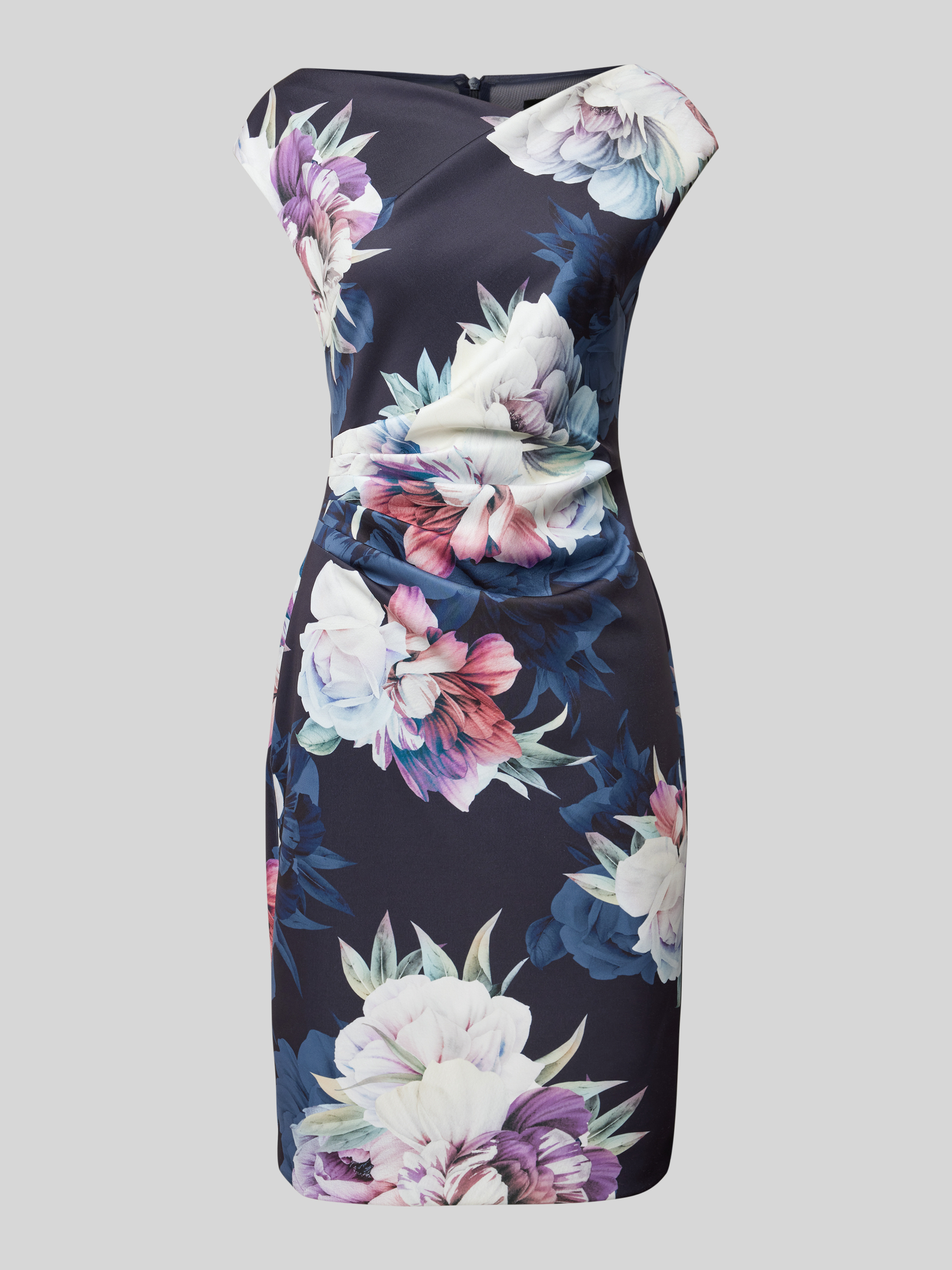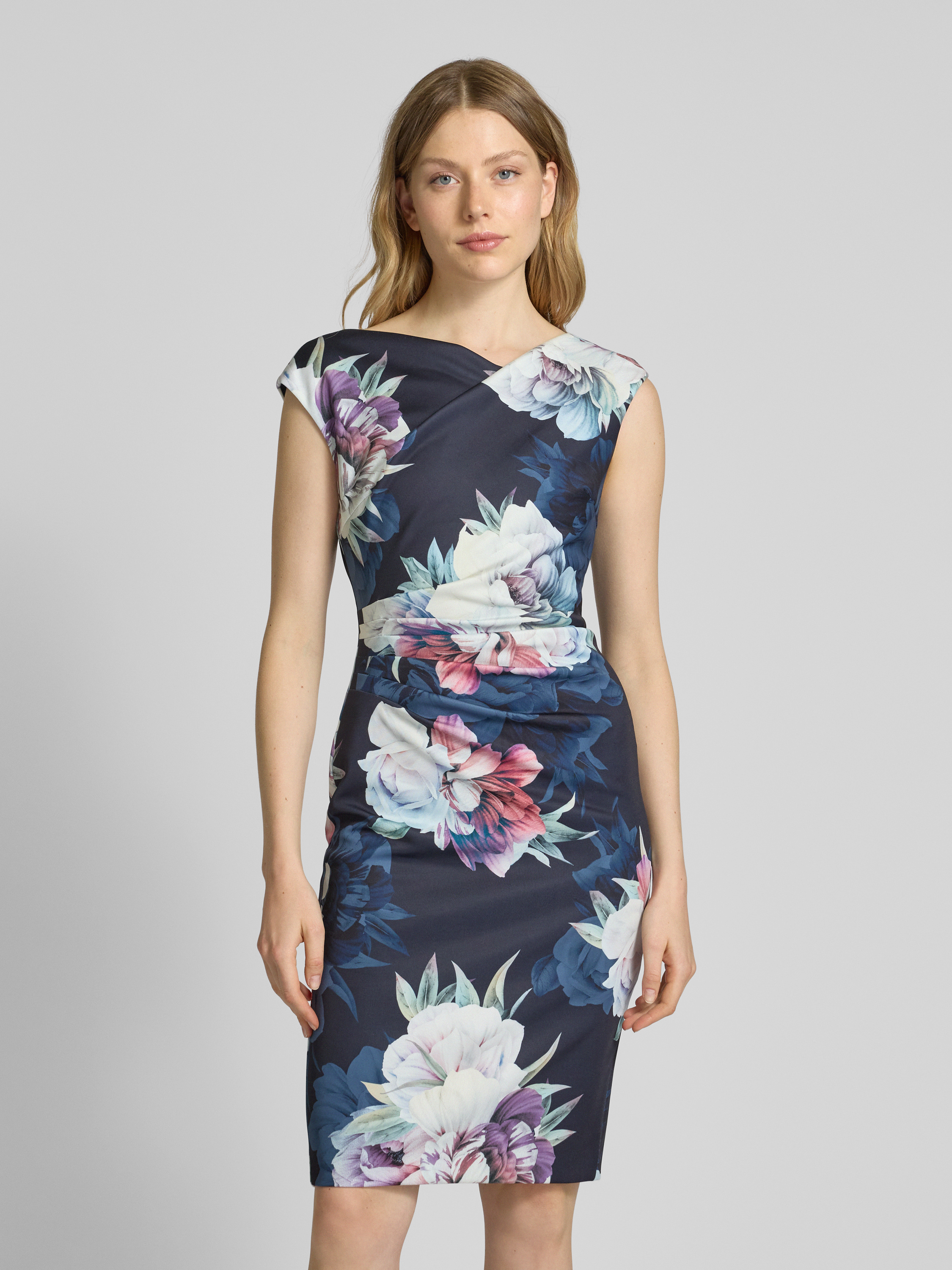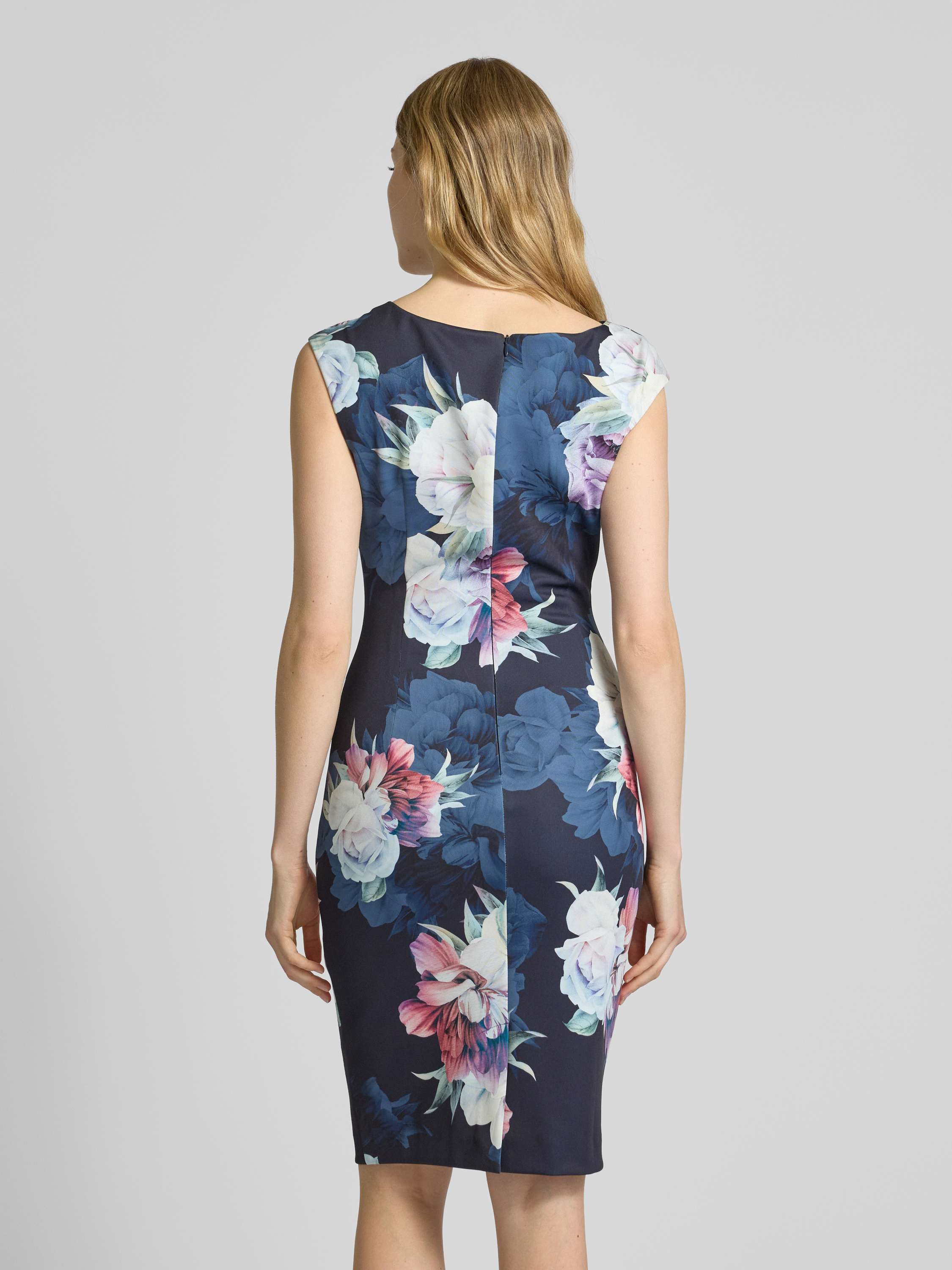 Das elegante SWING Cocktailkleid mit floralem Muster präsentiert sich in knielanger, taillierter Silhouette und sorgt durch den soften Material-Mix mit Stretch-Anteil für angenehmen Tragekomfort. Raffungen setzen dezente Akzente, während das Muster dem Look Leichtigkeit verleiht. So entsteht ein vielseitiger Stil.