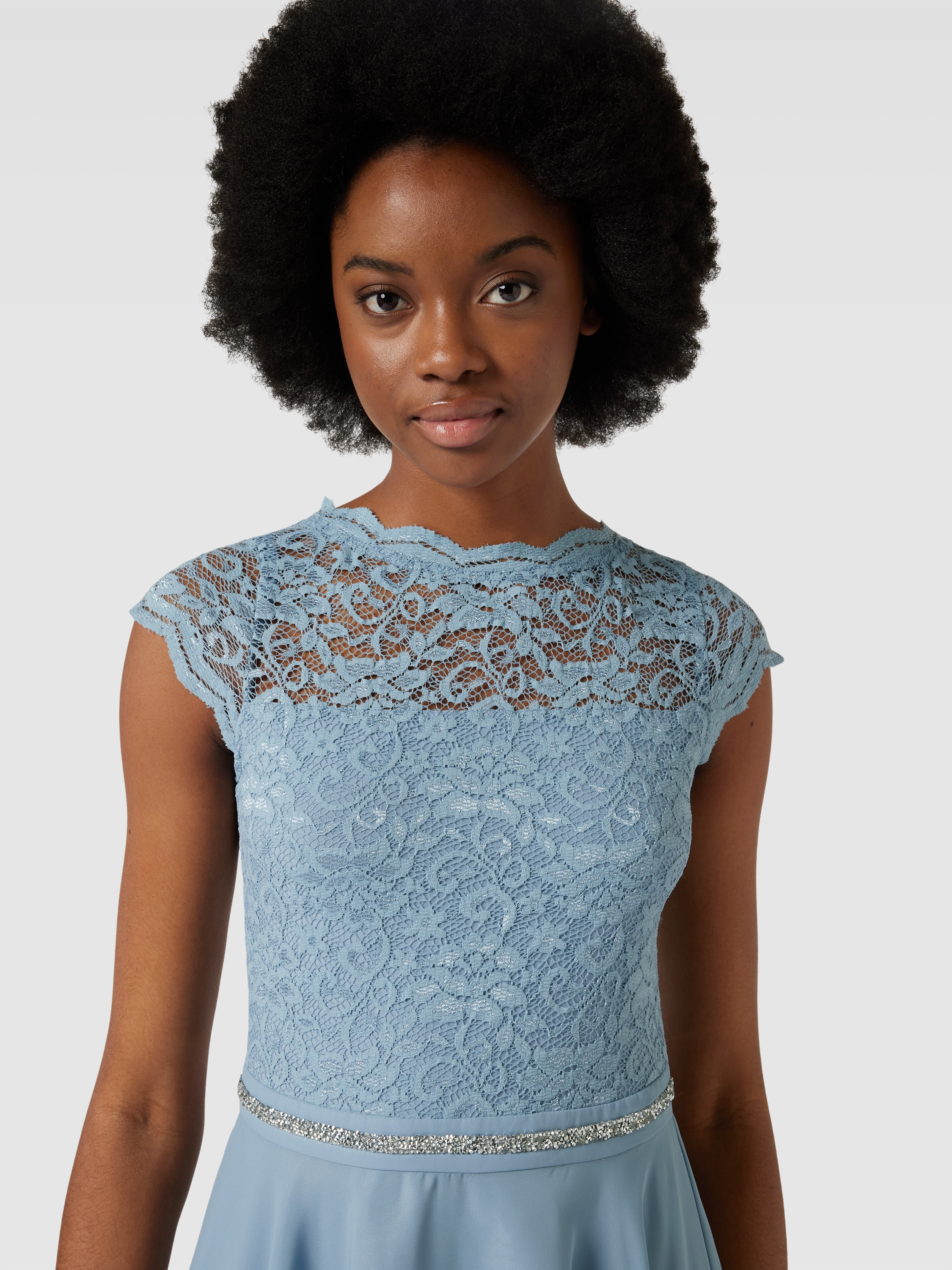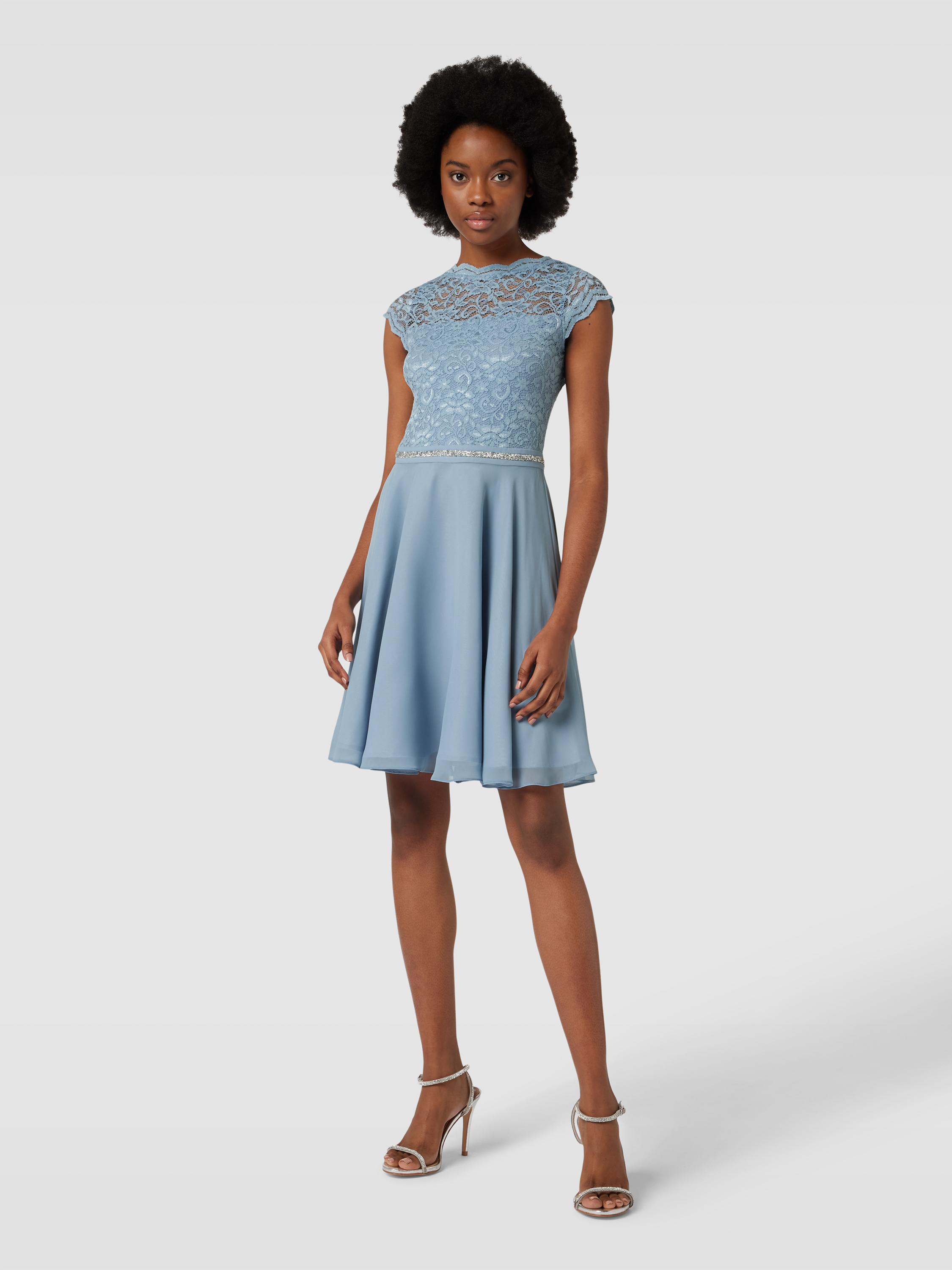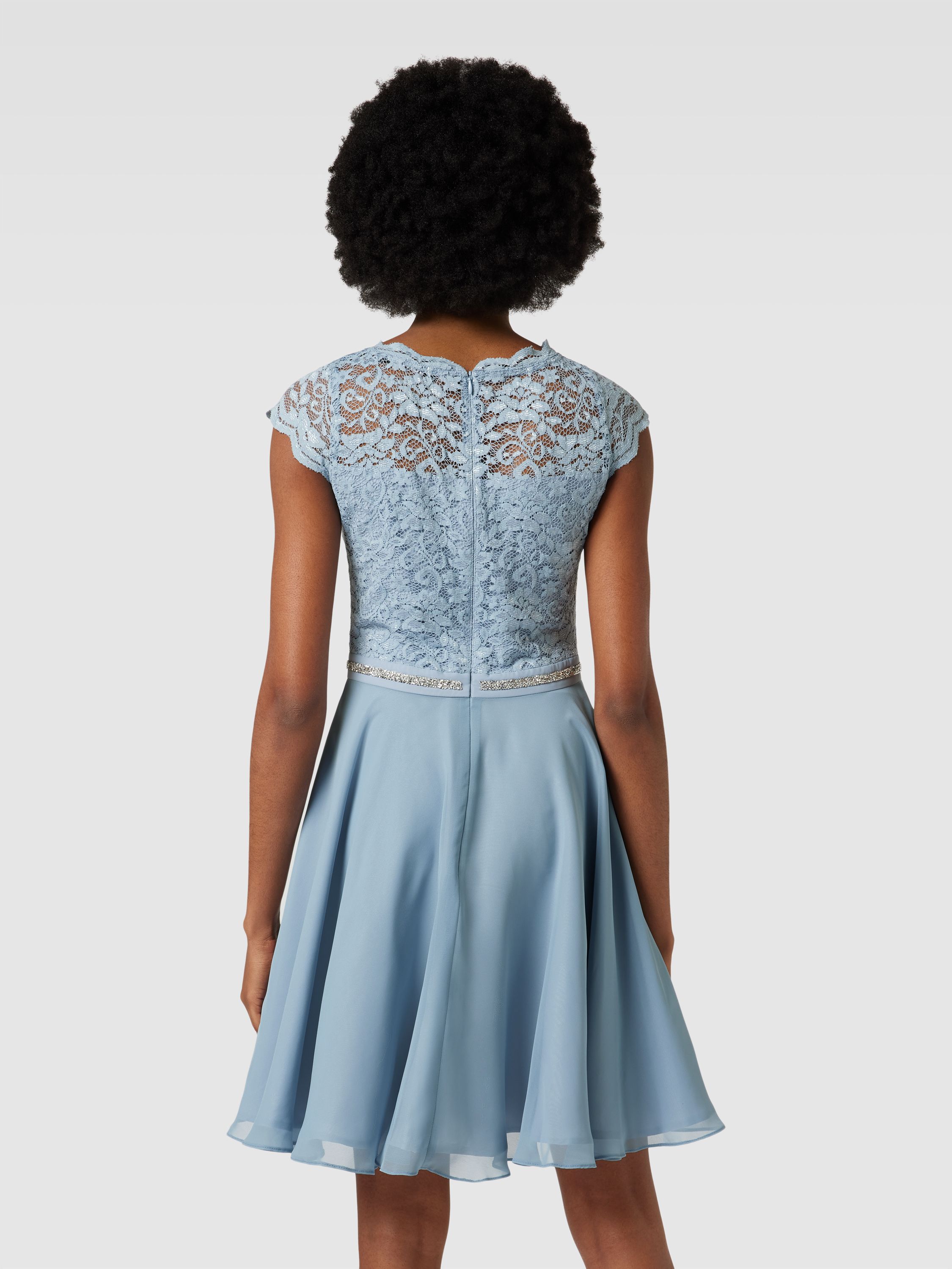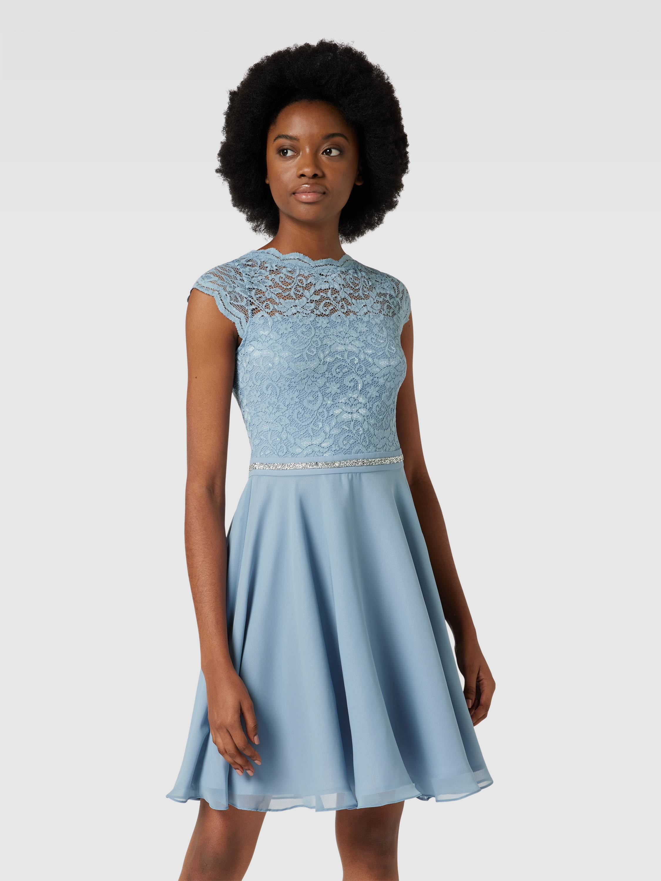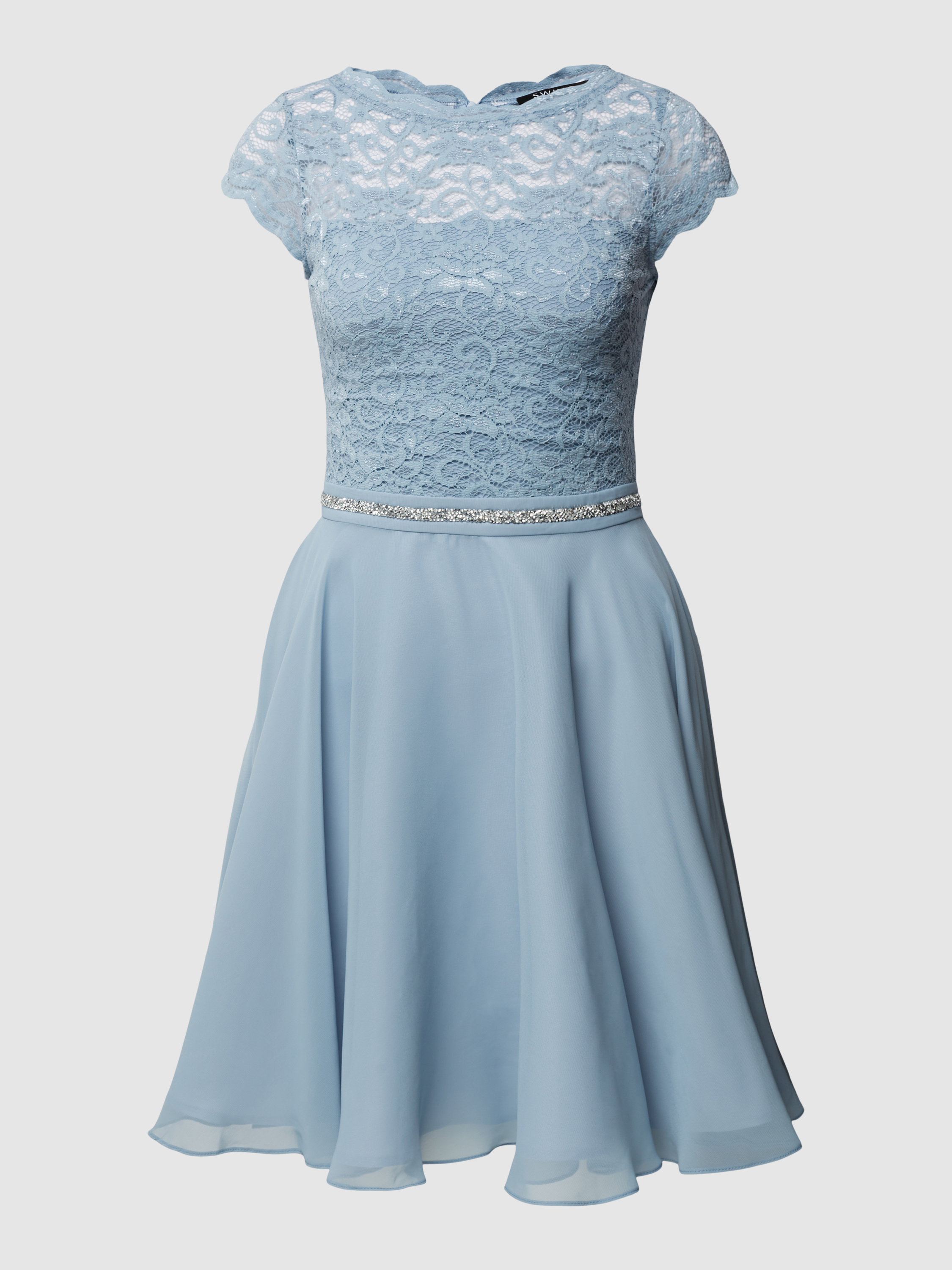 SwingCocktailkleid mit Spitzenbesatz in hellblau