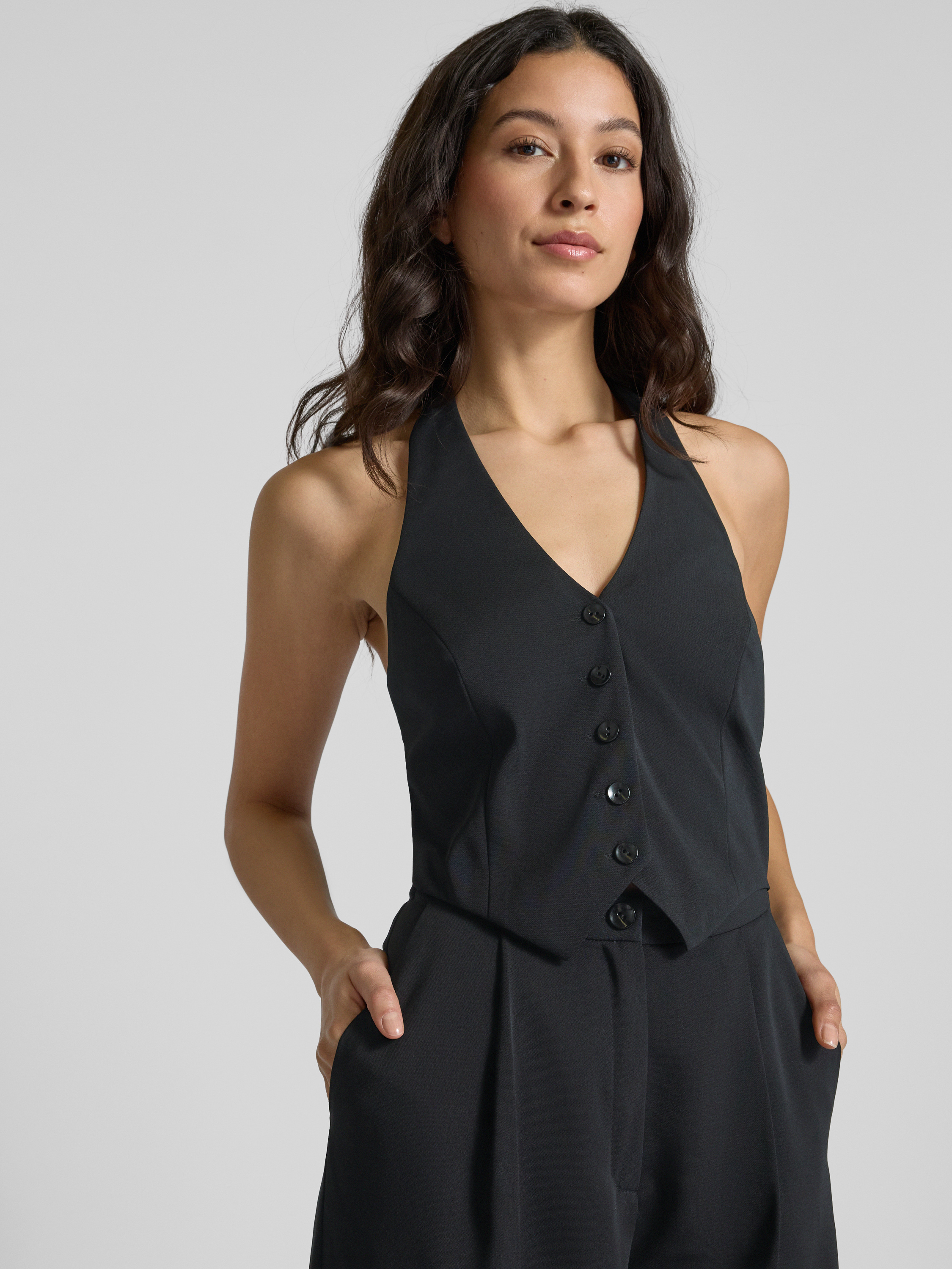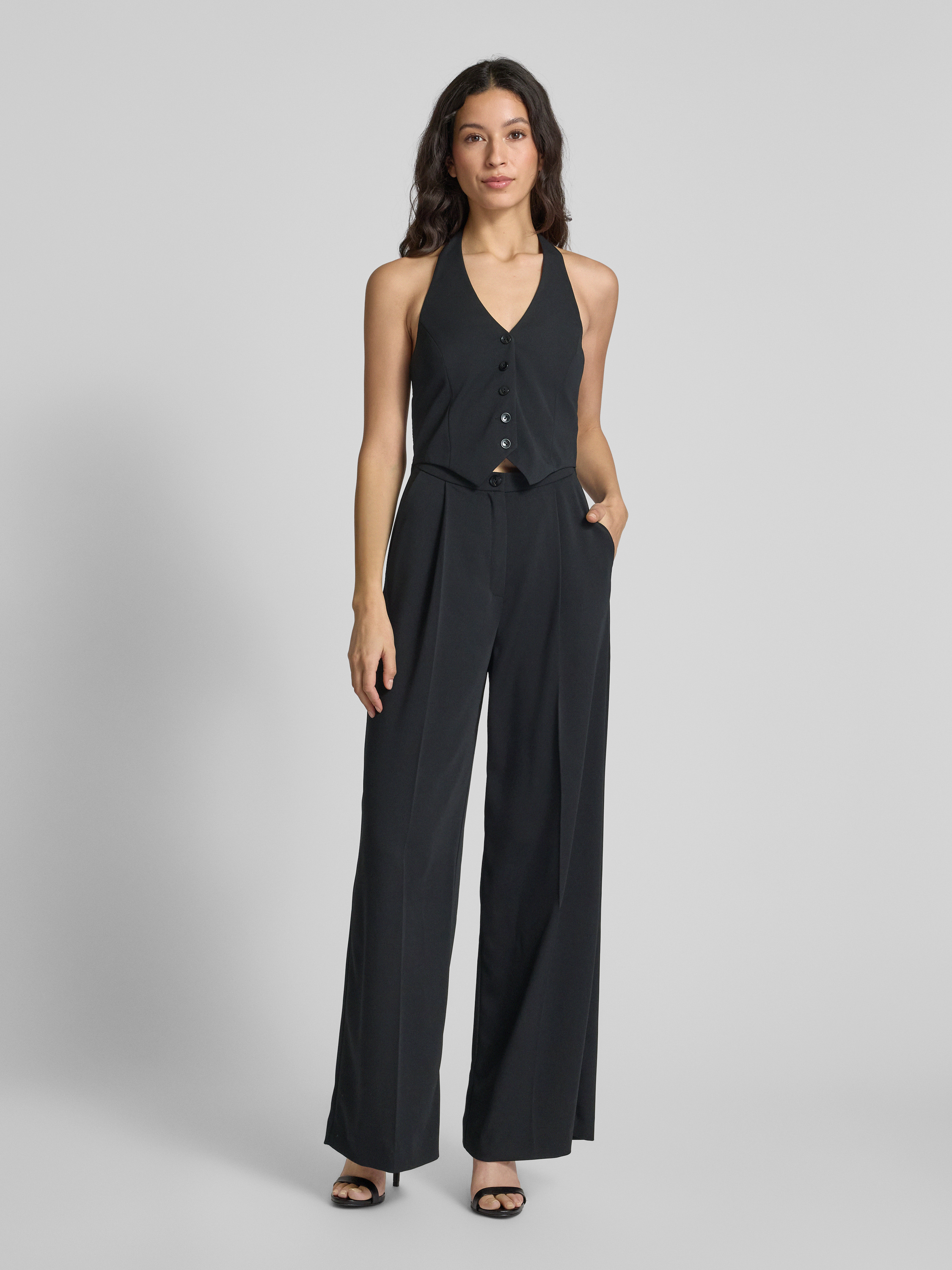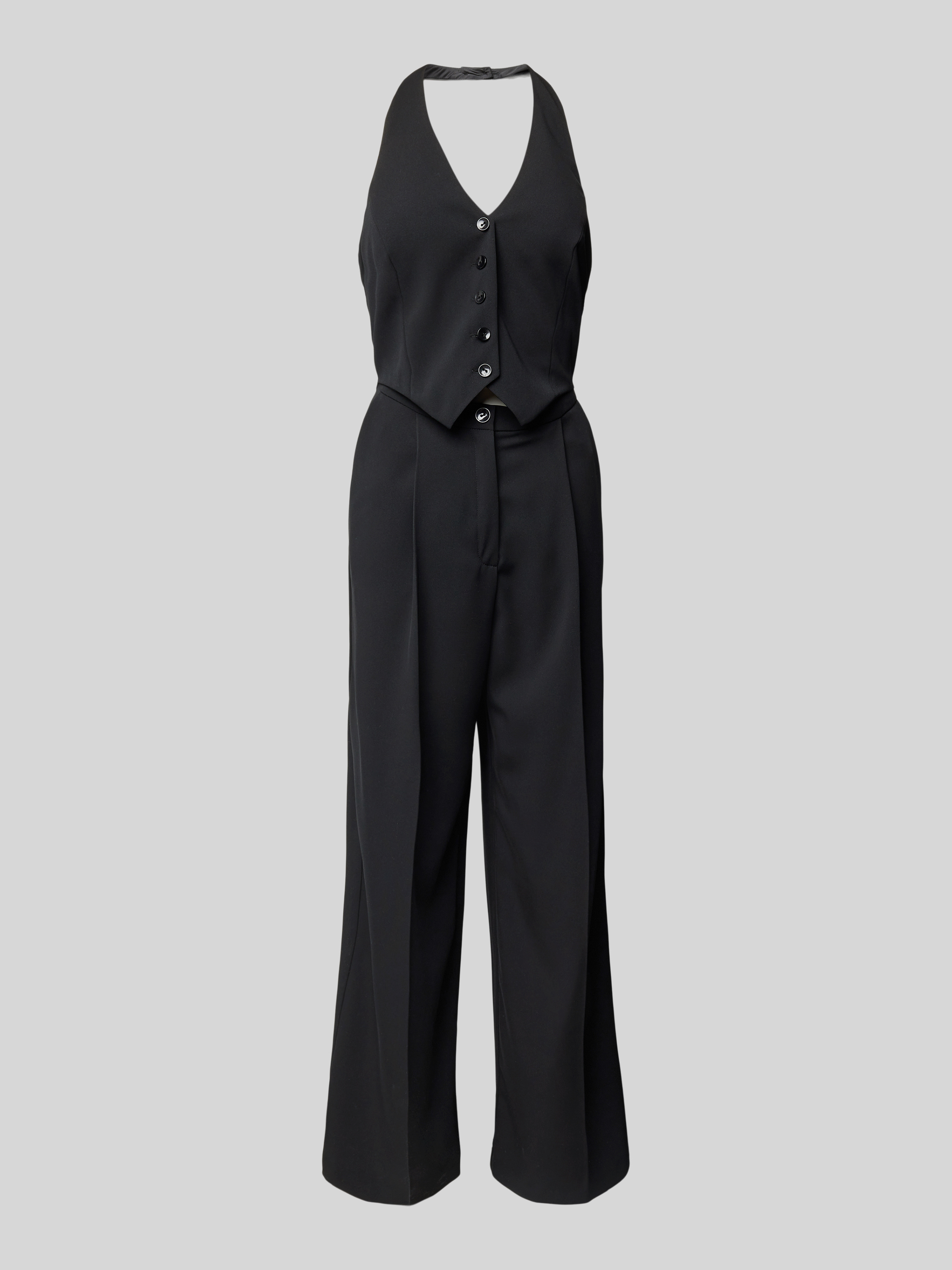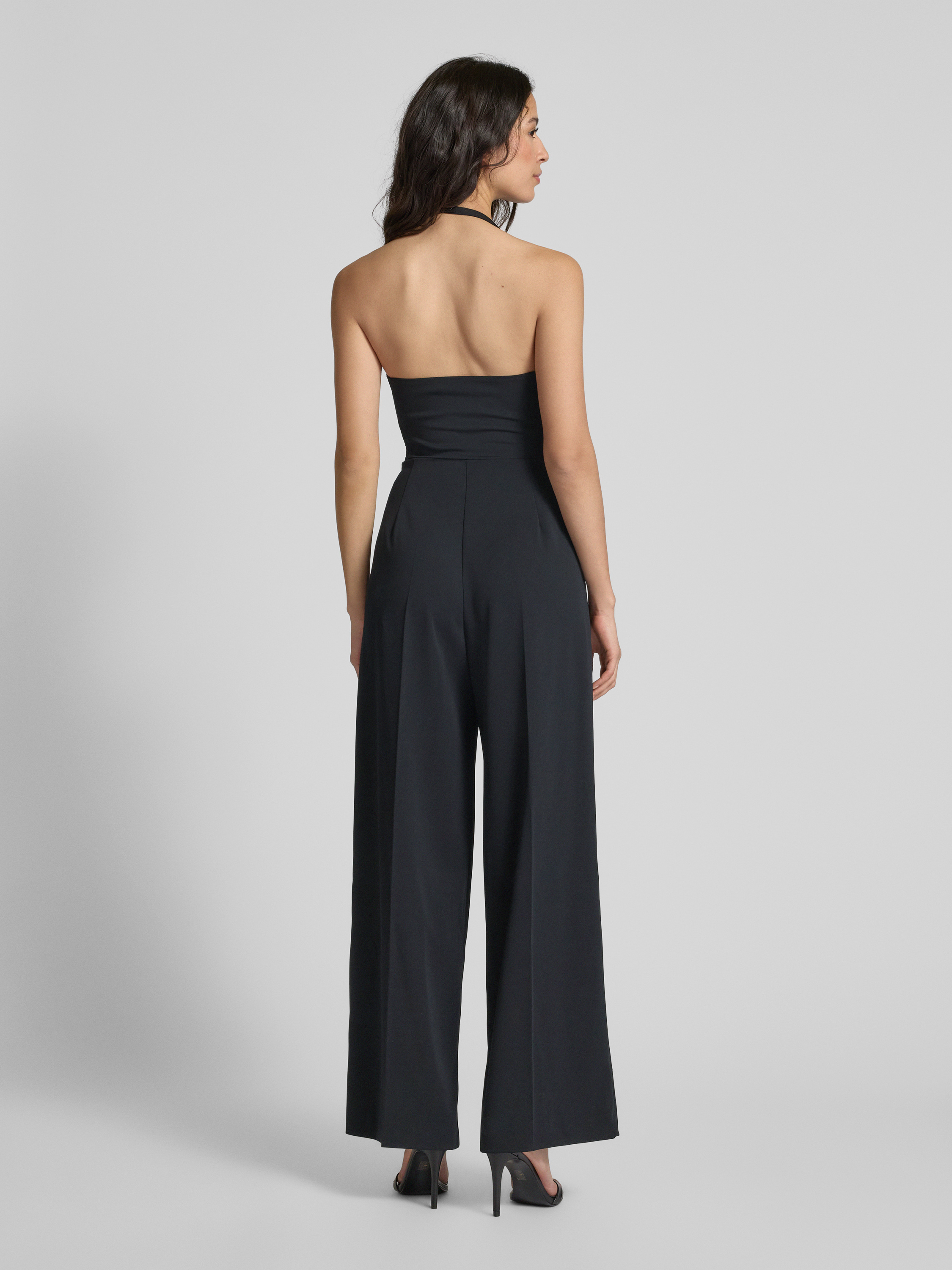 Der Jumpsuit mit Neckholder von SWING kombiniert einen taillierten Schnitt mit einem eleganten V-Ausschnitt, was eine feminine Silhouette betont. Der Material-Mix mit Stretch-Anteil sorgt für angenehme Bewegungsfreiheit, während Bund- und Bügelfalten einen Hauch von Raffinesse verleihen. Praktische Eingrifftaschen runden das Design funktional ab.